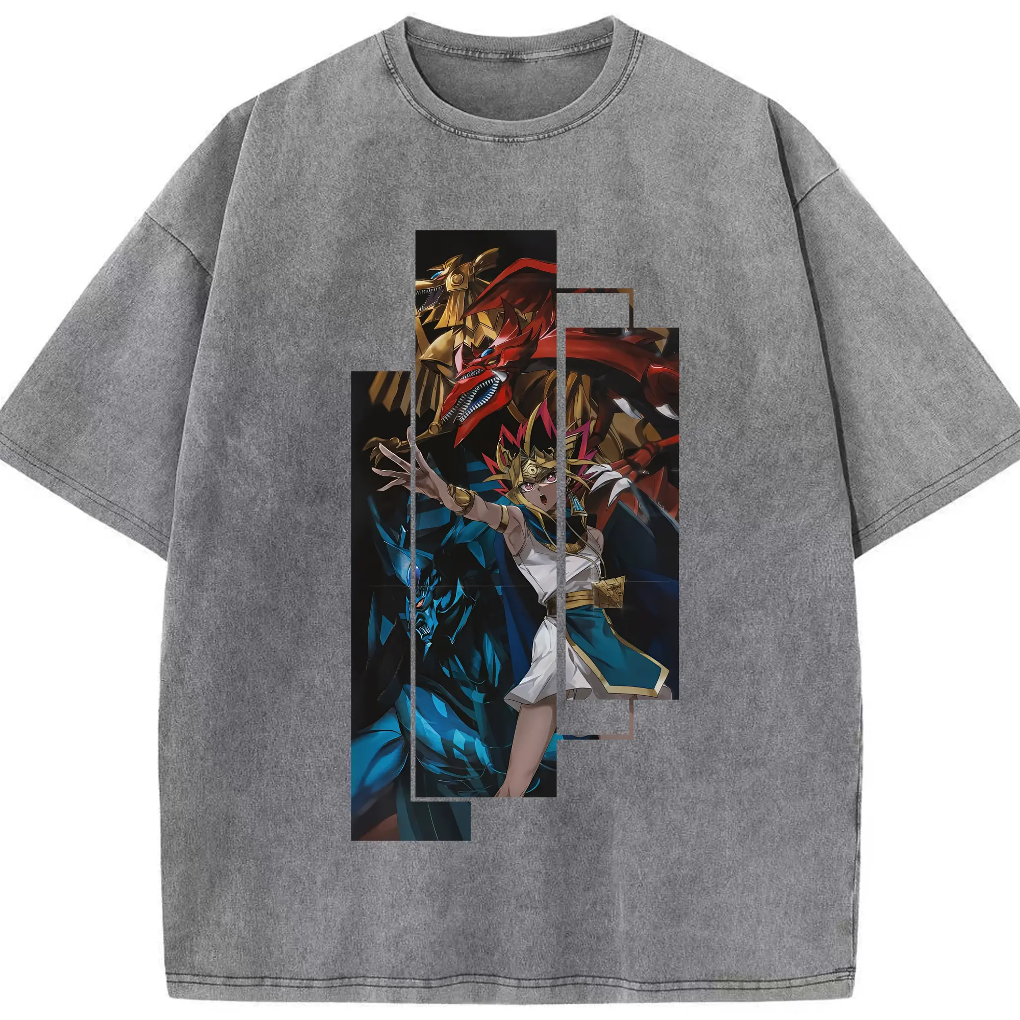 遊☆戯☆王 グッズ,さんげんしん - 綿100% ヴィンテージ風 半袖Tシャツ ・ 背面プリント ・ 柔らか肌触り ・ 通気性 快適 ・ スポーツ カジュアル 外出用