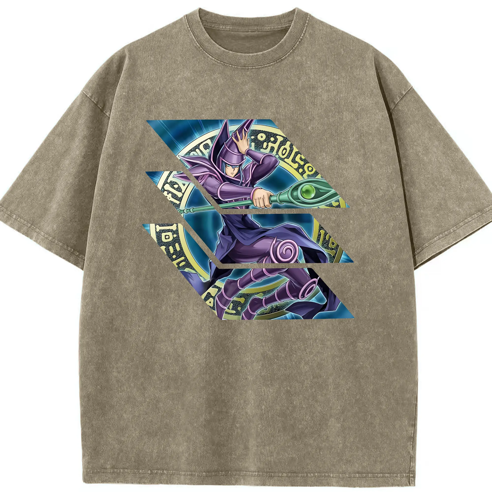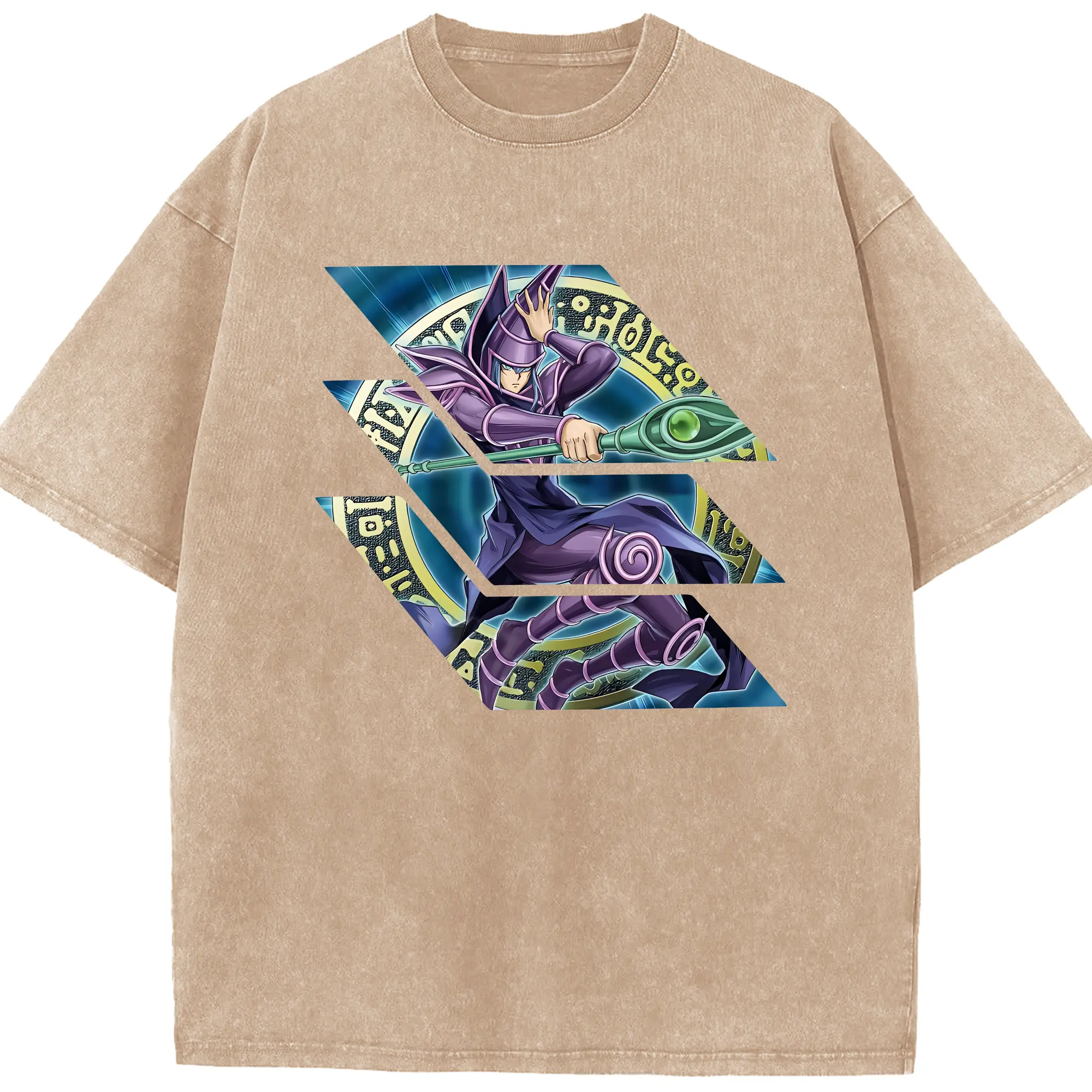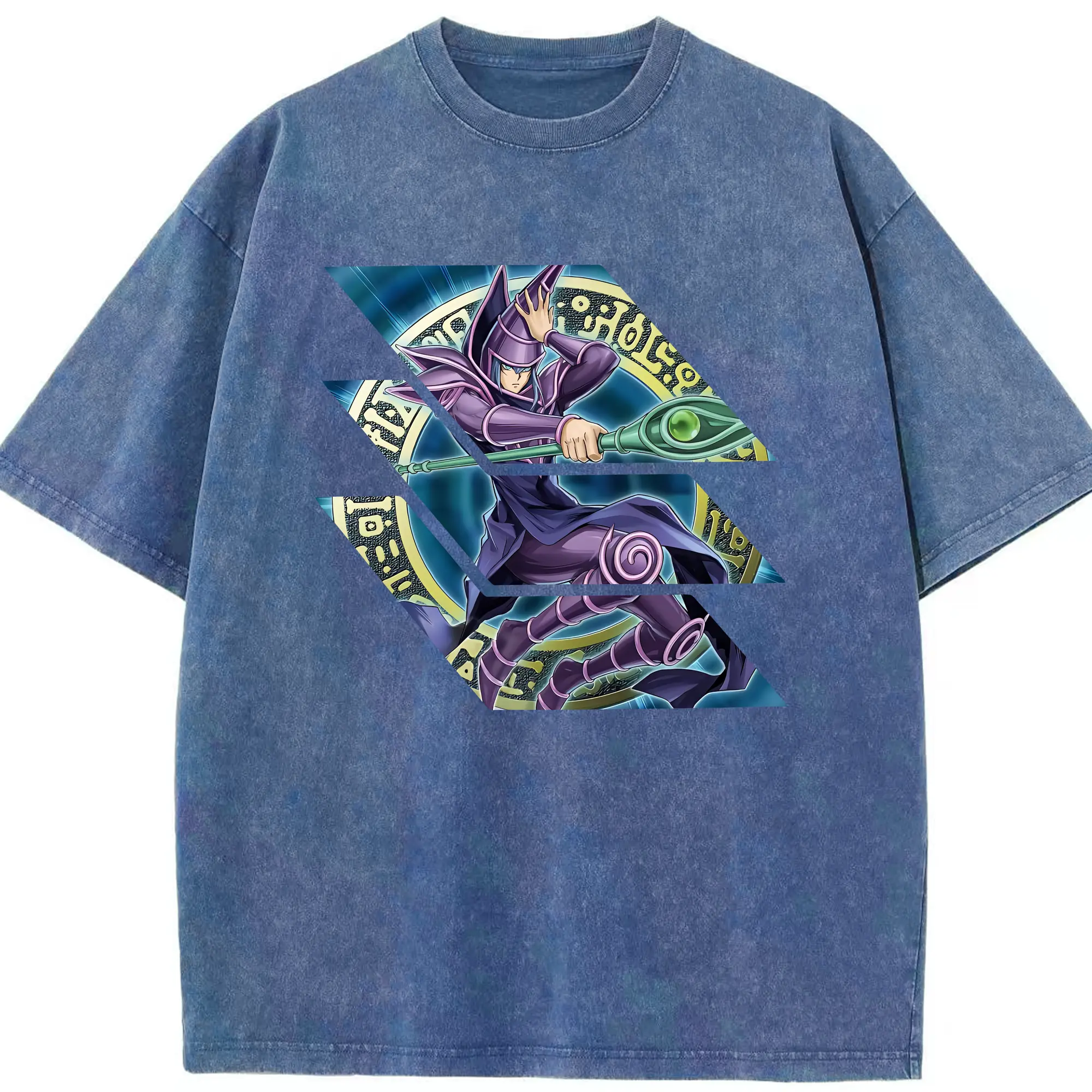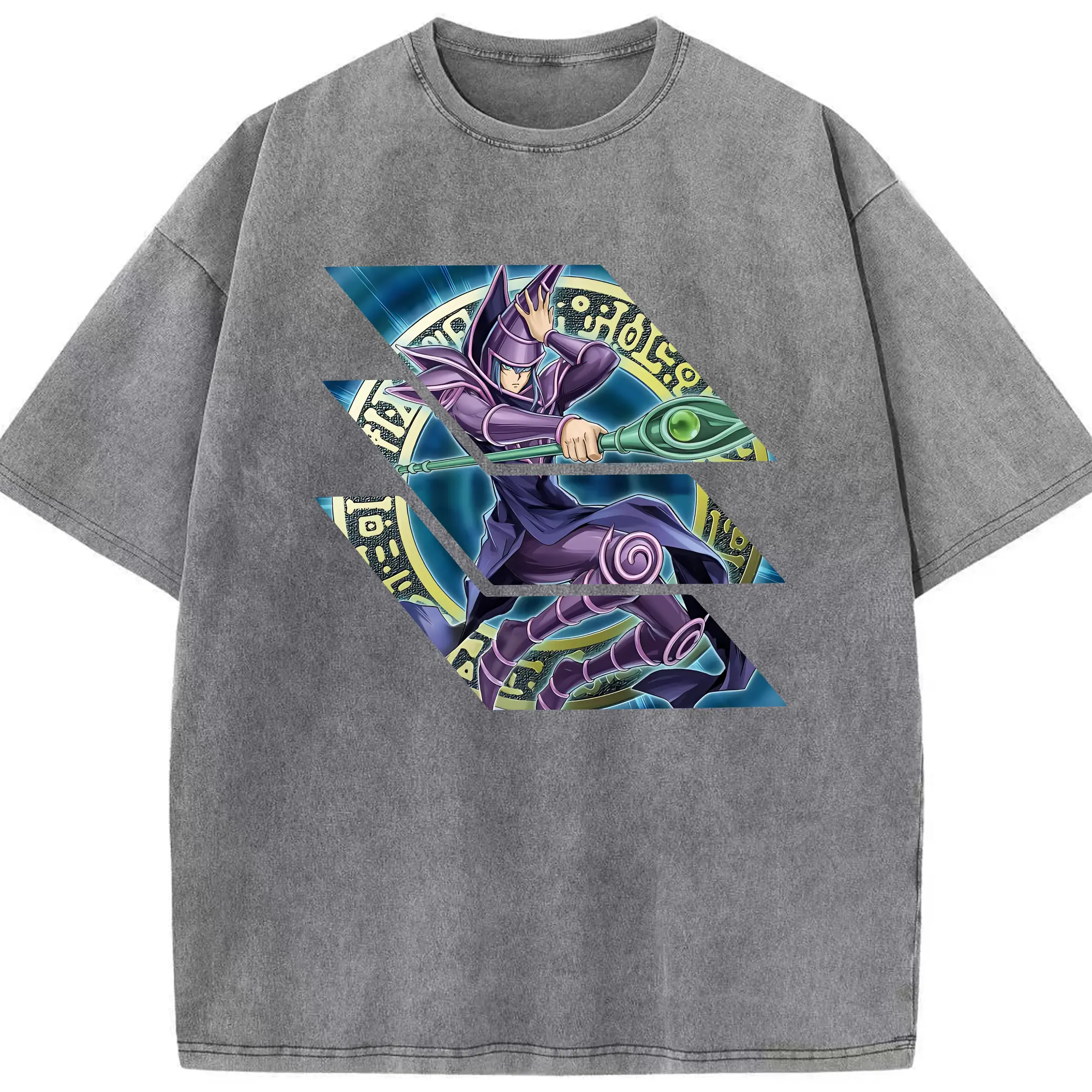 遊☆戯☆王 グッズ,ブラック・マジシャン - 綿100% ヴィンテージ風 半袖Tシャツ ・ 背面プリント ・ 柔らか肌触り ・ 通気性 快適 ・ スポーツ カジュアル 外出用