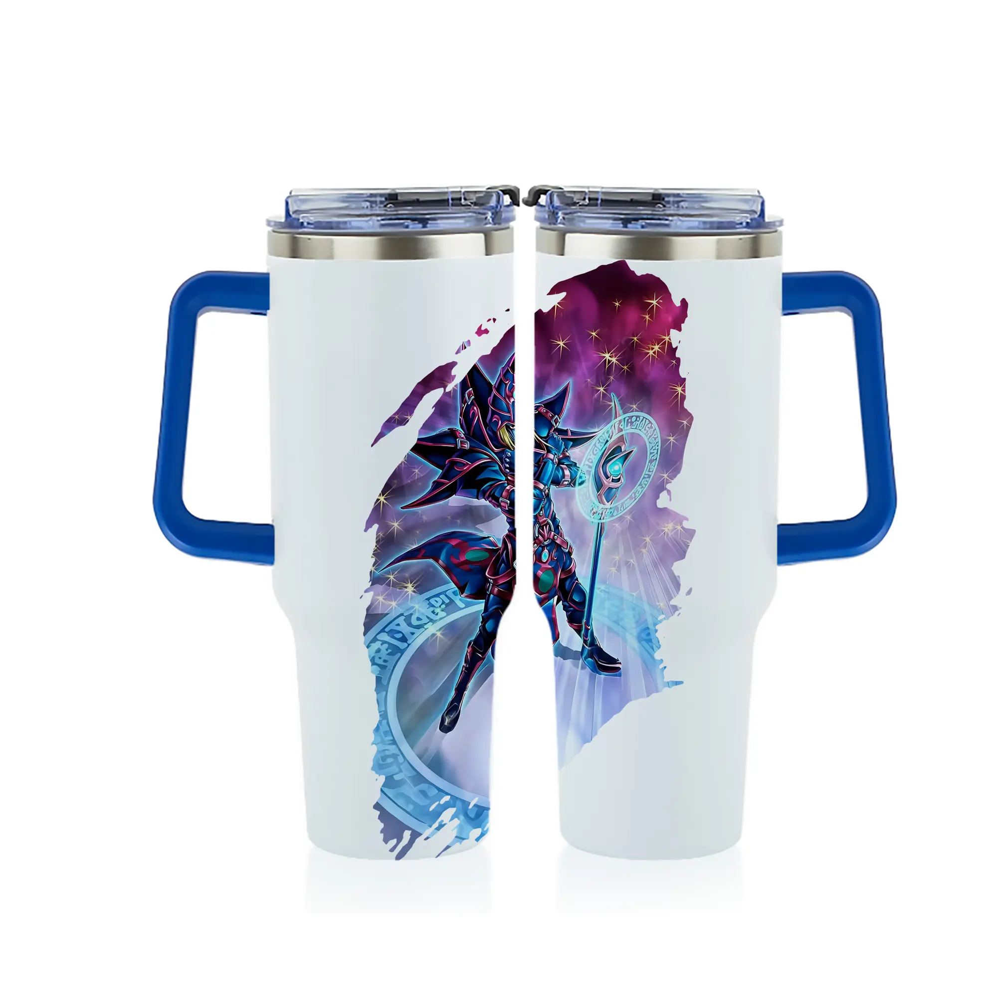遊☆戯☆王 グッズ,ブラック・マジシャン - 1200mL フルプリント車用タンブラー ・ 304ステンレス 内側 ・ 201ステンレス 外側 ・ 保温 保冷 ・ 通勤 ドライブ アウトドア用