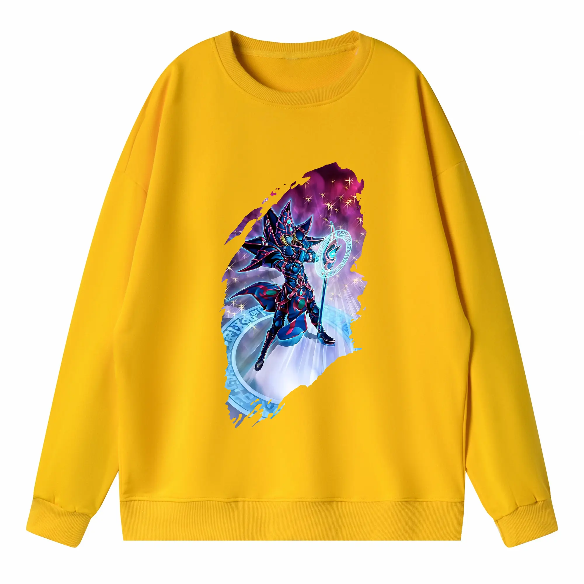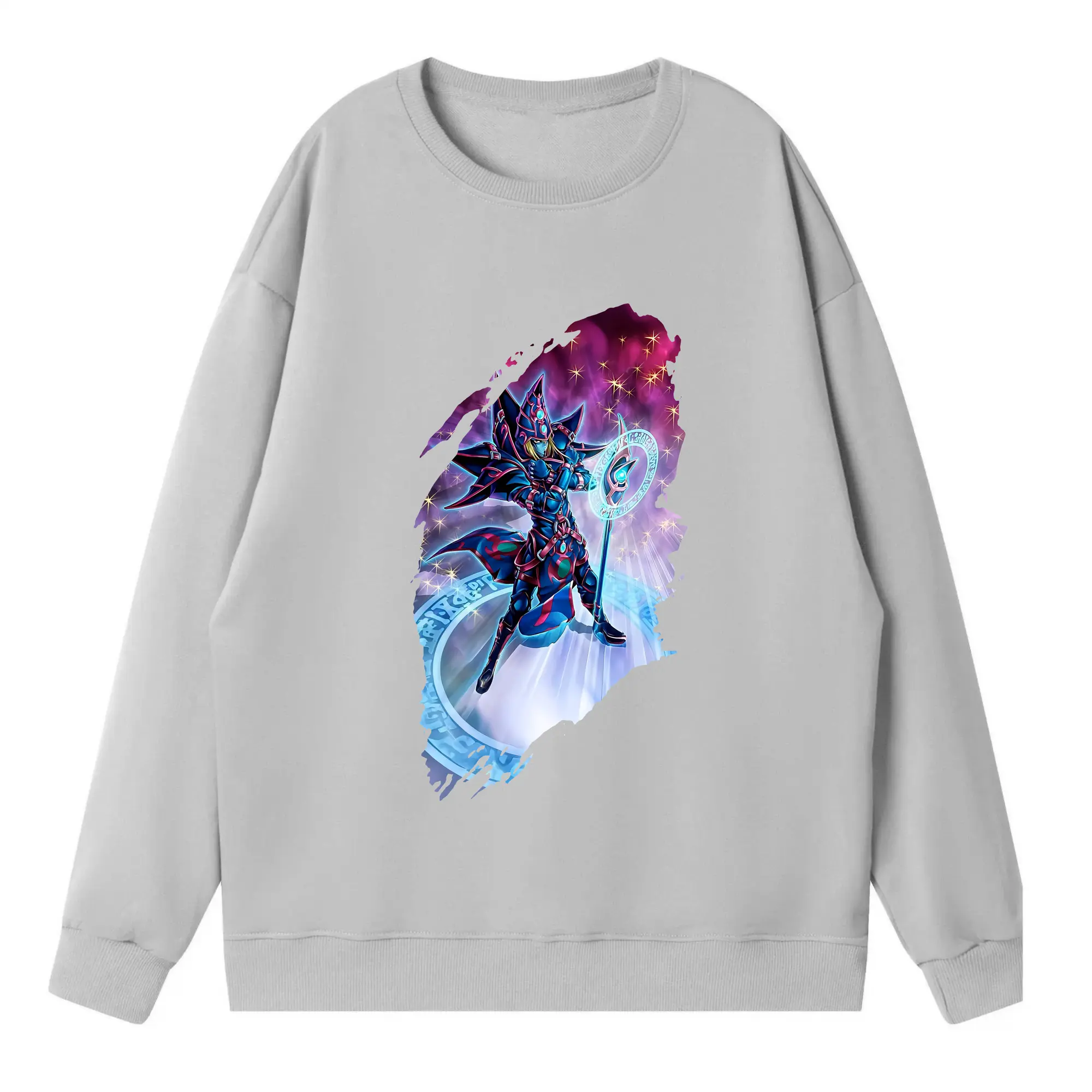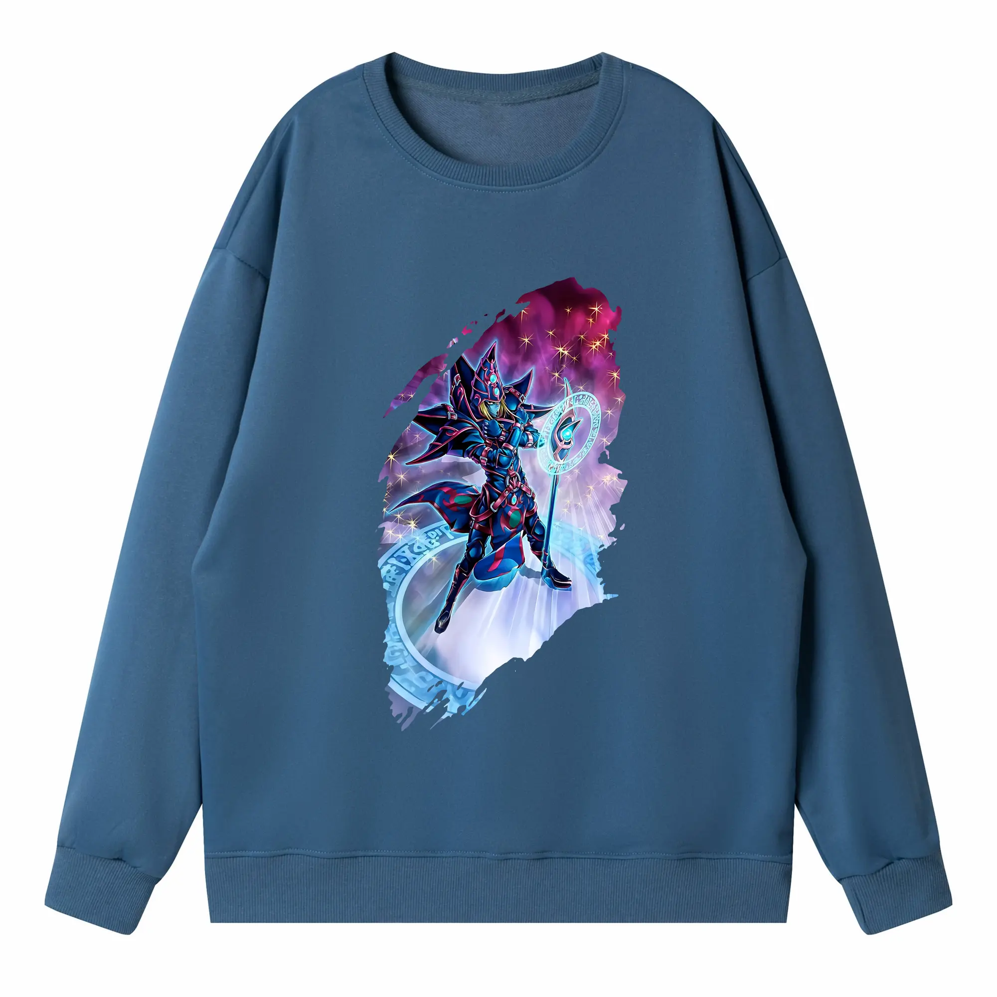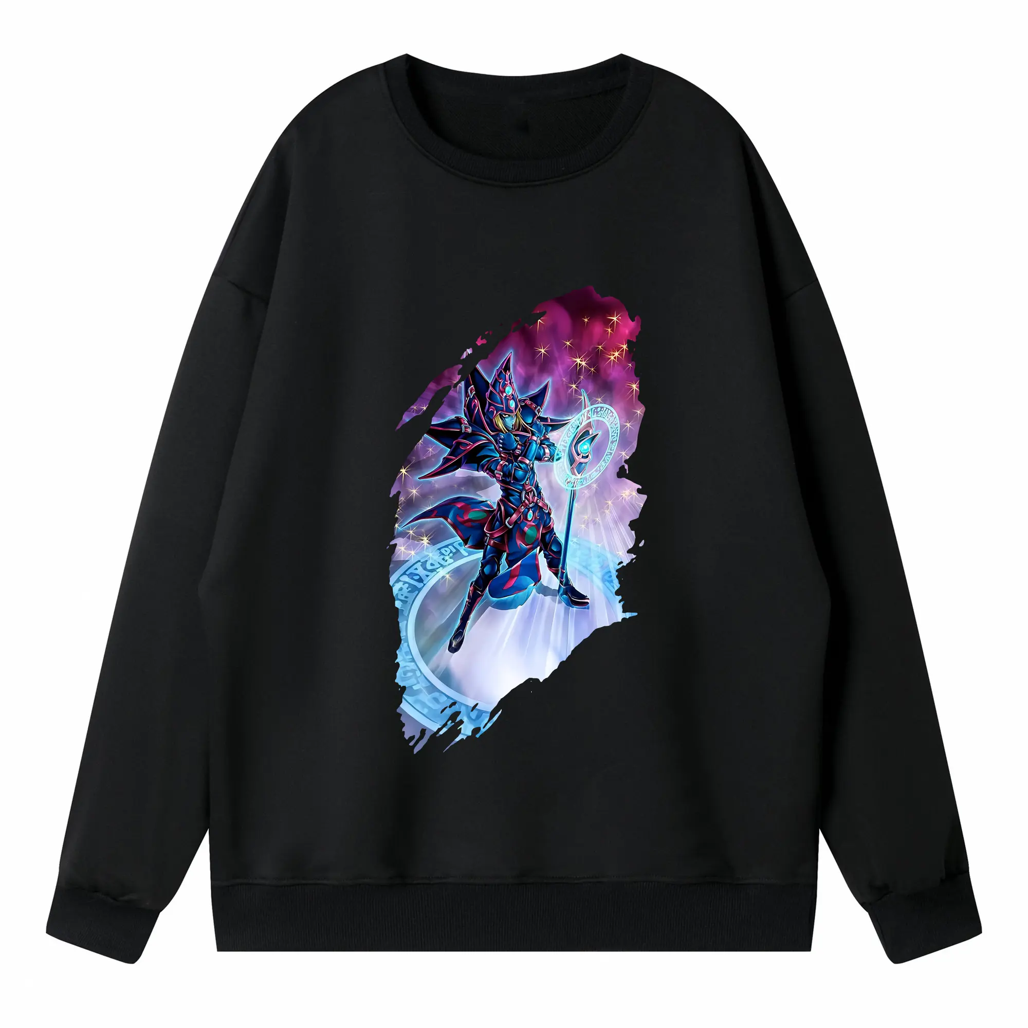 遊☆戯☆王 グッズ,ブラック・マジシャン - 高品質 クルーネック スウェット ・ コットン59% ポリエステル41% ・ ユニセックス 長袖 トレーナー ・ カジュアル デイリー スポーツ 散歩用