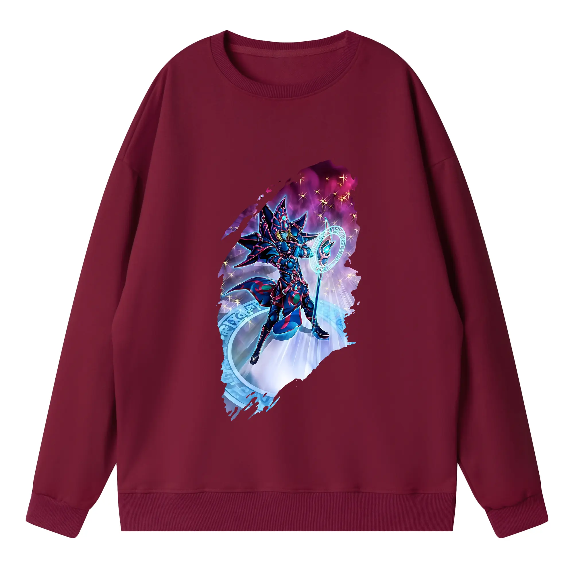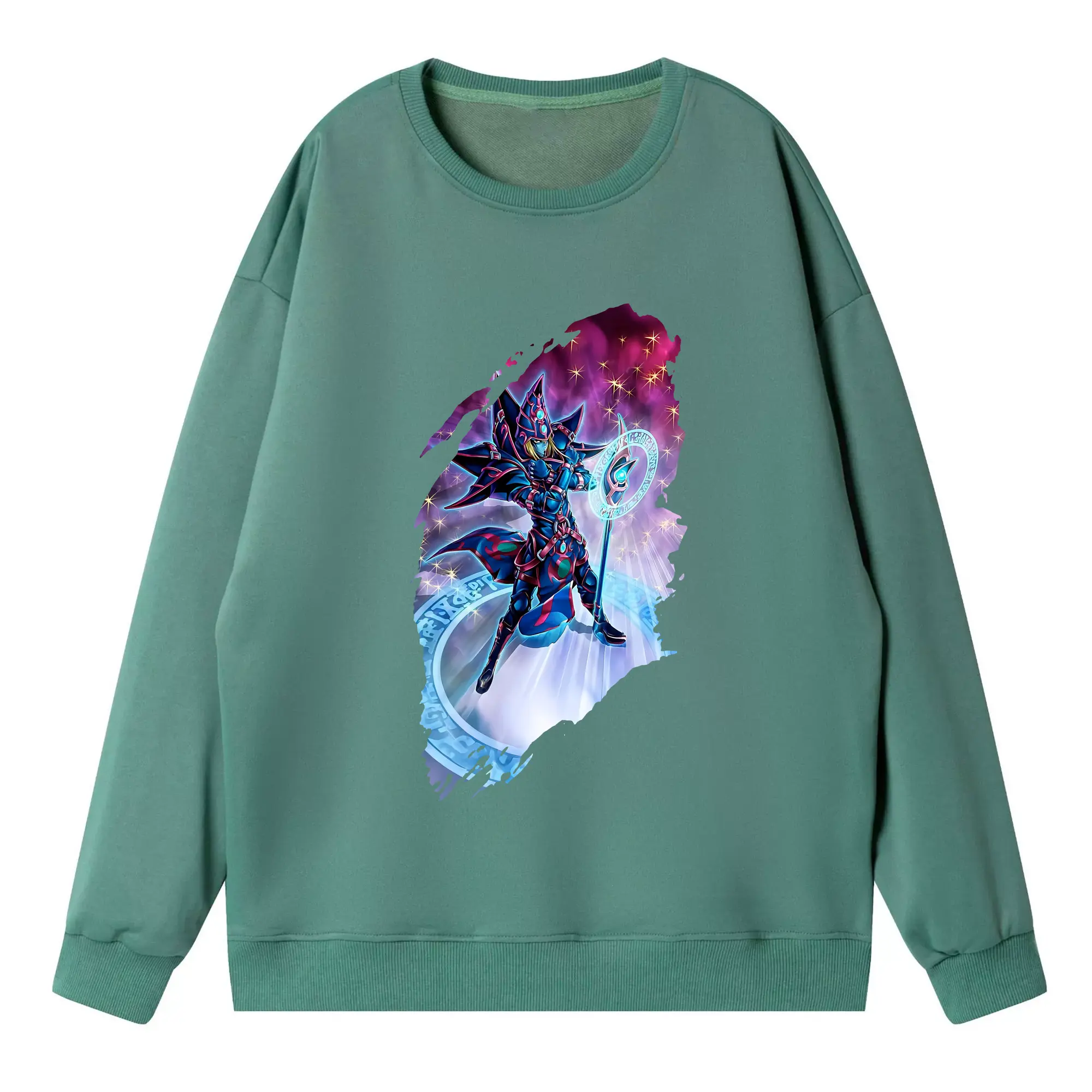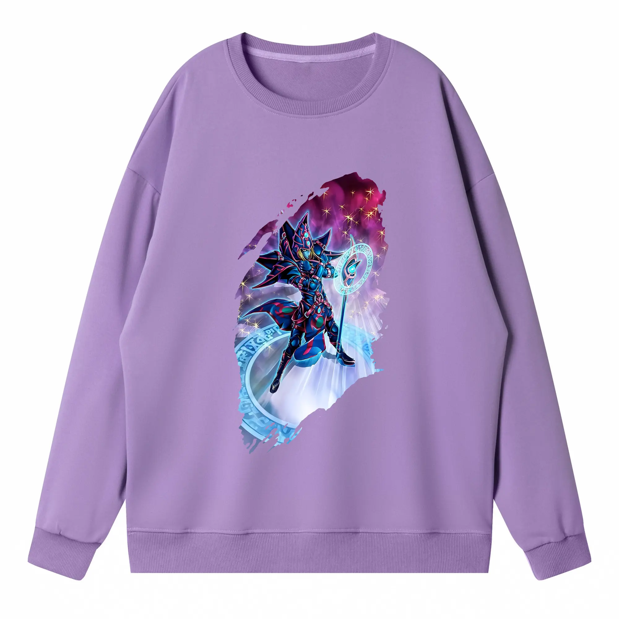 遊☆戯☆王 グッズ,ブラック・マジシャン - 高品質 クルーネック スウェット ・ コットン59% ポリエステル41% ・ ユニセックス 長袖 トレーナー ・ カジュアル デイリー スポーツ 散歩用