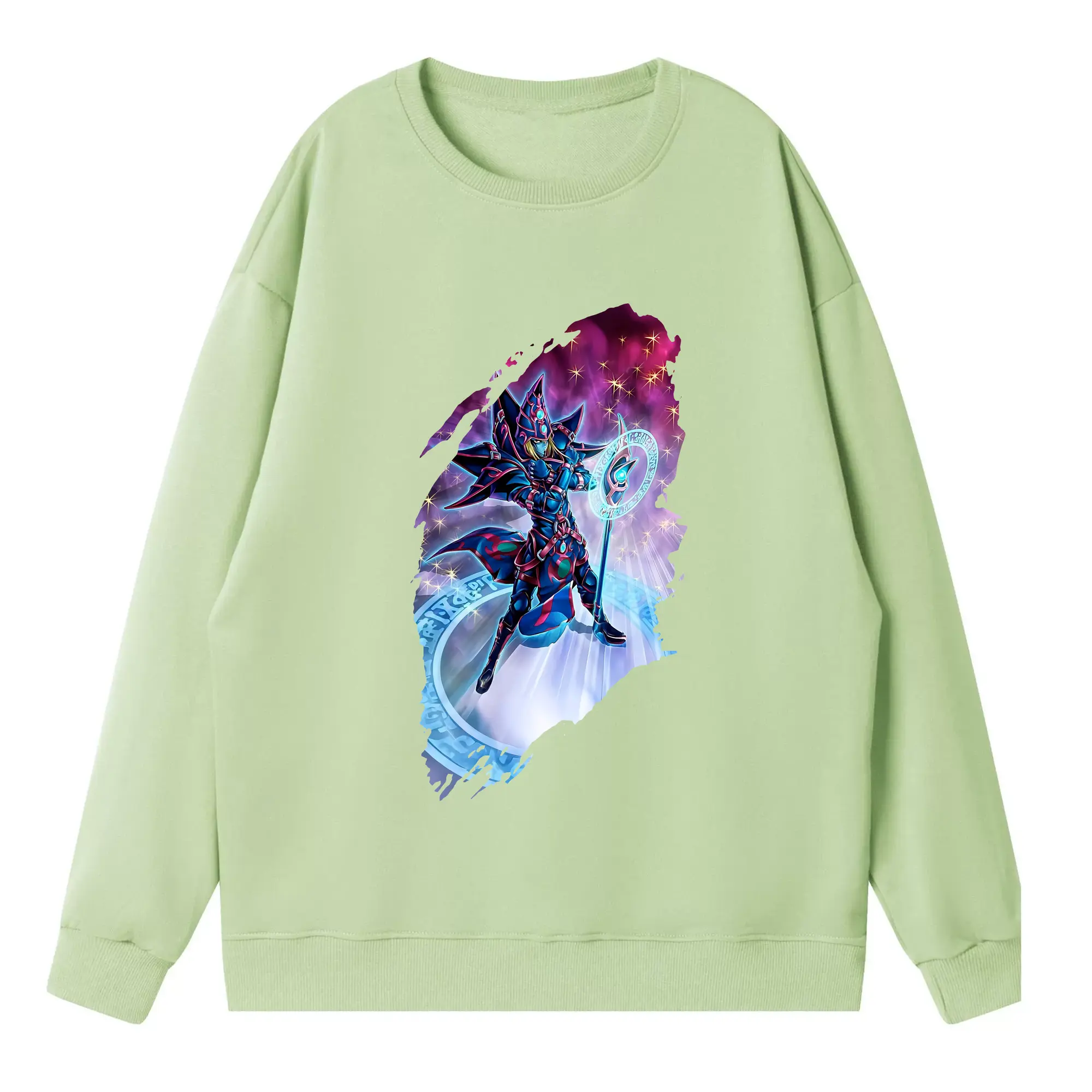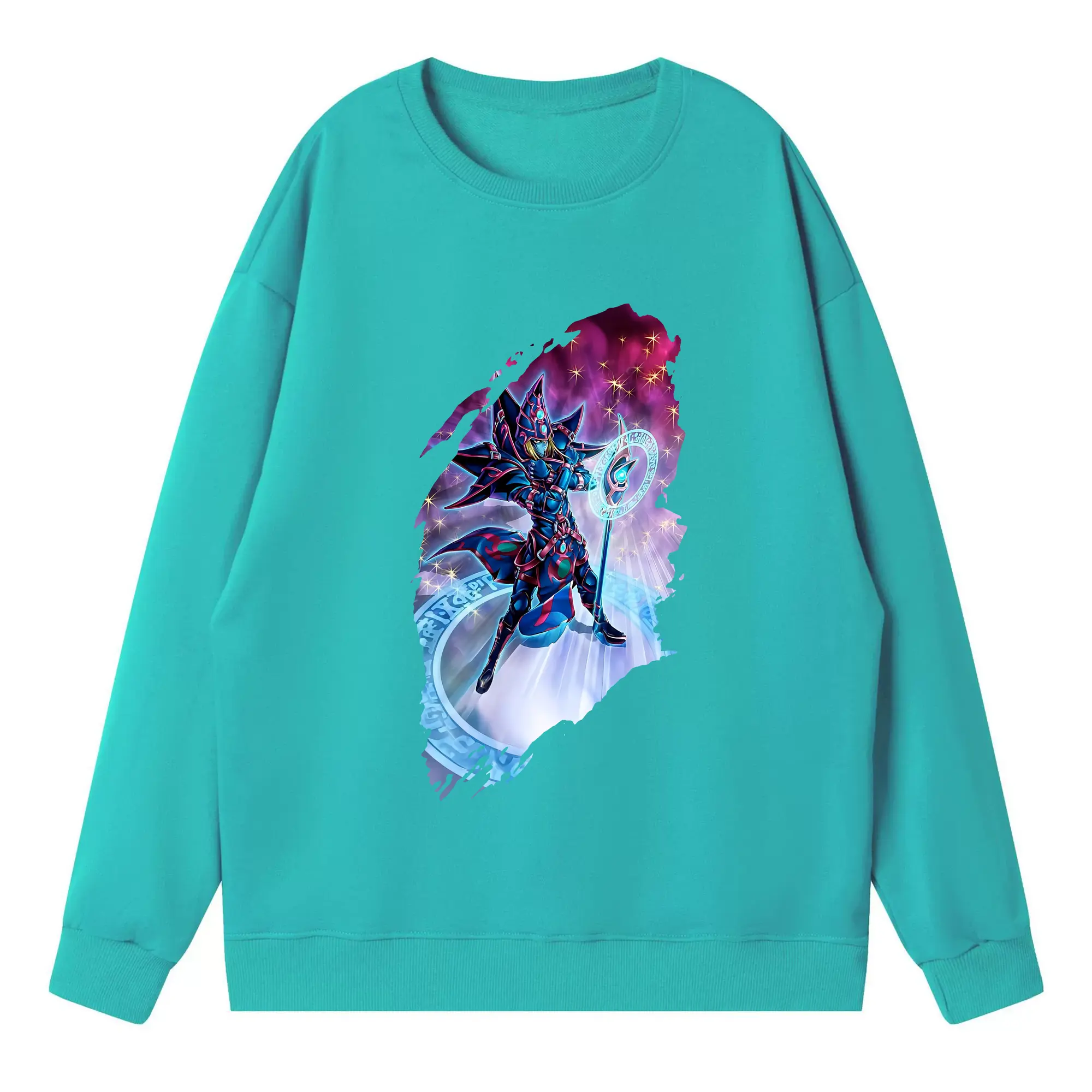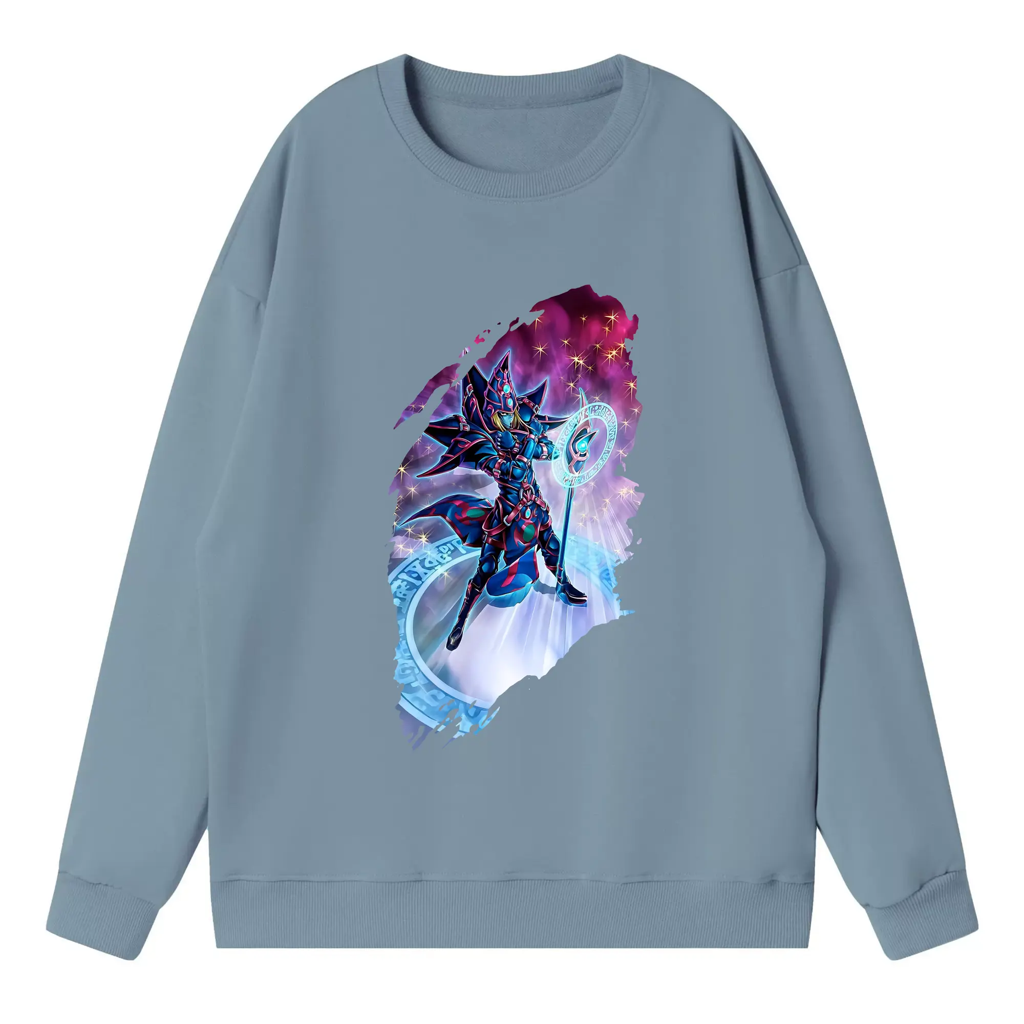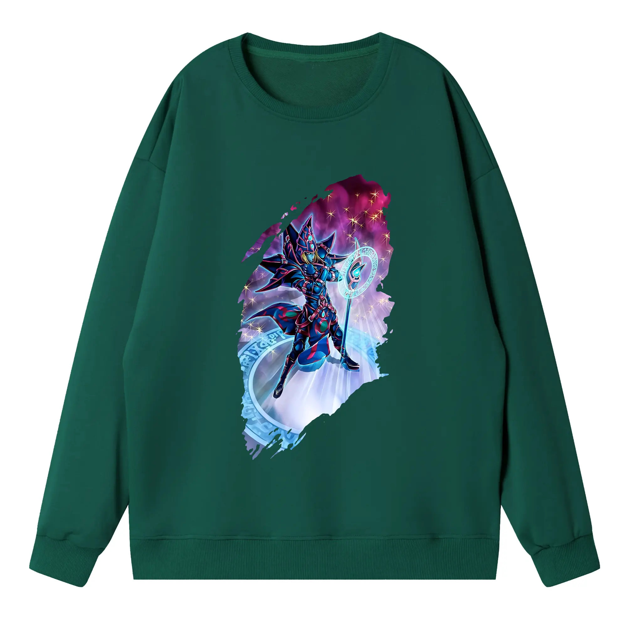 遊☆戯☆王 グッズ,ブラック・マジシャン - 高品質 クルーネック スウェット ・ コットン59% ポリエステル41% ・ ユニセックス 長袖 トレーナー ・ カジュアル デイリー スポーツ 散歩用
