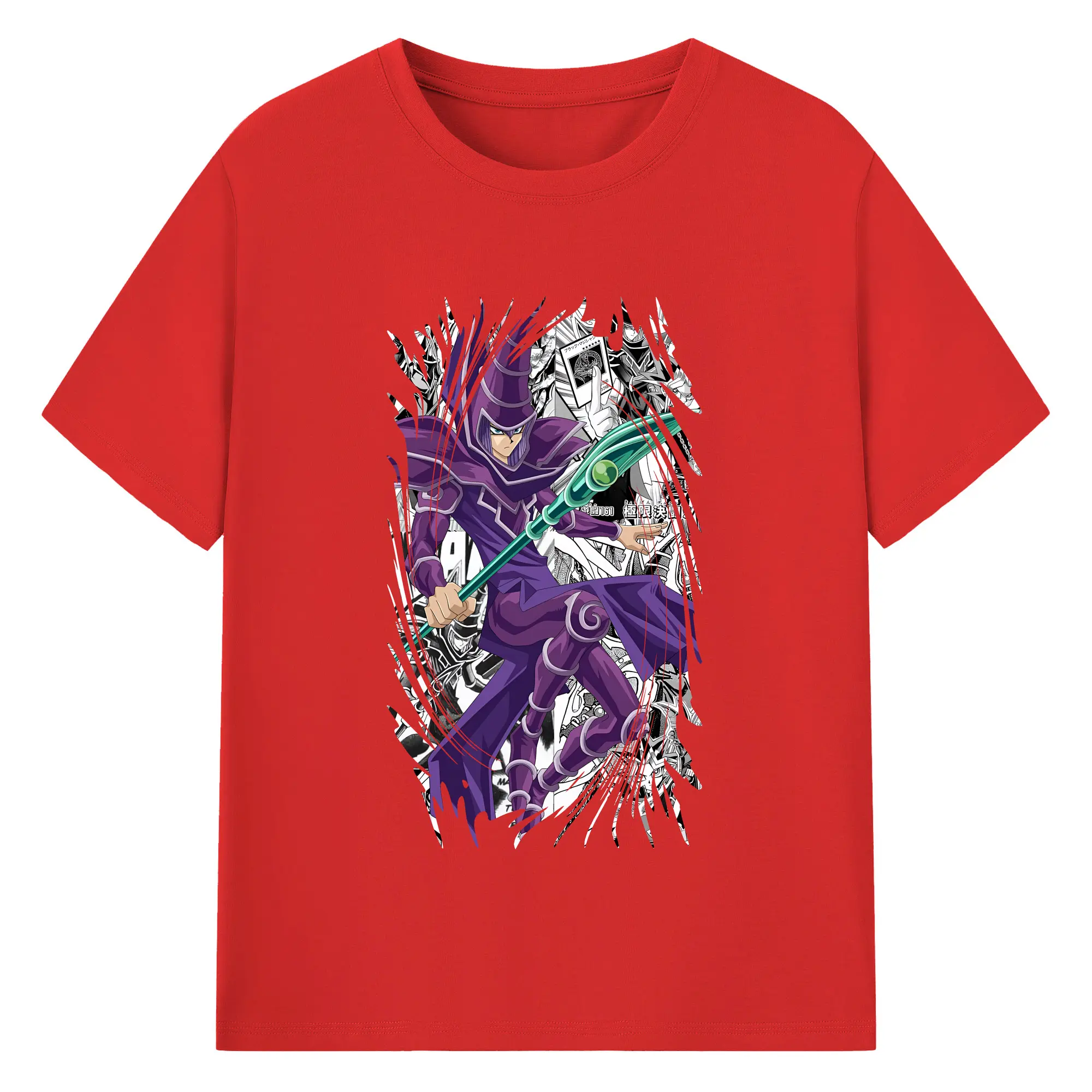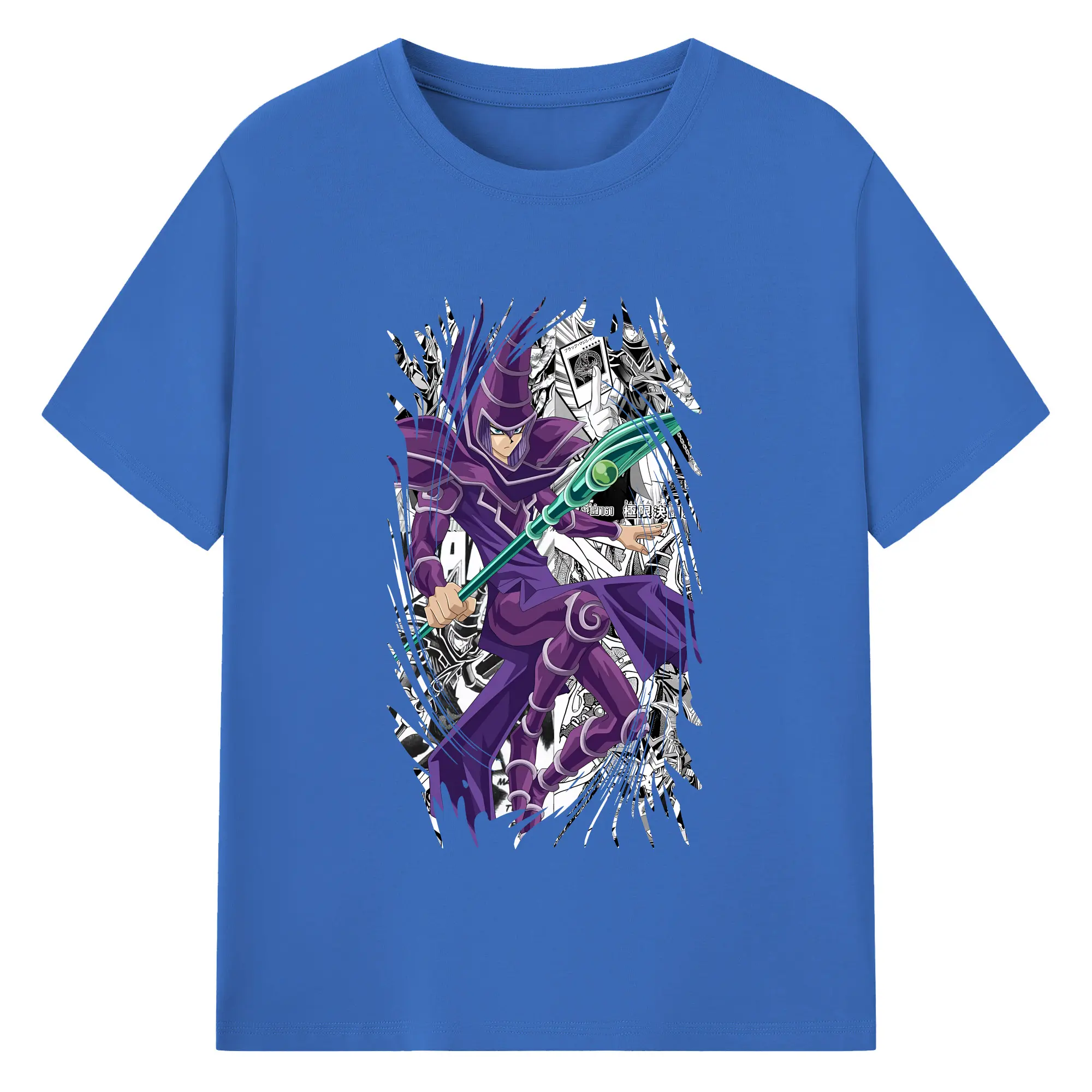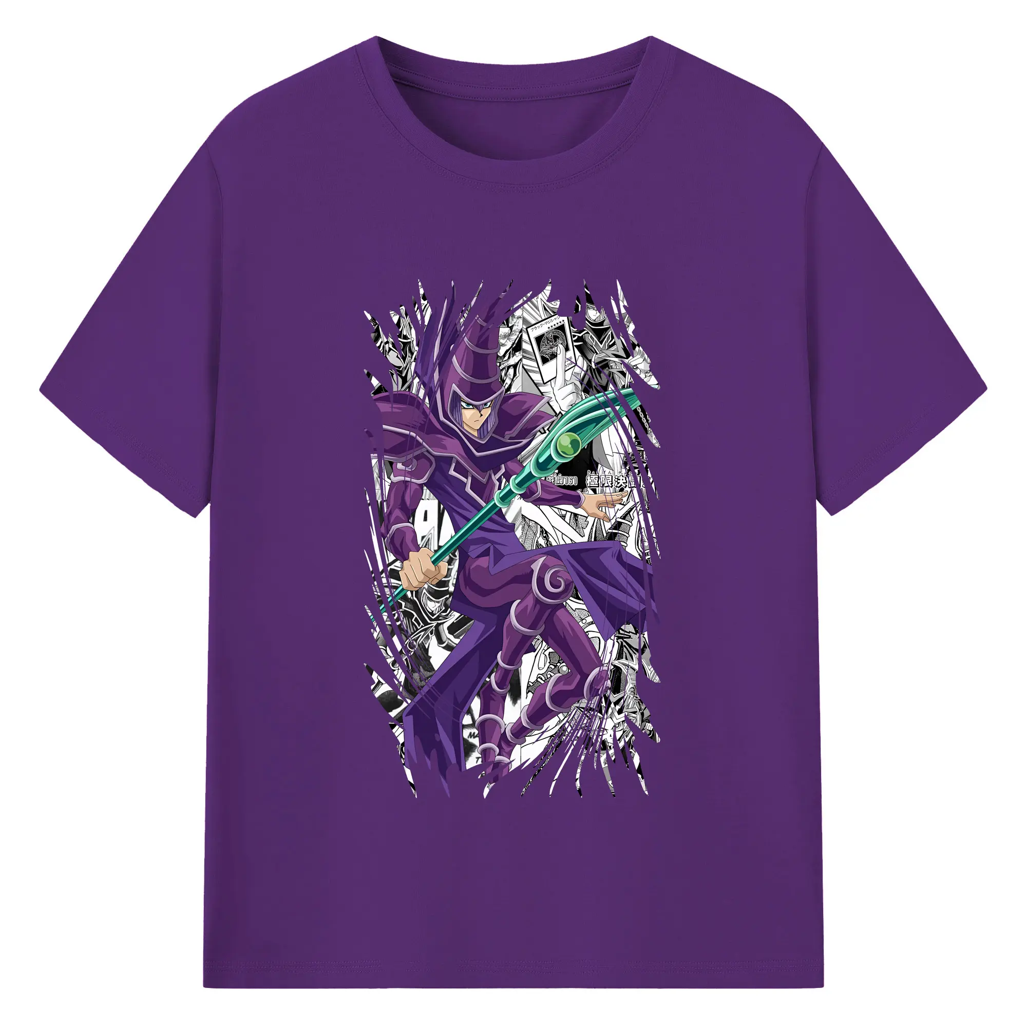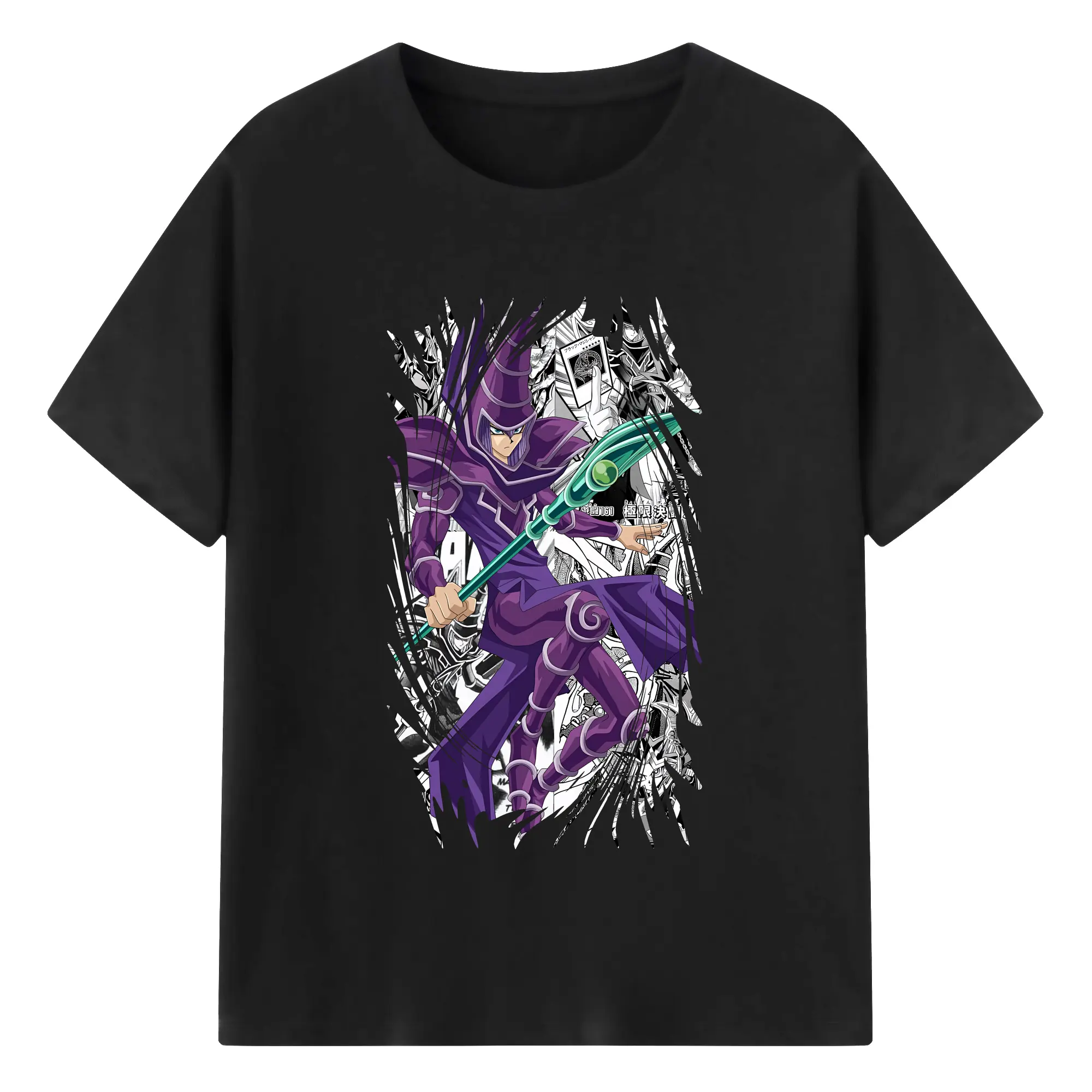 遊☆戯☆王 グッズ,ブラック・マジシャン - 綿100% 半袖Tシャツ ・ バックプリント ・ 快適 通気性 ・ 日常使い 散歩 スポーツ用