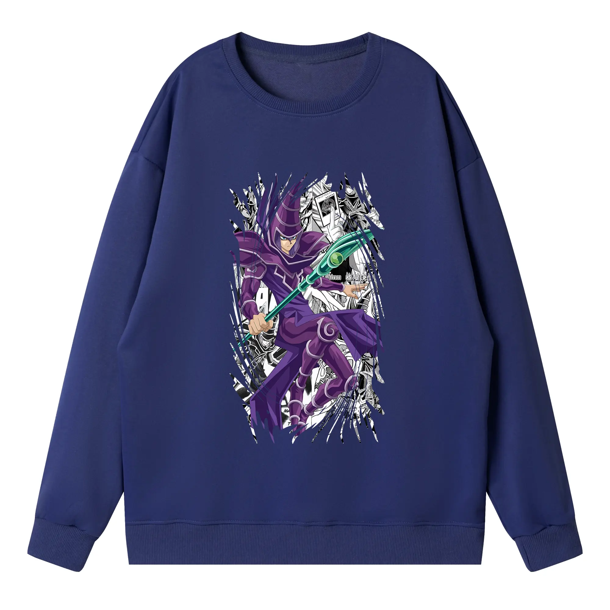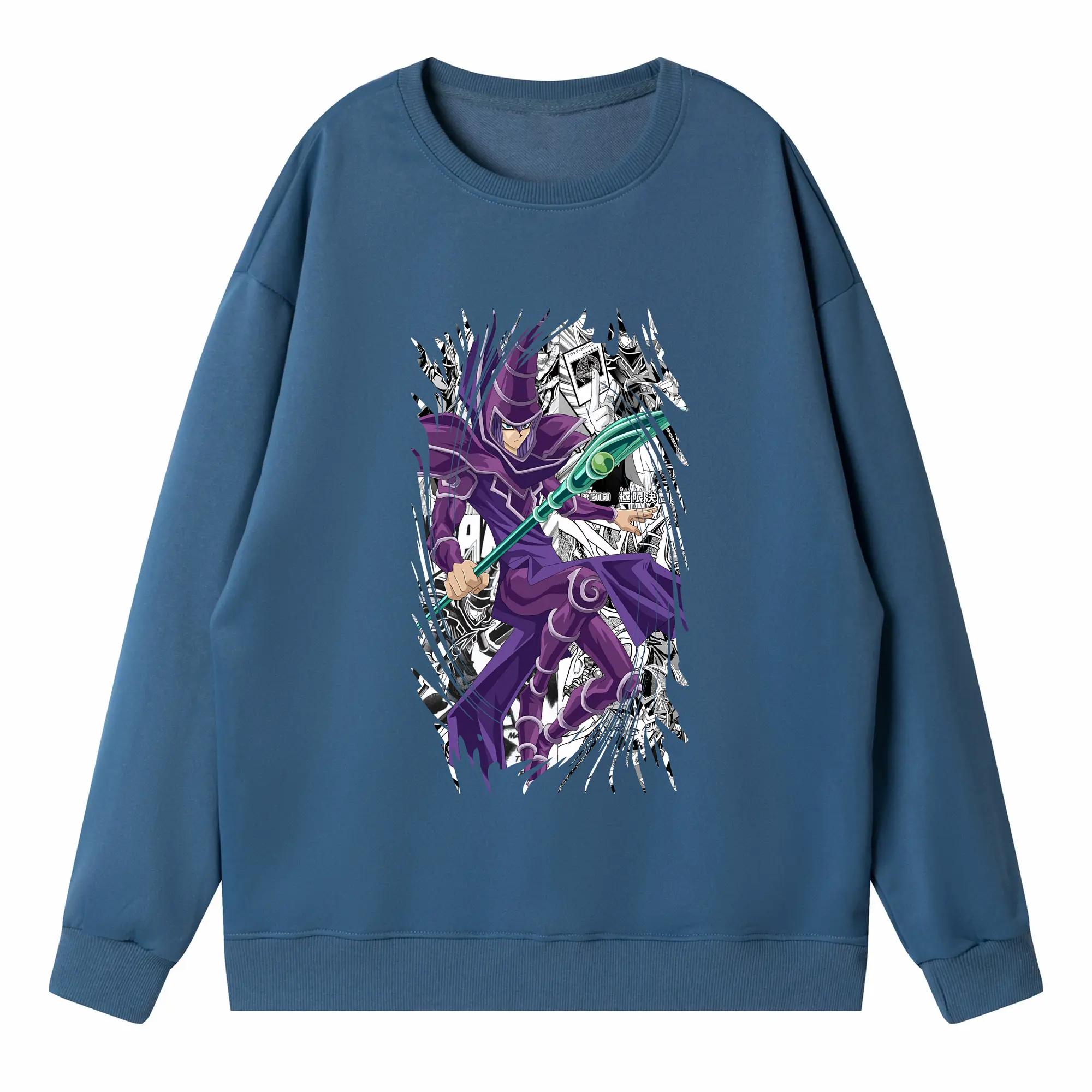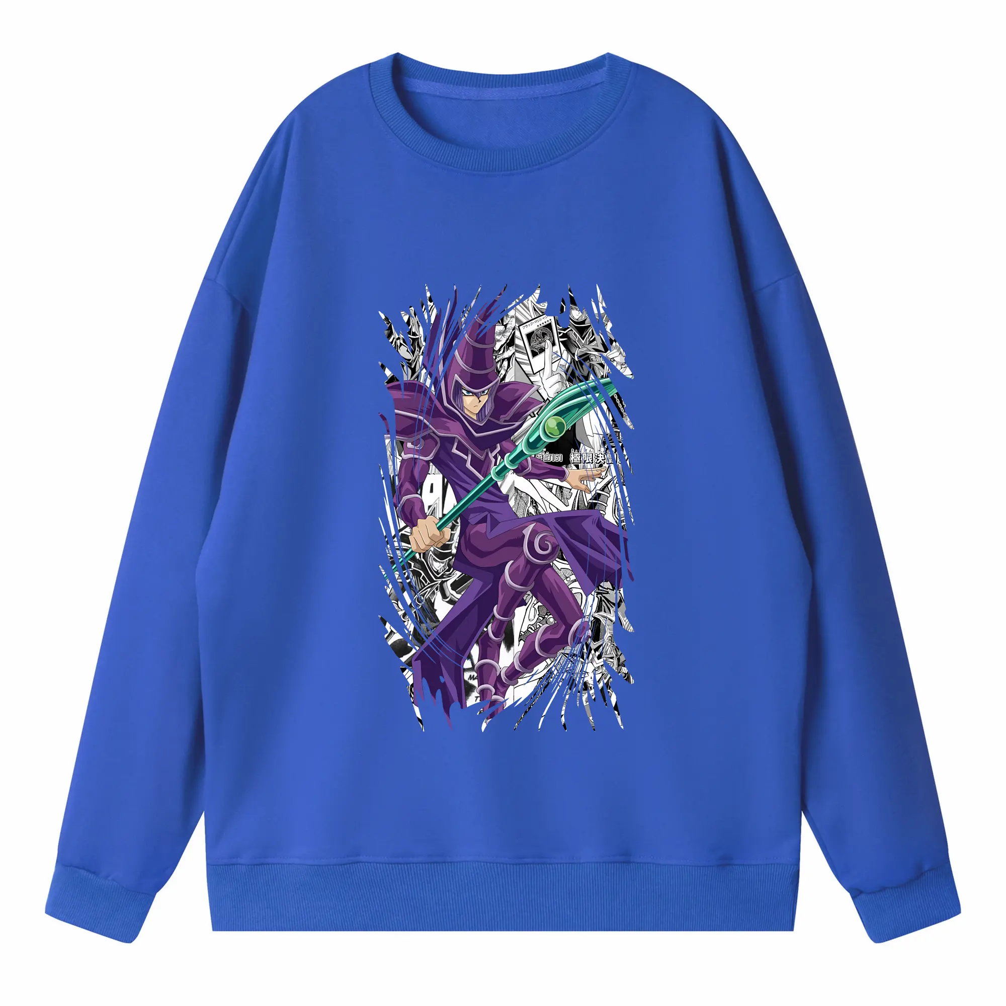 遊☆戯☆王 グッズ,ブラック・マジシャン - 高品質 クルーネック スウェット ・ コットン59% ポリエステル41% ・ ユニセックス 長袖 トレーナー ・ カジュアル デイリー スポーツ 散歩用