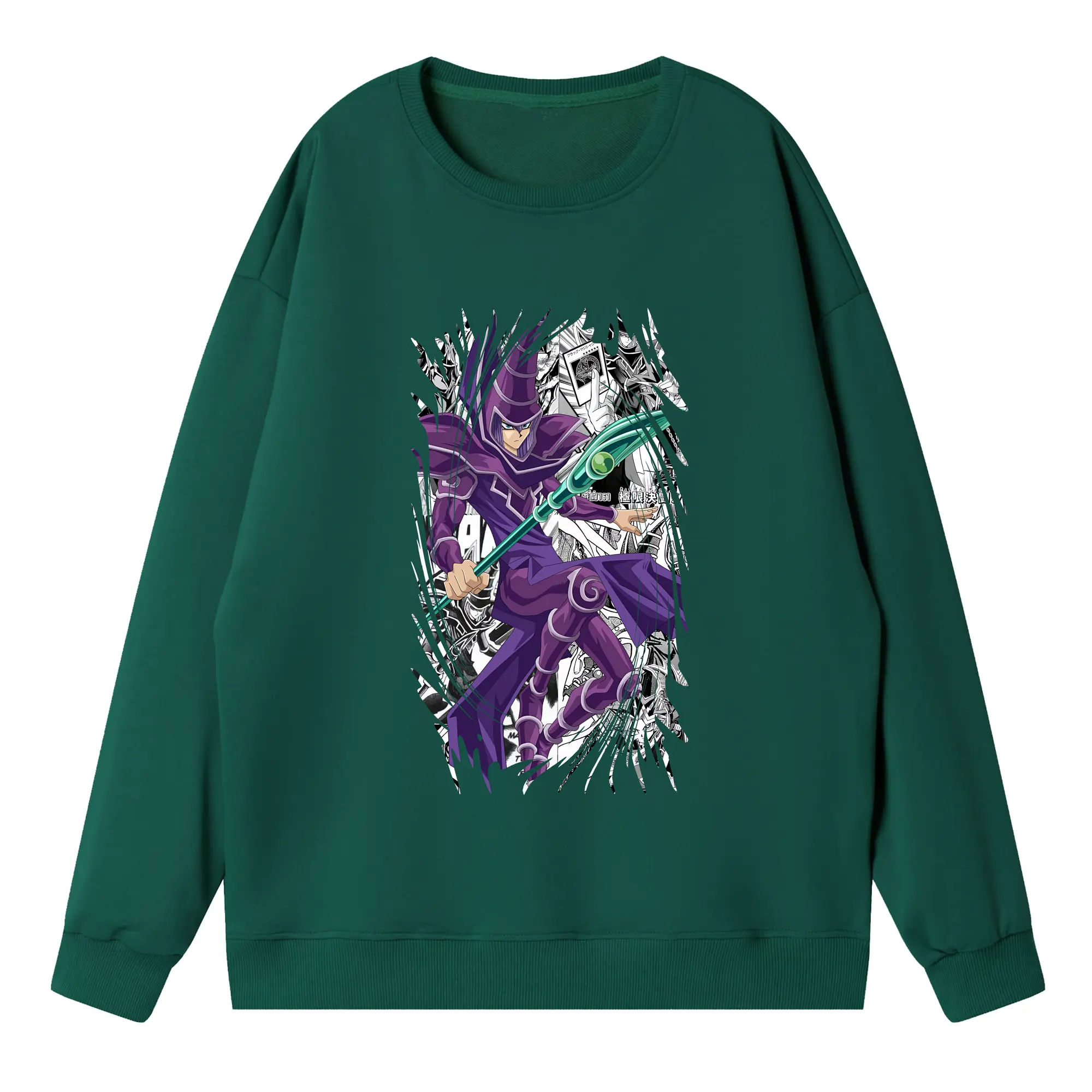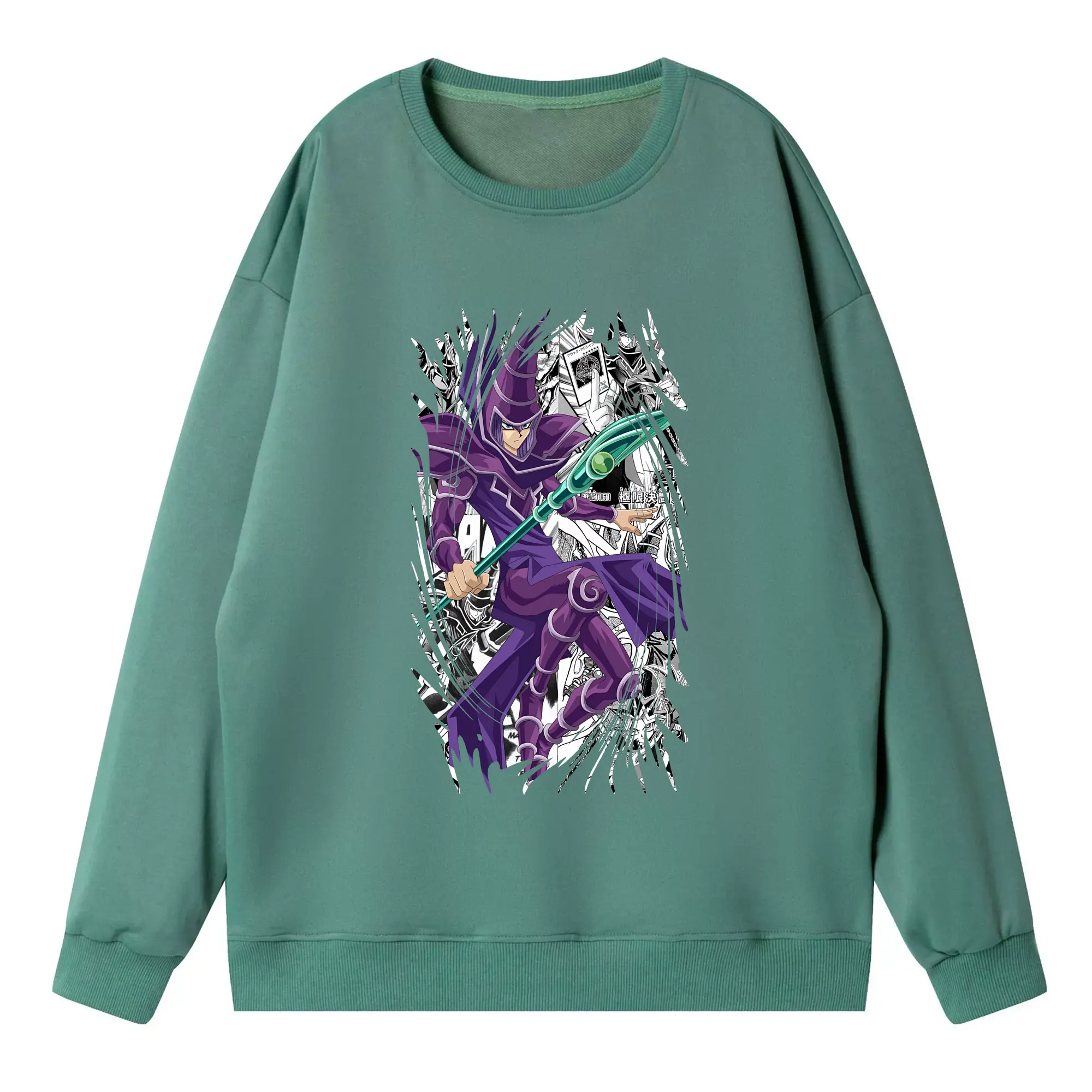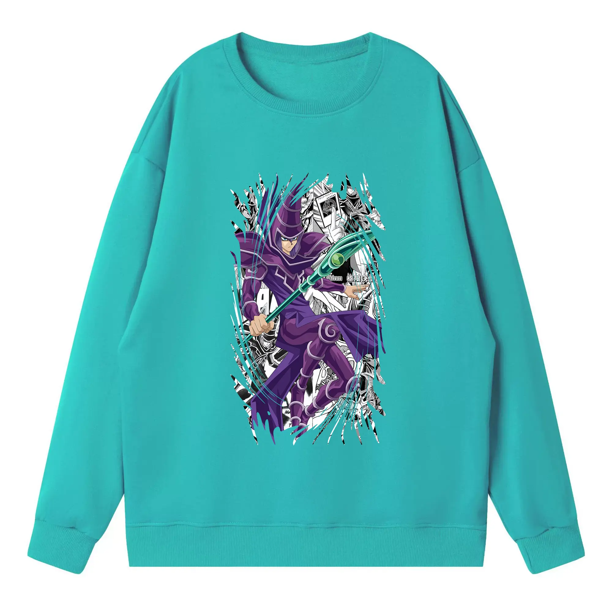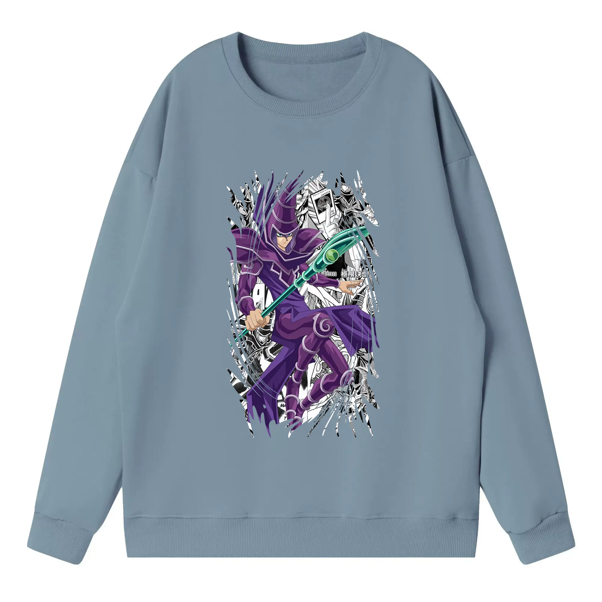 遊☆戯☆王 グッズ,ブラック・マジシャン - 高品質 クルーネック スウェット ・ コットン59% ポリエステル41% ・ ユニセックス 長袖 トレーナー ・ カジュアル デイリー スポーツ 散歩用