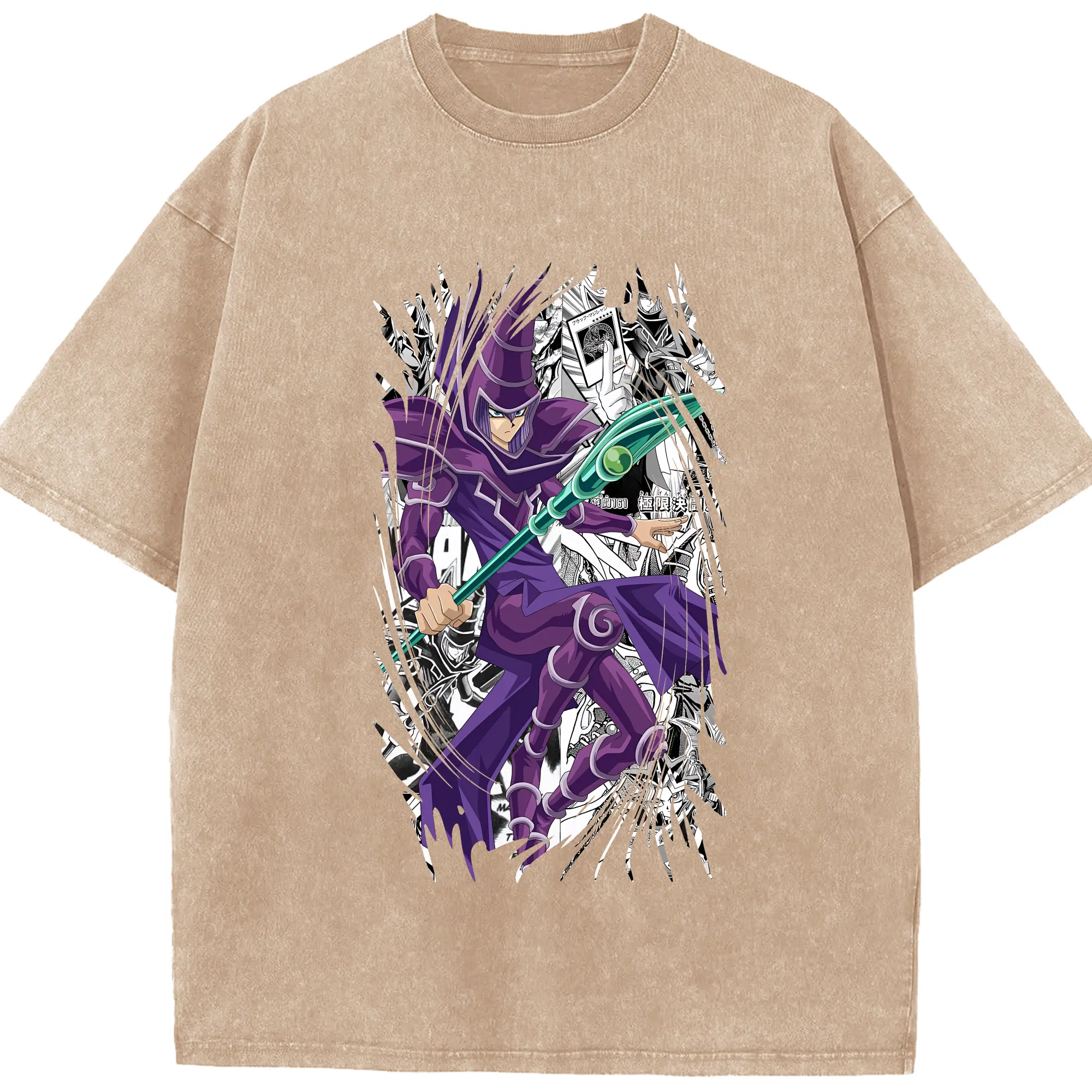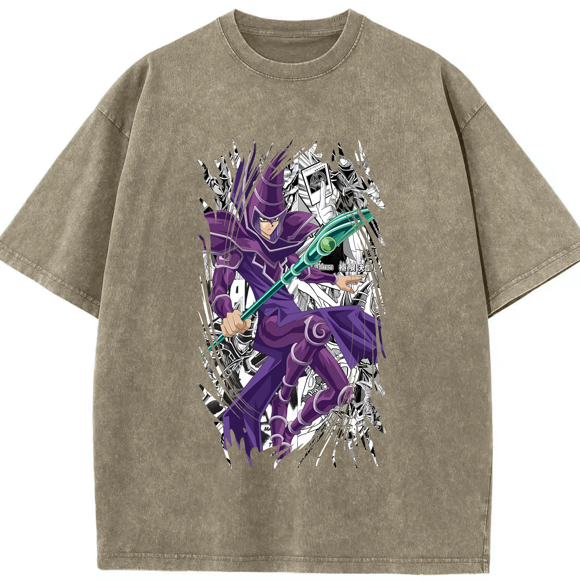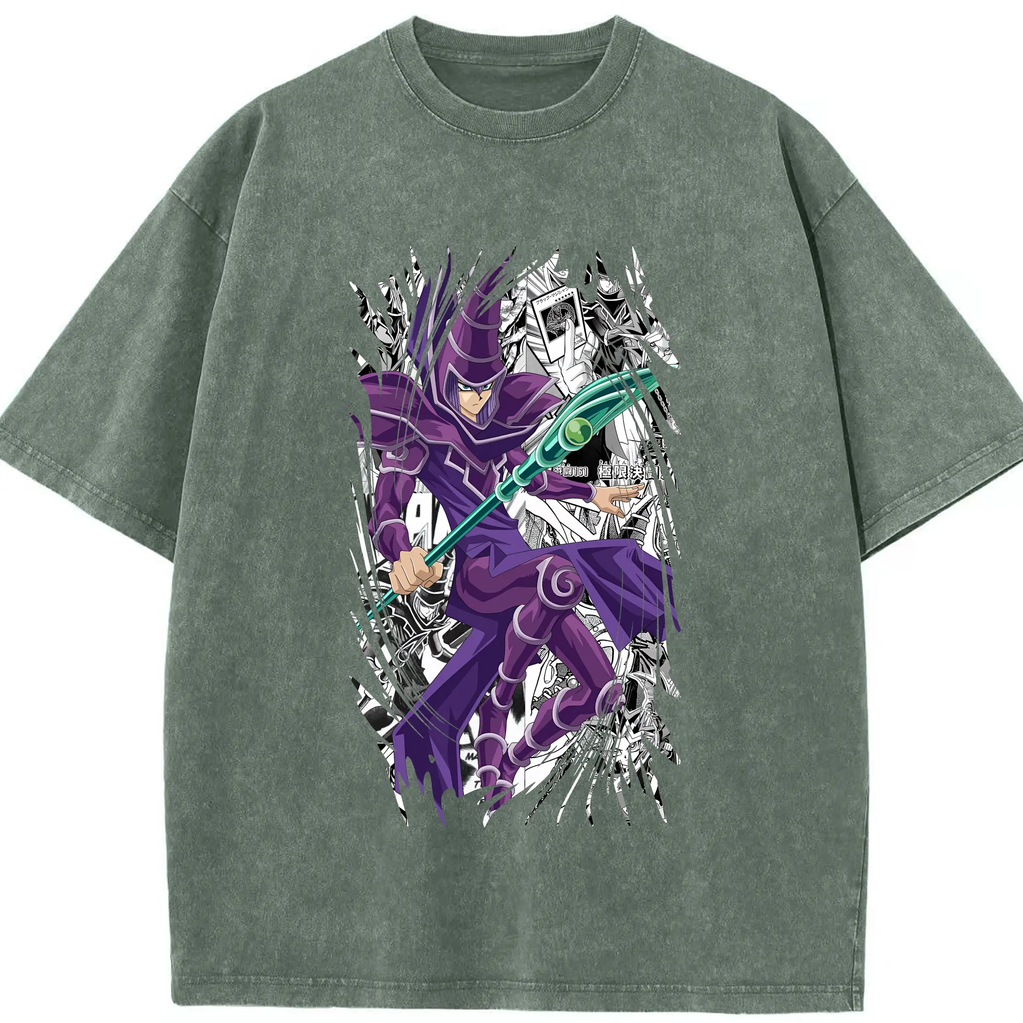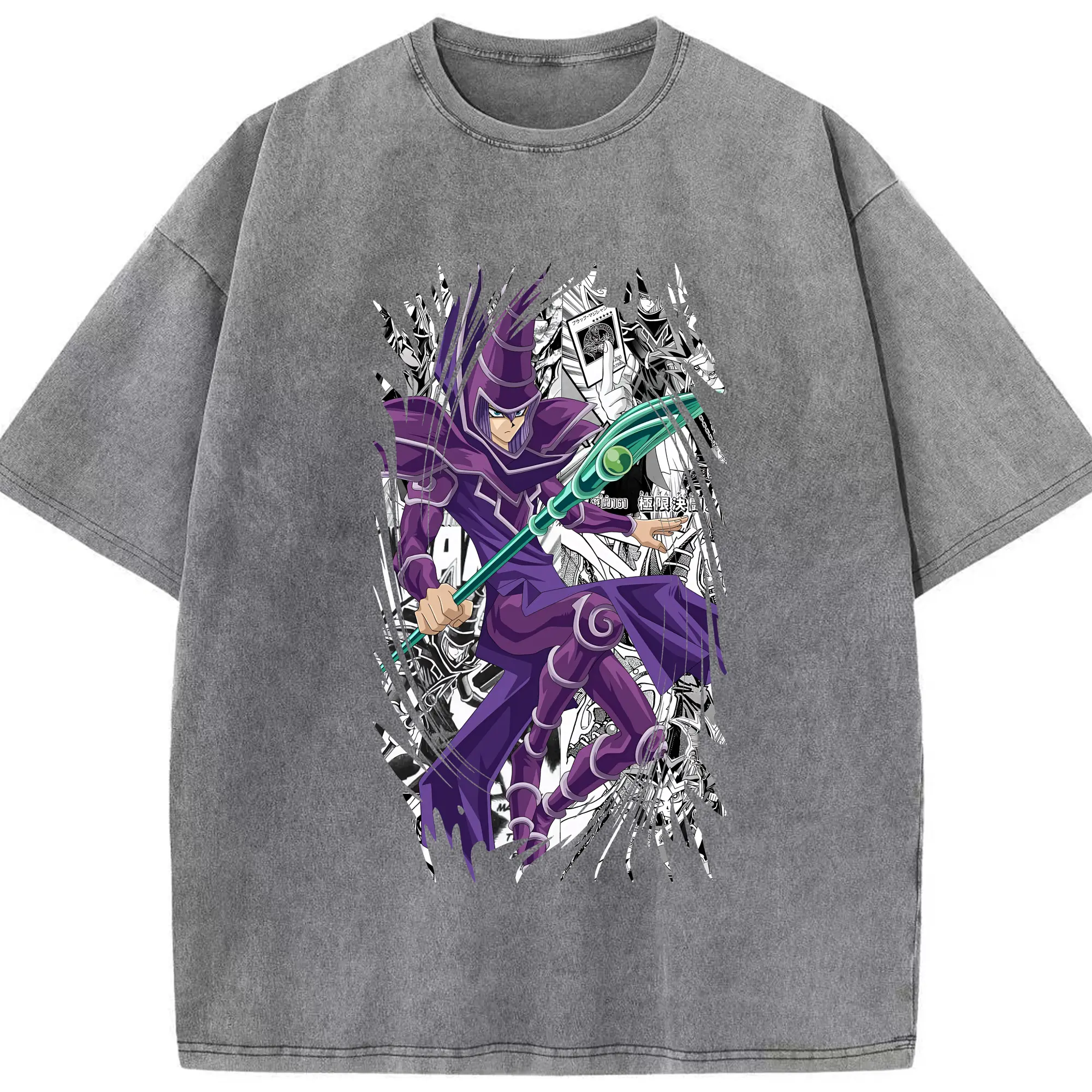 遊☆戯☆王 グッズ,ブラック・マジシャン - 綿100% ヴィンテージ風 半袖Tシャツ ・ 背面プリント ・ 柔らか肌触り ・ 通気性 快適 ・ スポーツ カジュアル 外出用