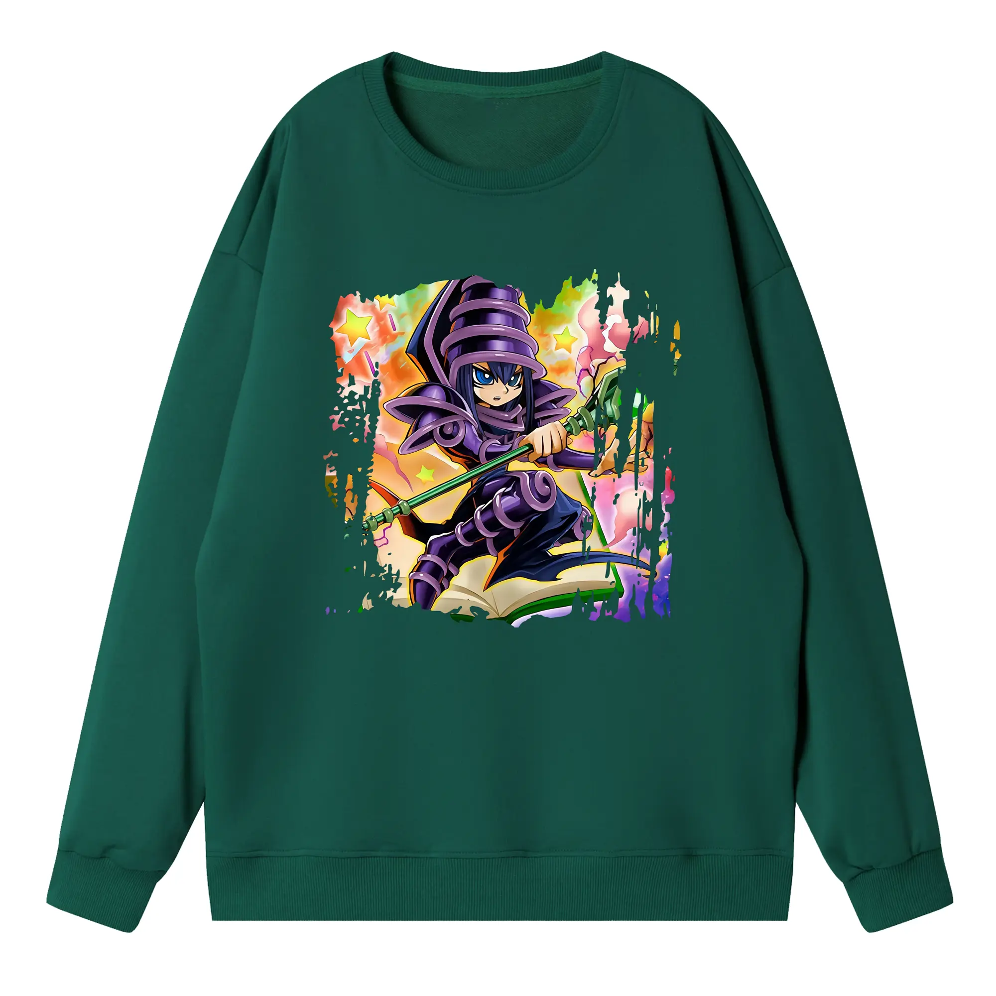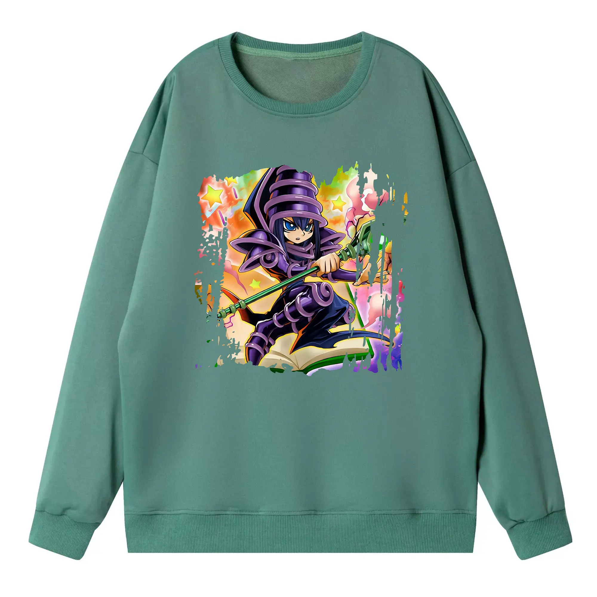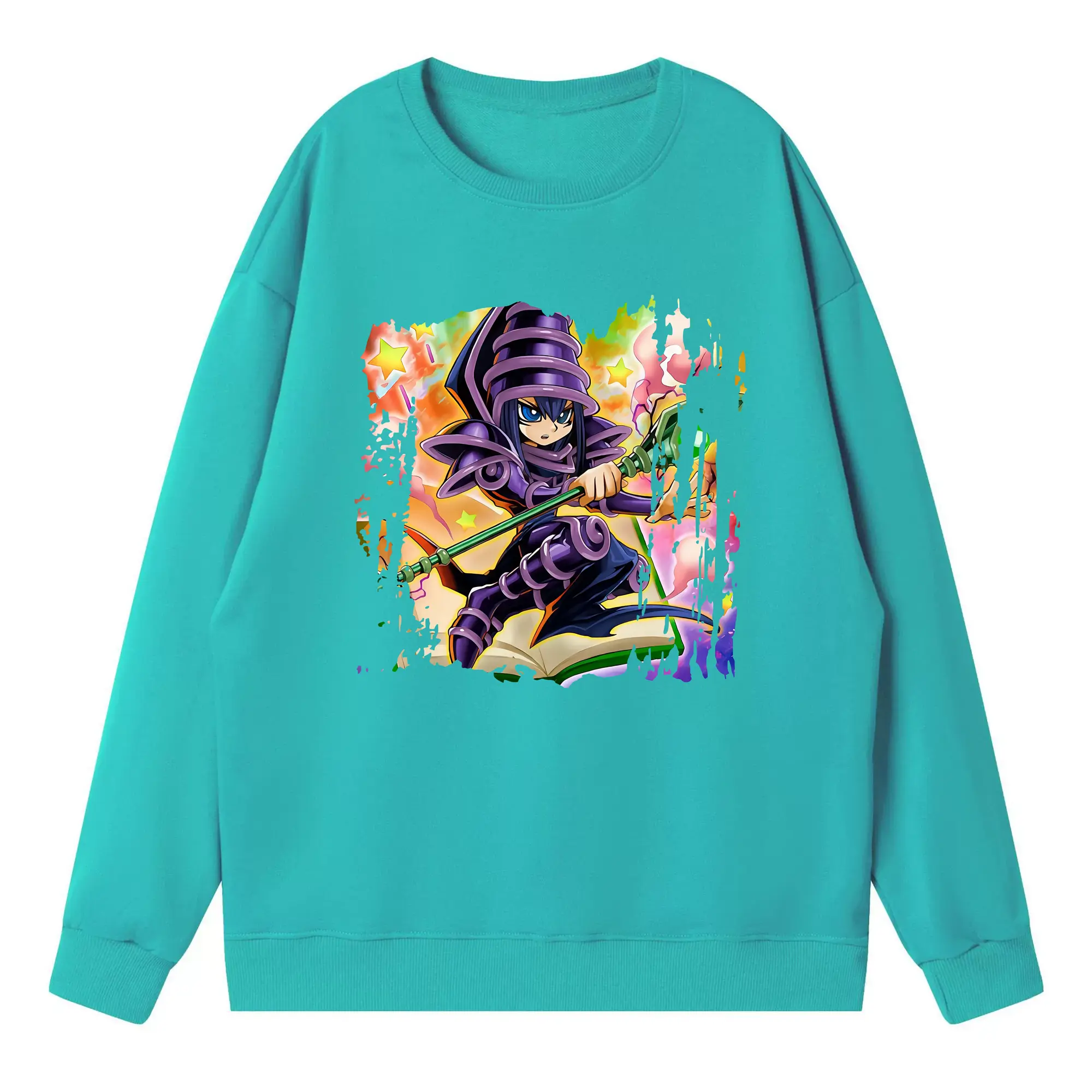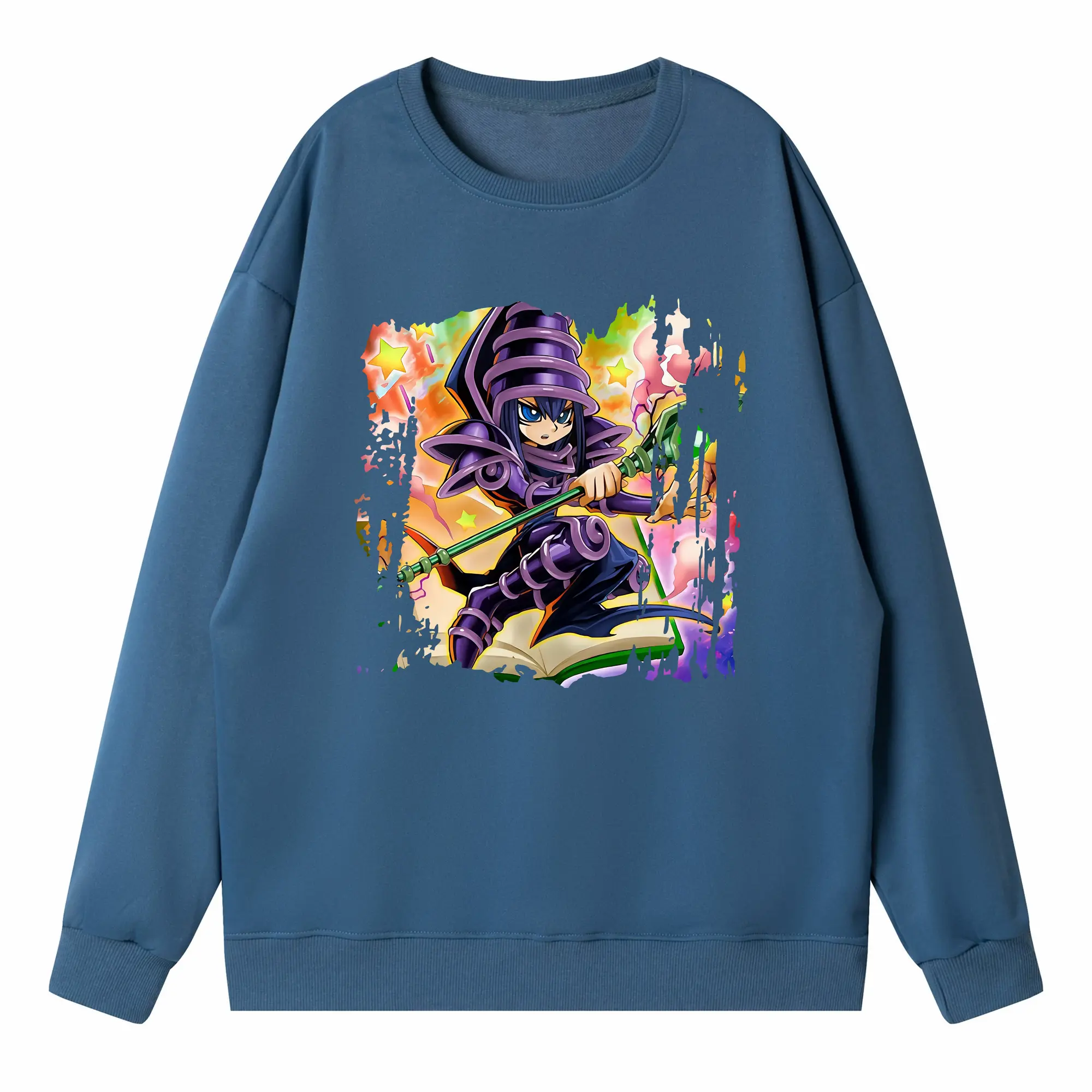 遊☆戯☆王 グッズ,ブラック・マジシャン - 高品質 クルーネック スウェット ・ コットン59% ポリエステル41% ・ ユニセックス 長袖 トレーナー ・ カジュアル デイリー スポーツ 散歩用