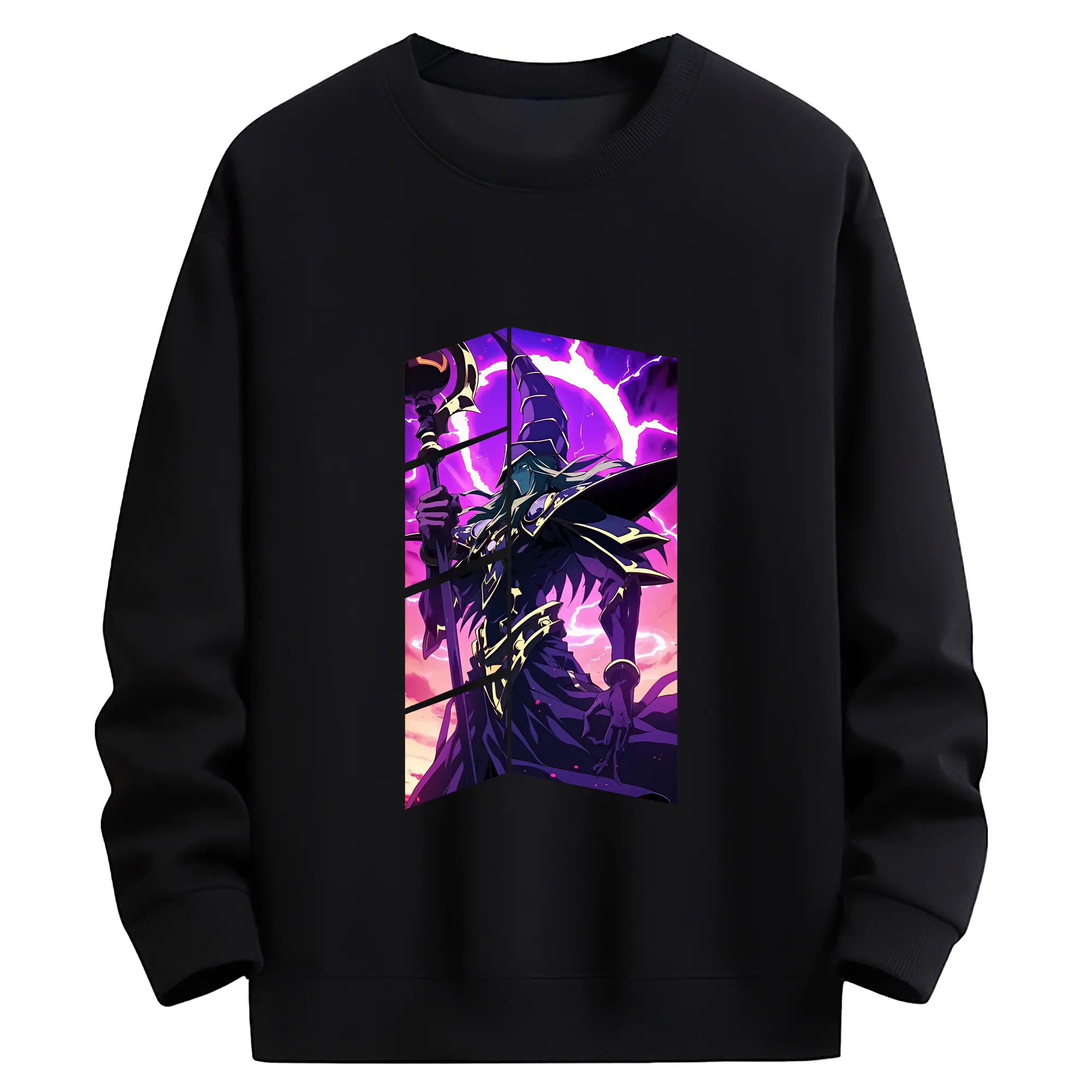 遊☆戯☆王 グッズ,ブラック・マジシャン - 薄手 クルーネック スウェット 裏毛260g · ポリエステル 春秋向け カジュアル 男女兼用 · トレーナー デイリー スポーツ 散歩に最適