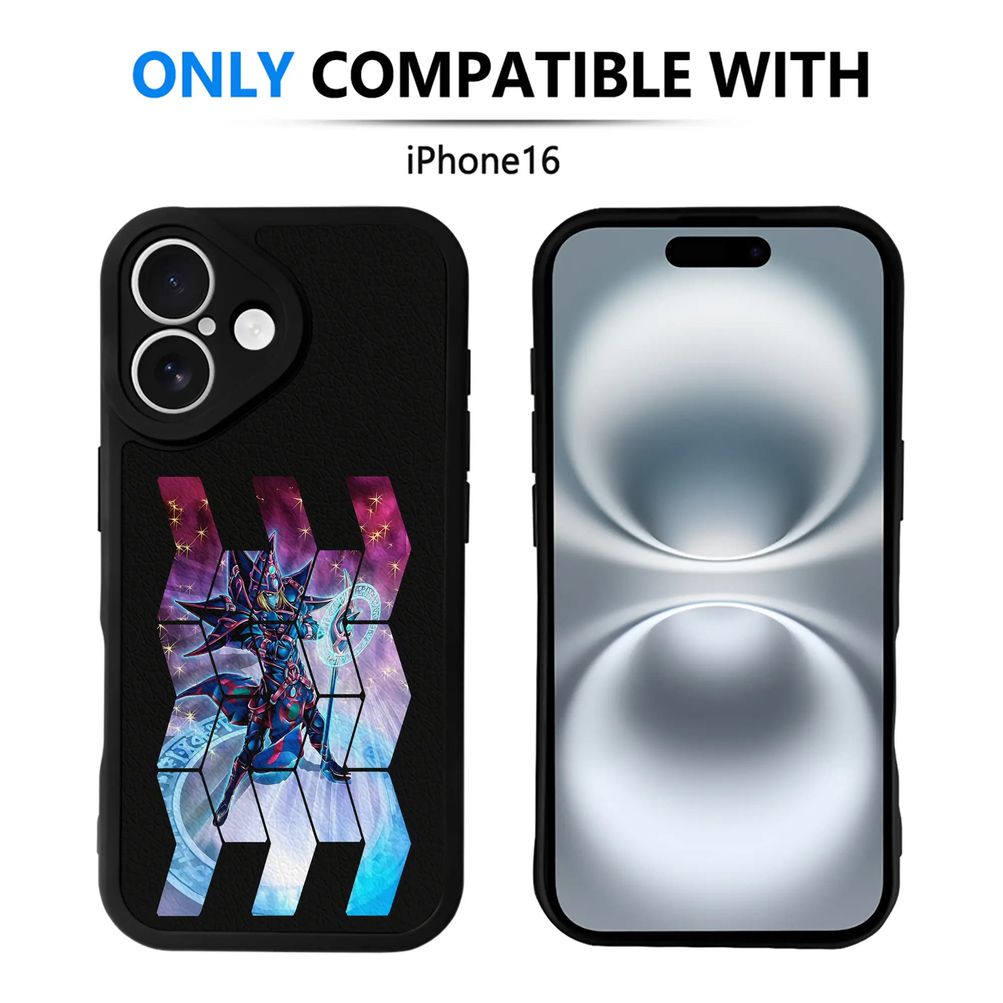 遊☆戯☆王 グッズ,ブラック・マジシャン - IPhone 16シリーズ対応 ・ シリコンスマホケース ・ レザー調 ・ 高精度フィット ・ 耐衝撃 ・ ワイヤレス充電対応 ・ 精密カット