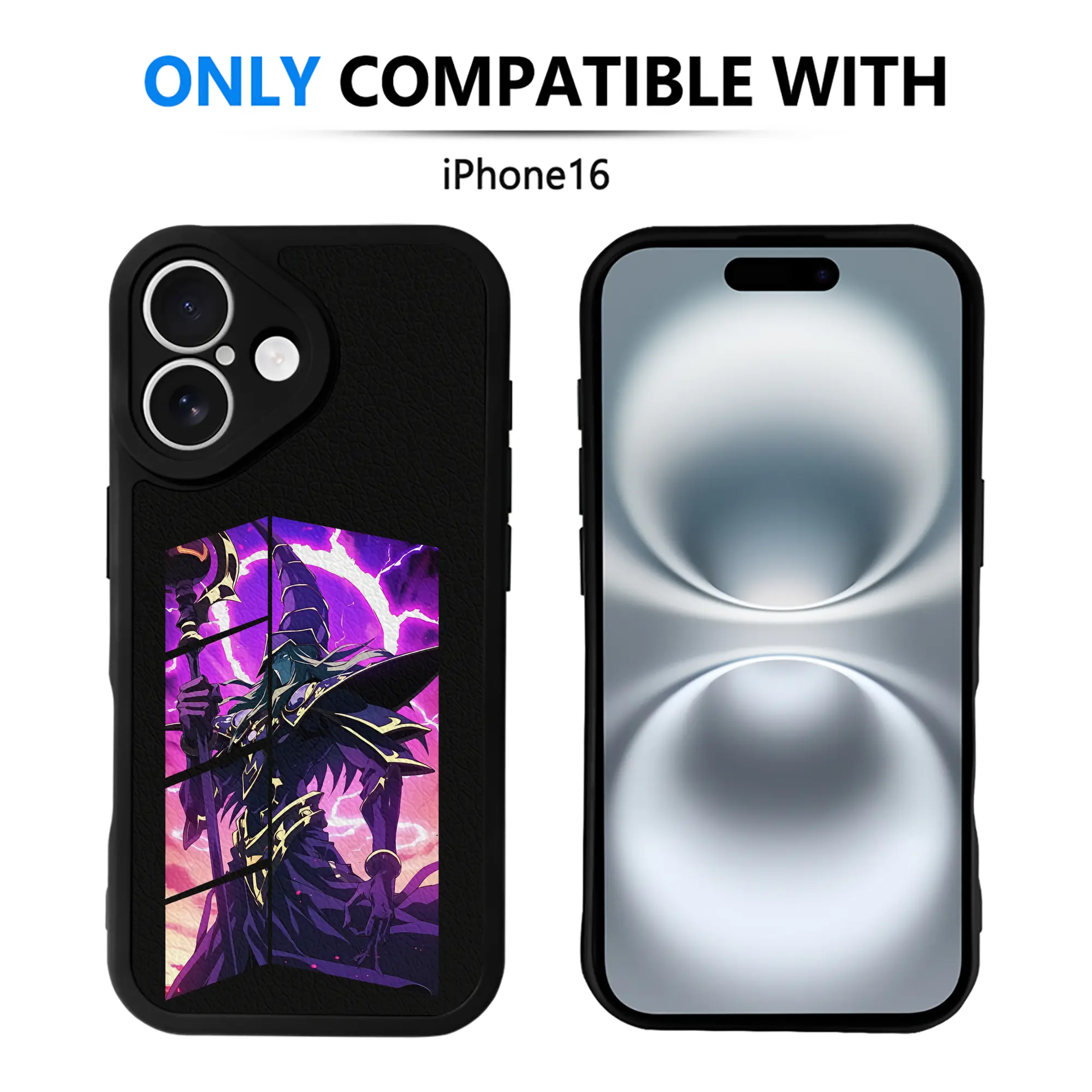 遊☆戯☆王 グッズ,ブラック・マジシャン - IPhone 16シリーズ対応 ・ シリコンスマホケース ・ レザー調 ・ 高精度フィット ・ 耐衝撃 ・ ワイヤレス充電対応 ・ 精密カット