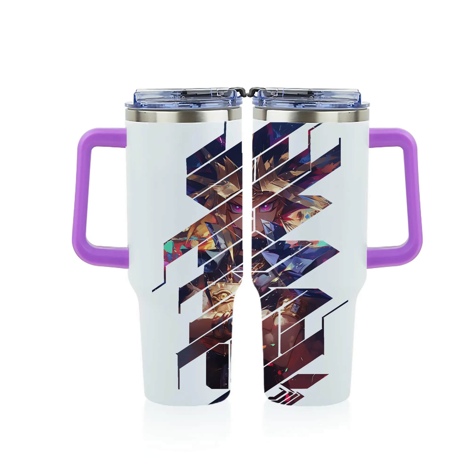 遊☆戯☆王 グッズ,武藤遊戯 - 1200mL フルプリント車用タンブラー ・ 304ステンレス 内側 ・ 201ステンレス 外側 ・ 保温 保冷 ・ 通勤 ドライブ アウトドア用