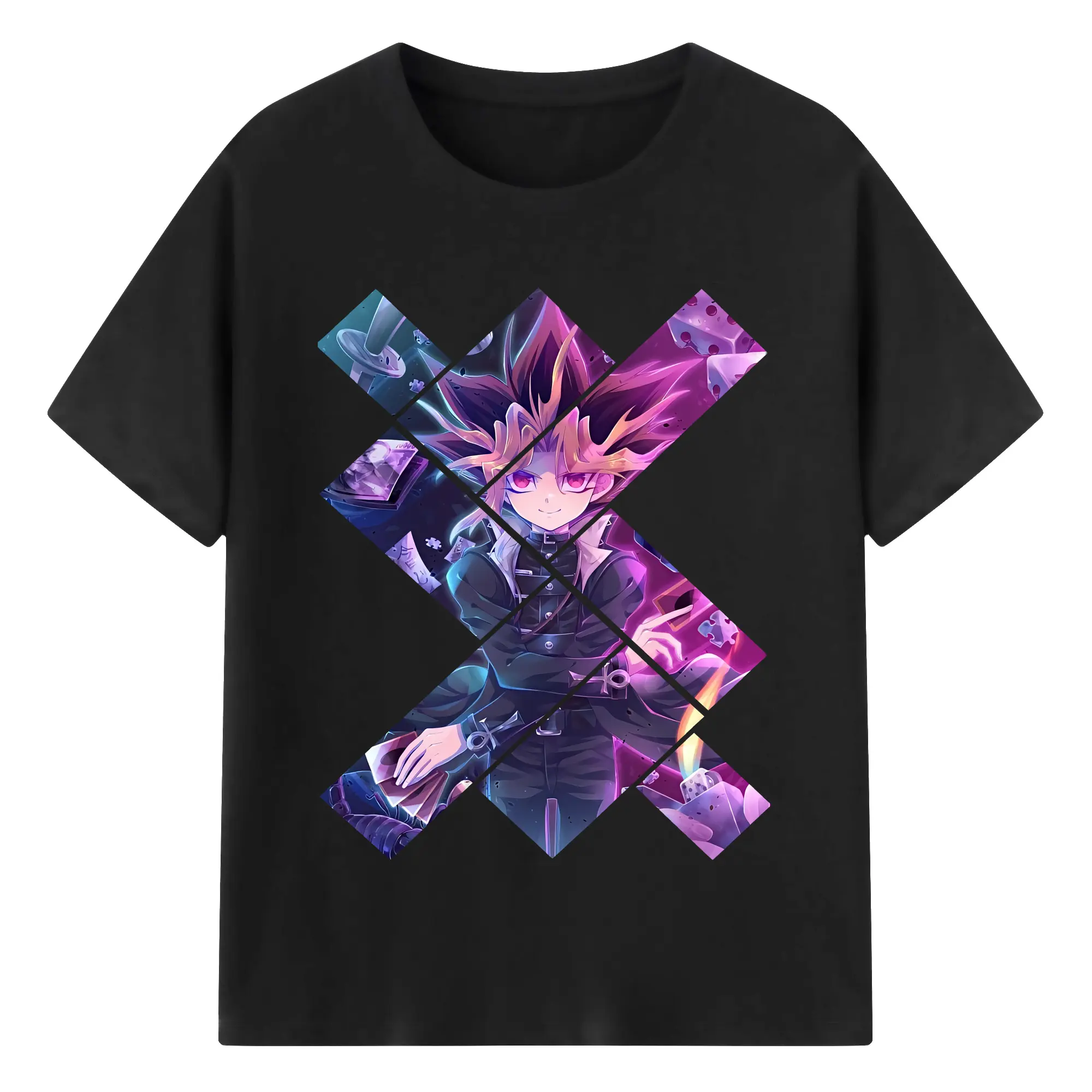 遊☆戯☆王 グッズ,武藤遊戯 - 綿100% 半袖Tシャツ ・ バックプリント ・ 快適 通気性 ・ 日常使い 散歩 スポーツ用