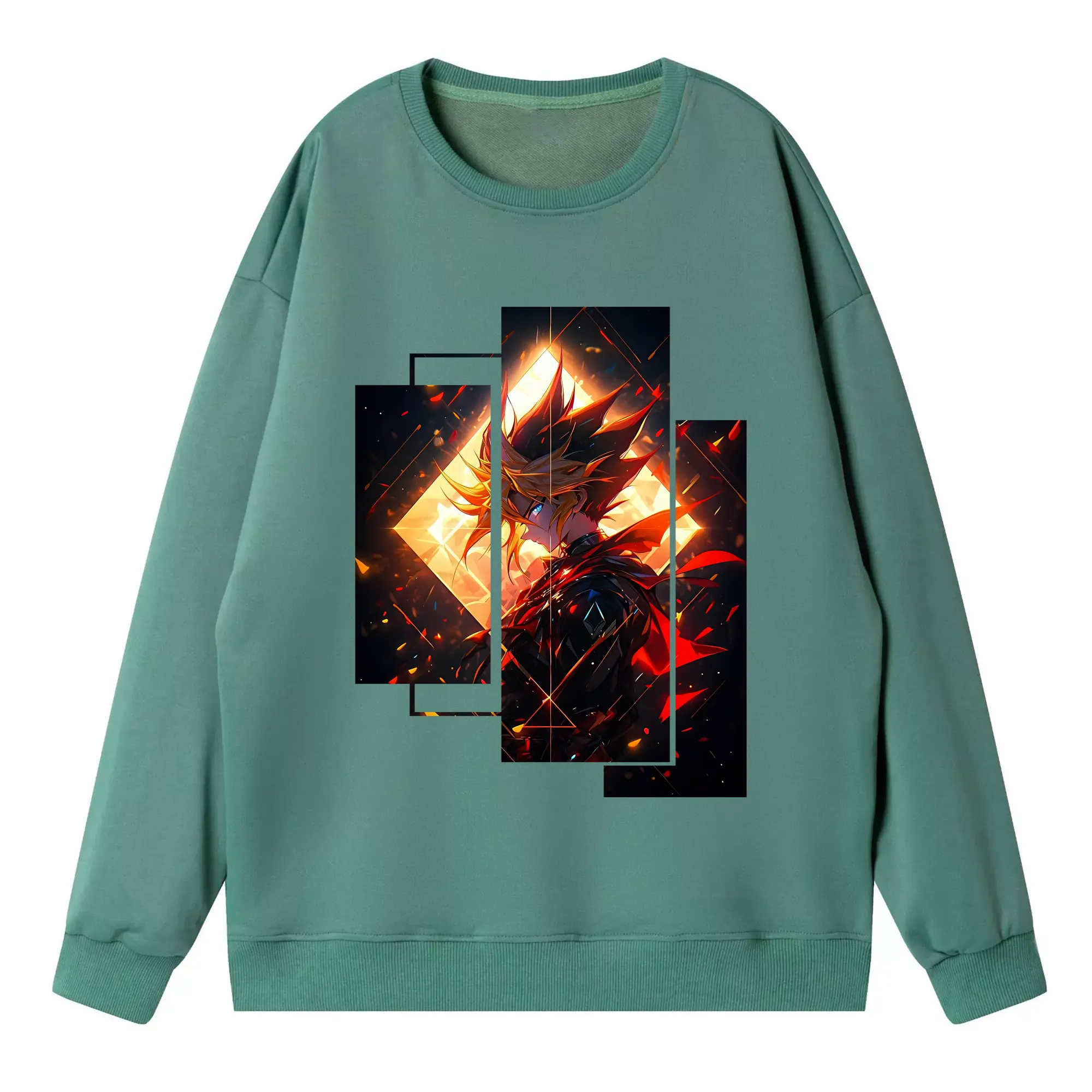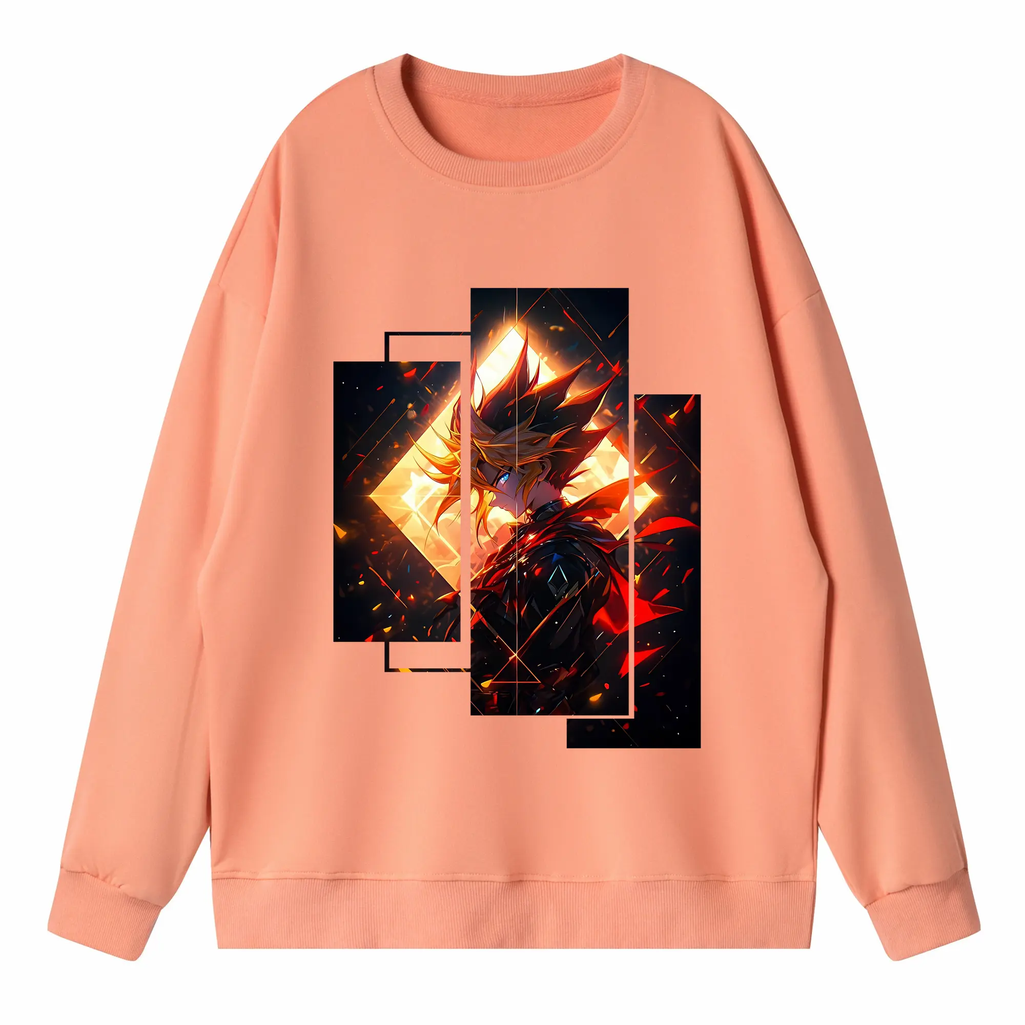 遊☆戯☆王 グッズ,武藤遊戯 - 高品質 クルーネック スウェット ・ コットン59% ポリエステル41% ・ ユニセックス 長袖 トレーナー ・ カジュアル デイリー スポーツ 散歩用