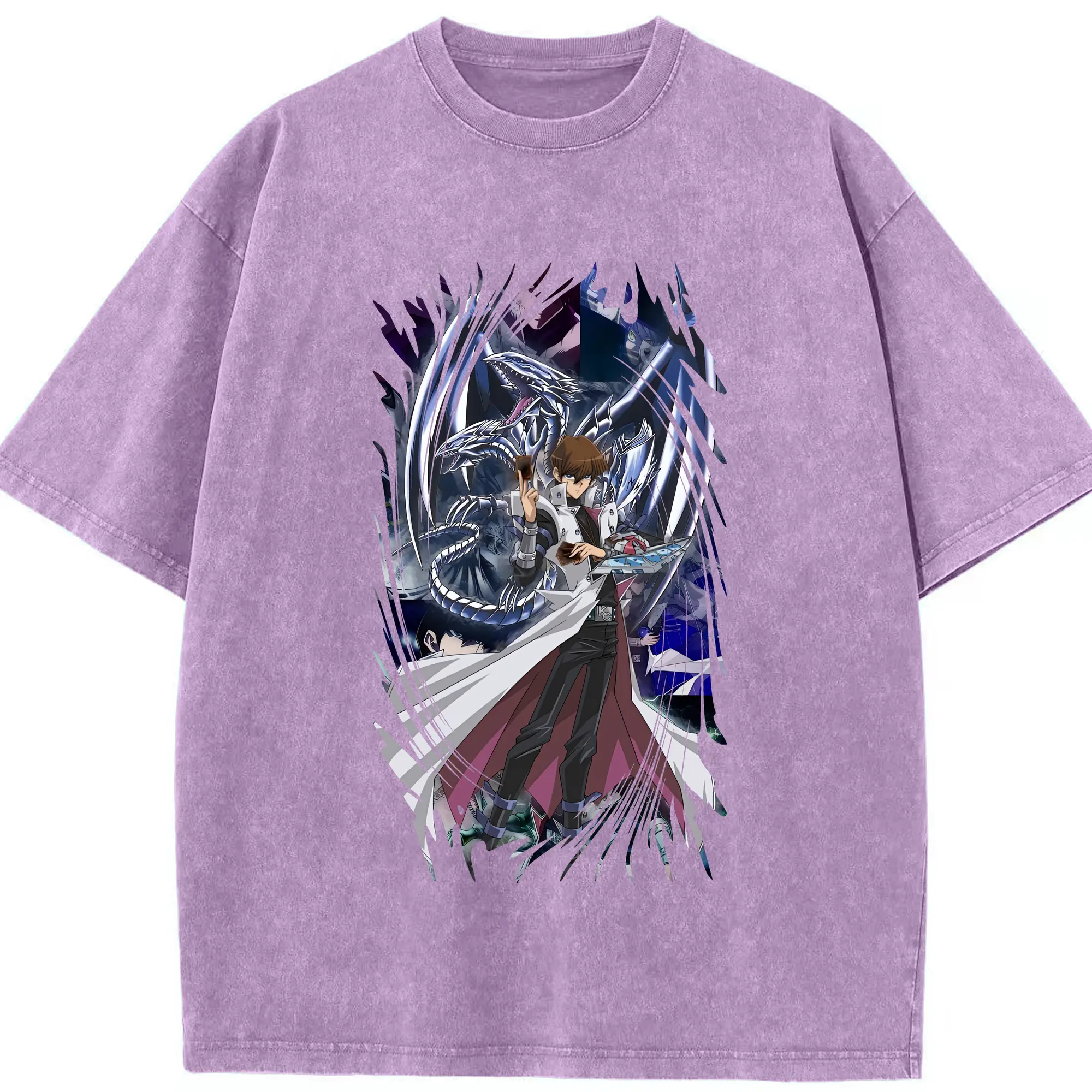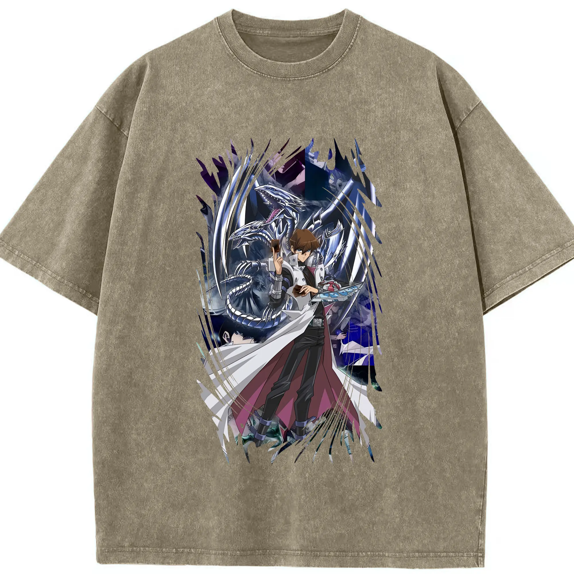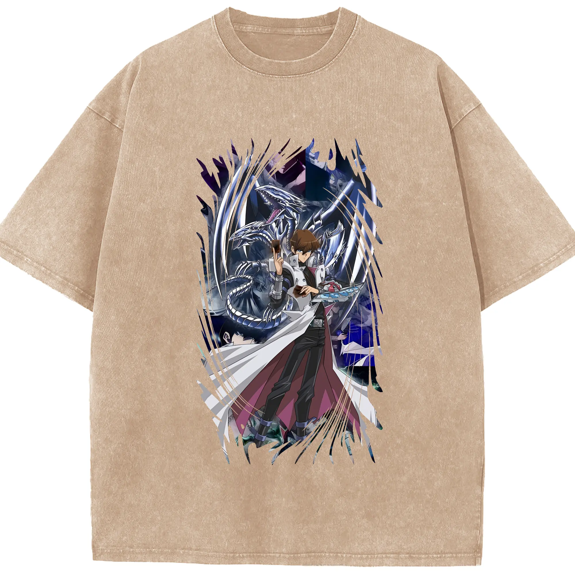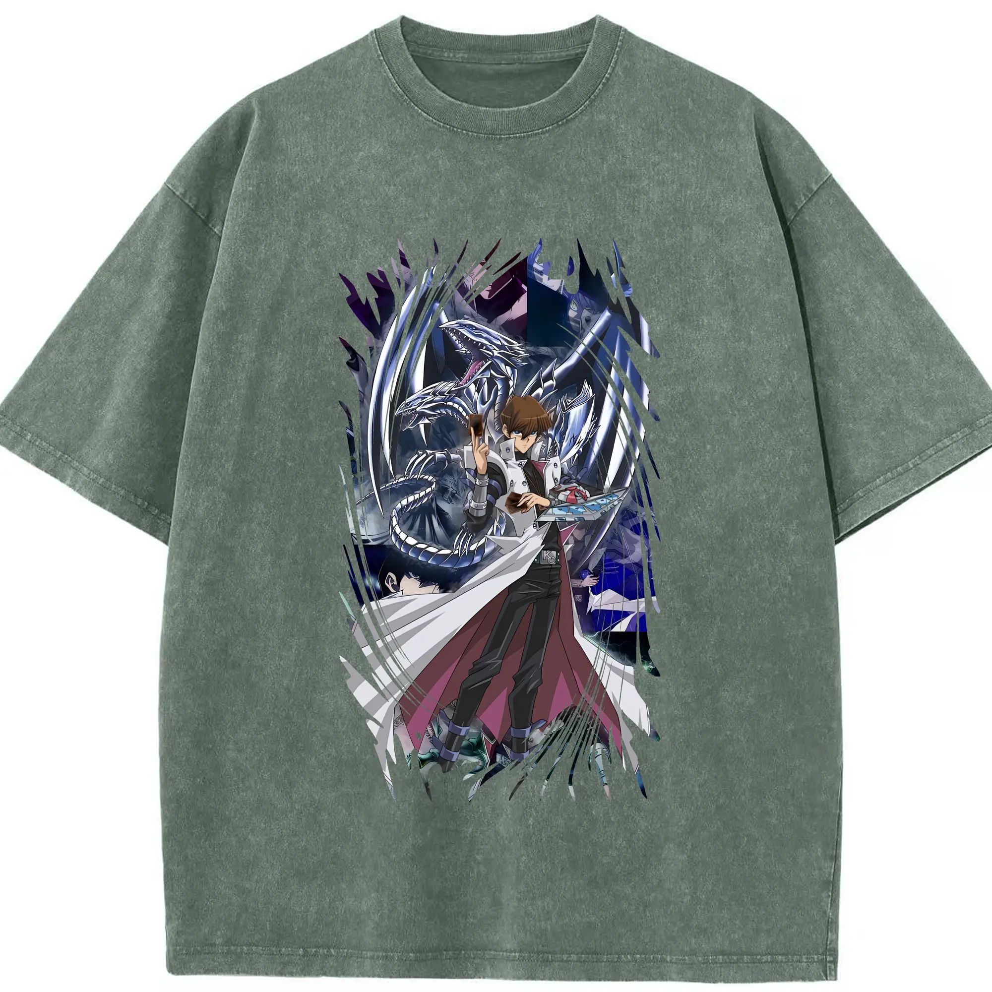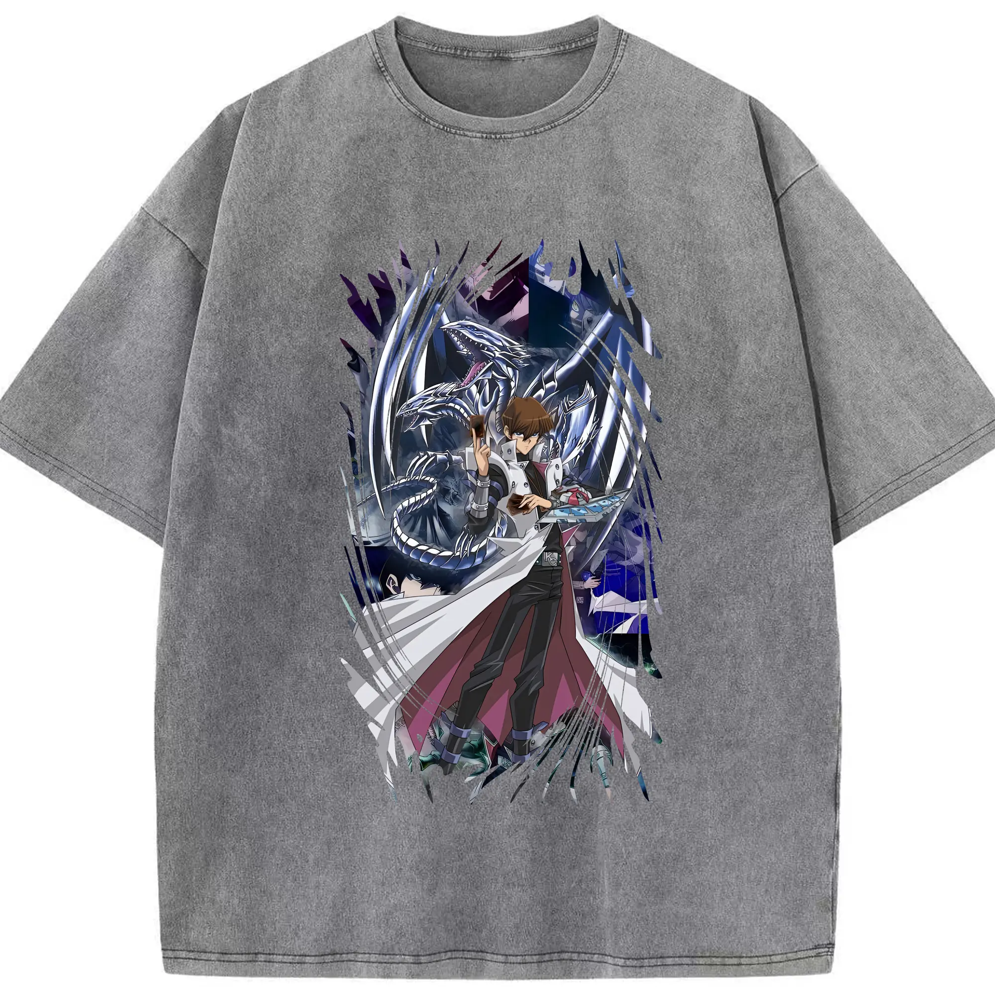 遊☆戯☆王 グッズ,海馬瀬人 - 綿100% ヴィンテージ風 半袖Tシャツ ・ 背面プリント ・ 柔らか肌触り ・ 通気性 快適 ・ スポーツ カジュアル 外出用