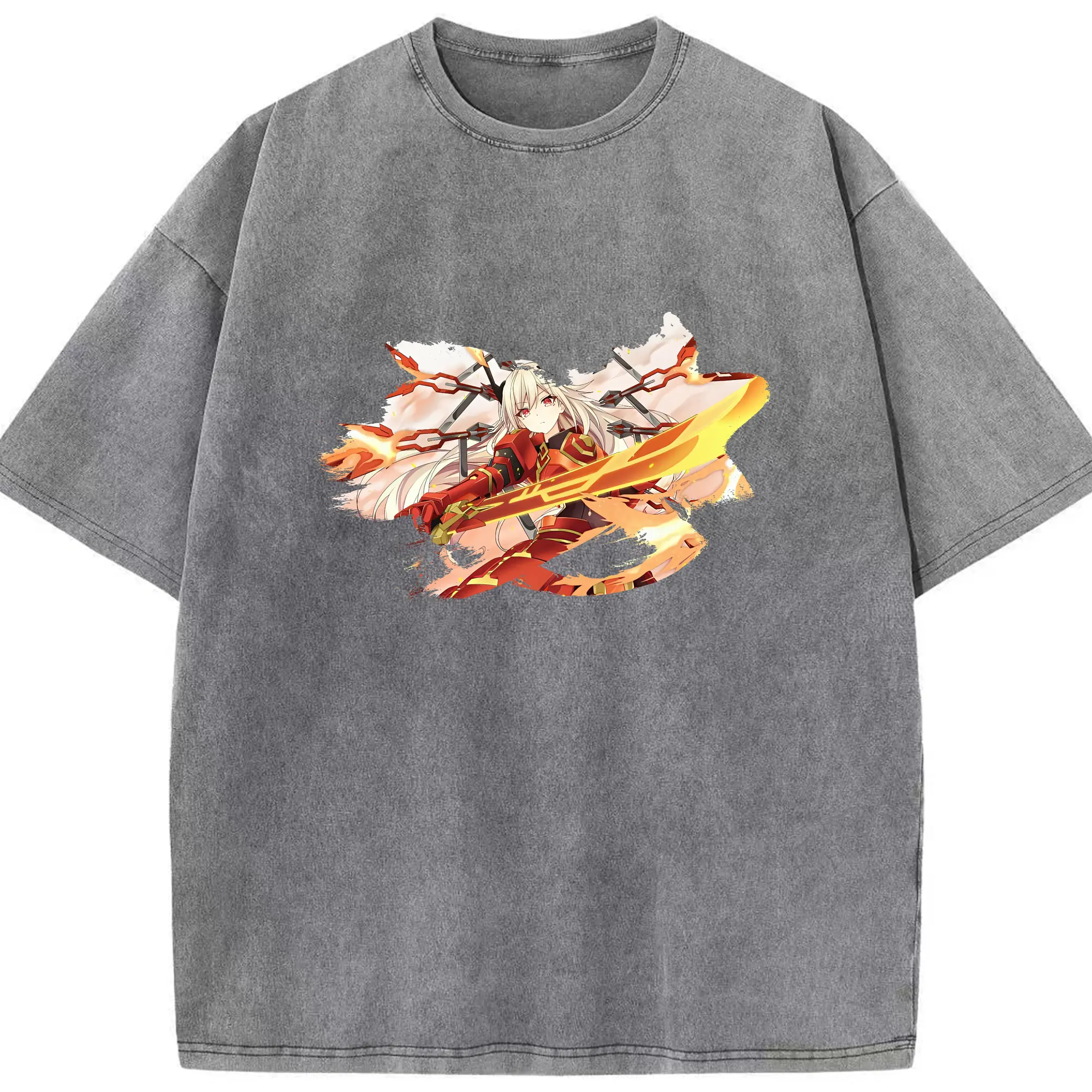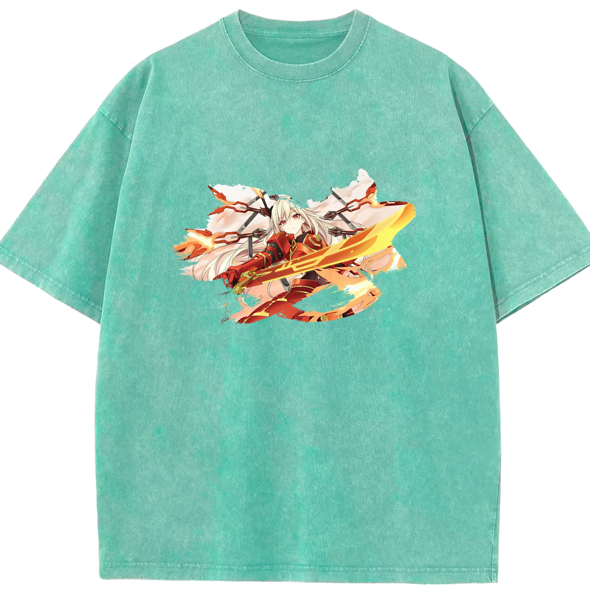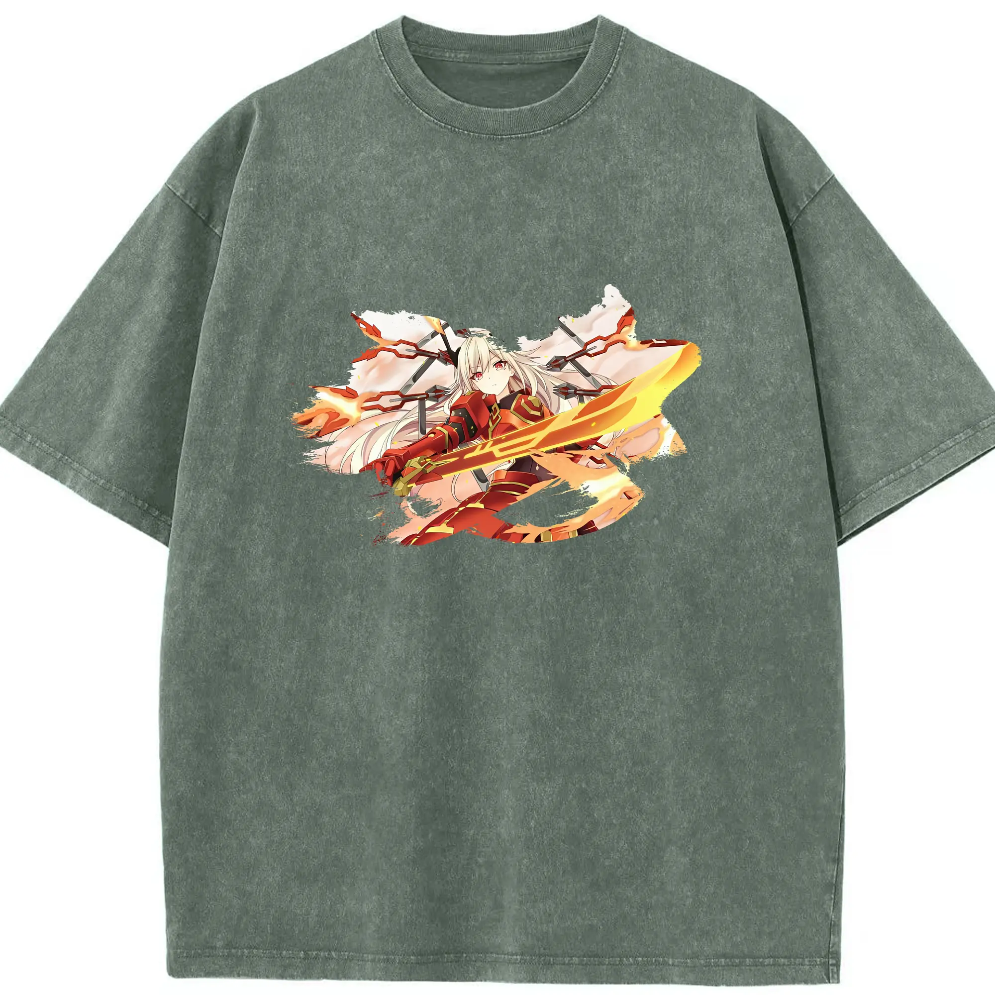 鳴潮 グッズ カルテジア - 綿100% ヴィンテージ風 半袖Tシャツ ・ フロントプリント ・ 柔らか肌触り ・ 通気性 快適 ・ スポーツ カジュアル 外出用
