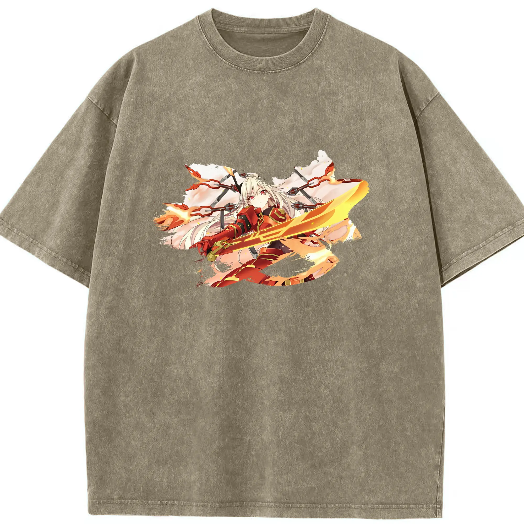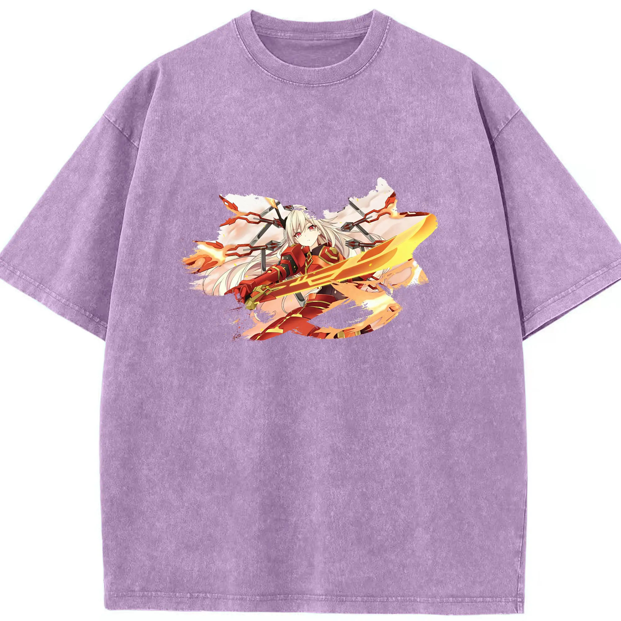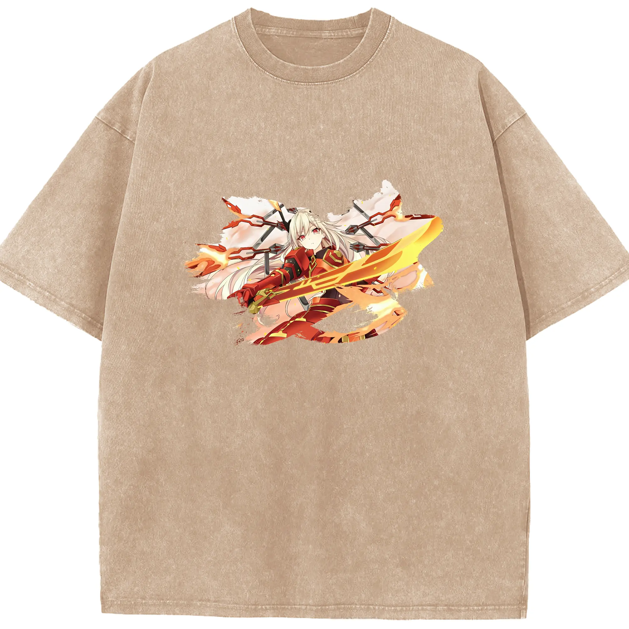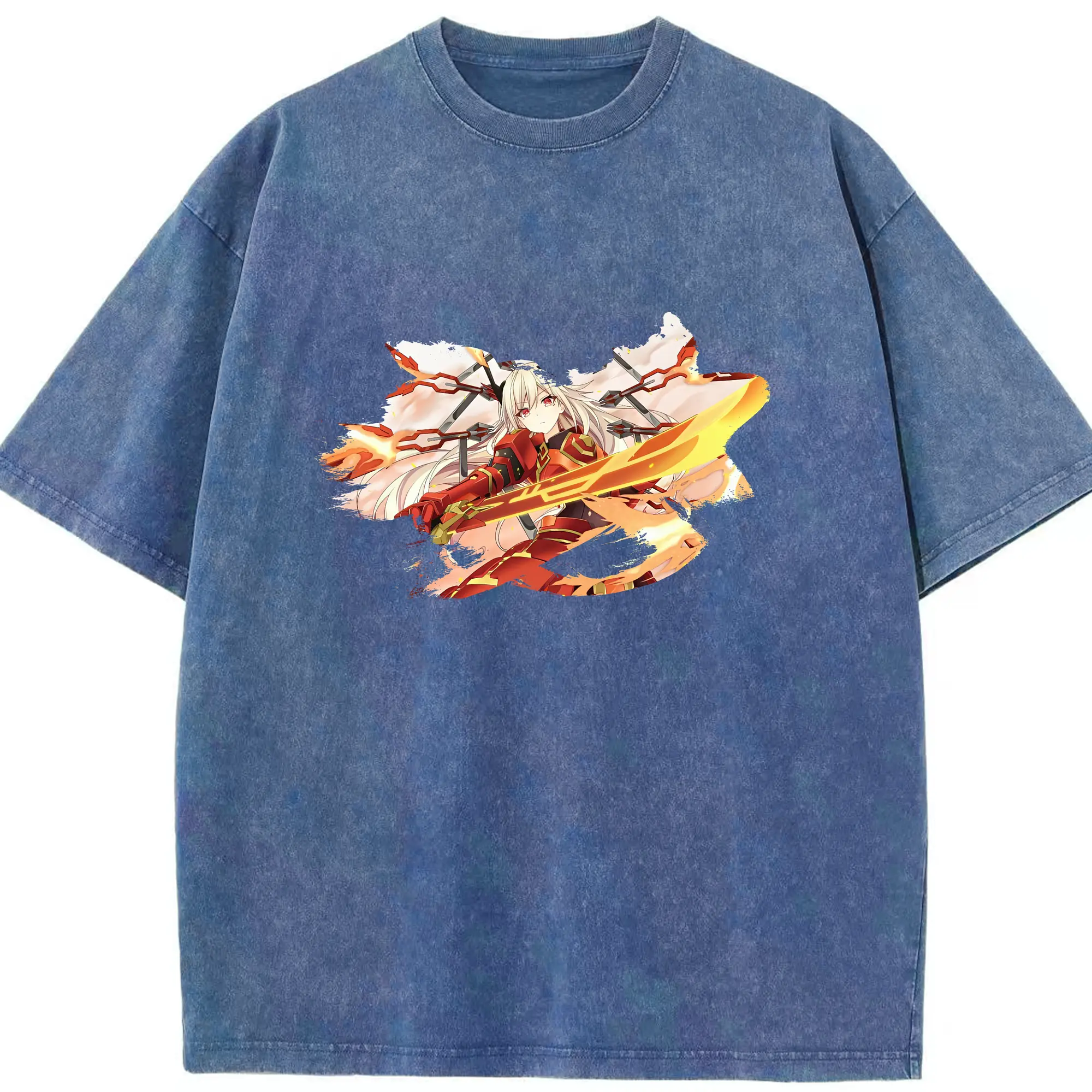 鳴潮 グッズ カルテジア - 綿100% ヴィンテージ風 半袖Tシャツ ・ フロントプリント ・ 柔らか肌触り ・ 通気性 快適 ・ スポーツ カジュアル 外出用