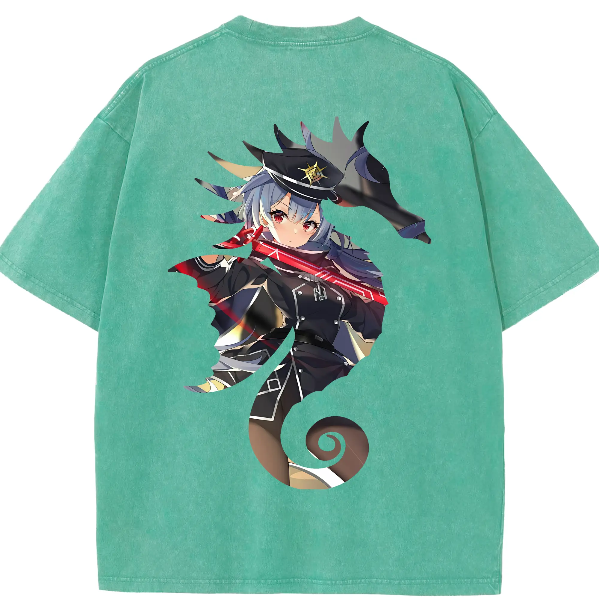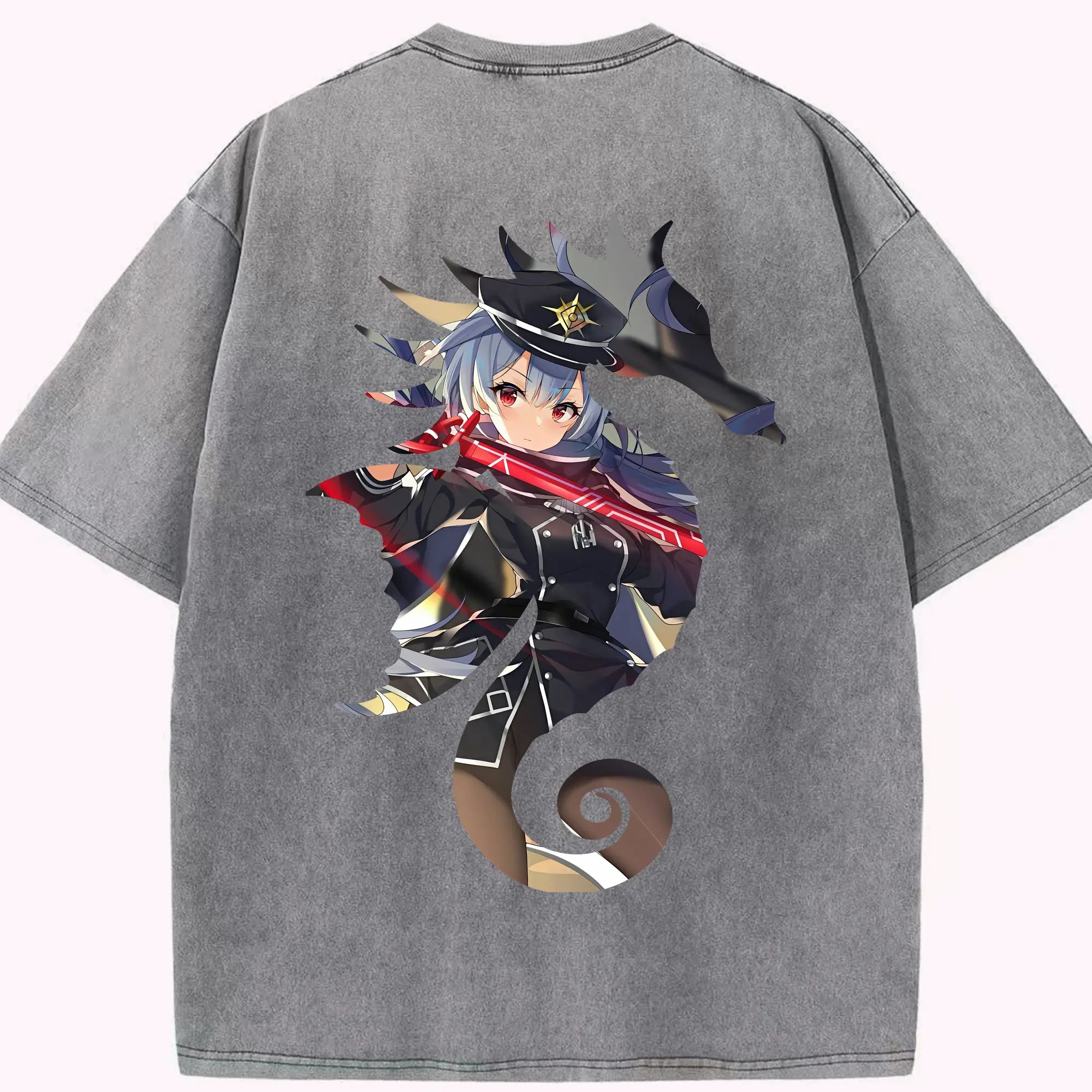怪獣8号 グッズ,亜白ミナ - 綿100% ヴィンテージ風 半袖Tシャツ ・ 背面プリント ・ 柔らか肌触り ・ 通気性 快適 ・ スポーツ カジュアル 外出用
