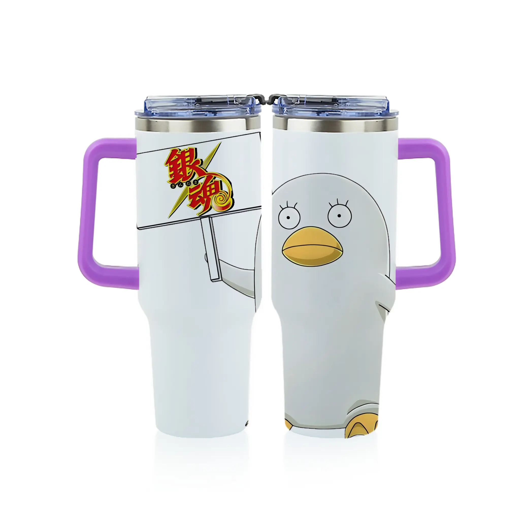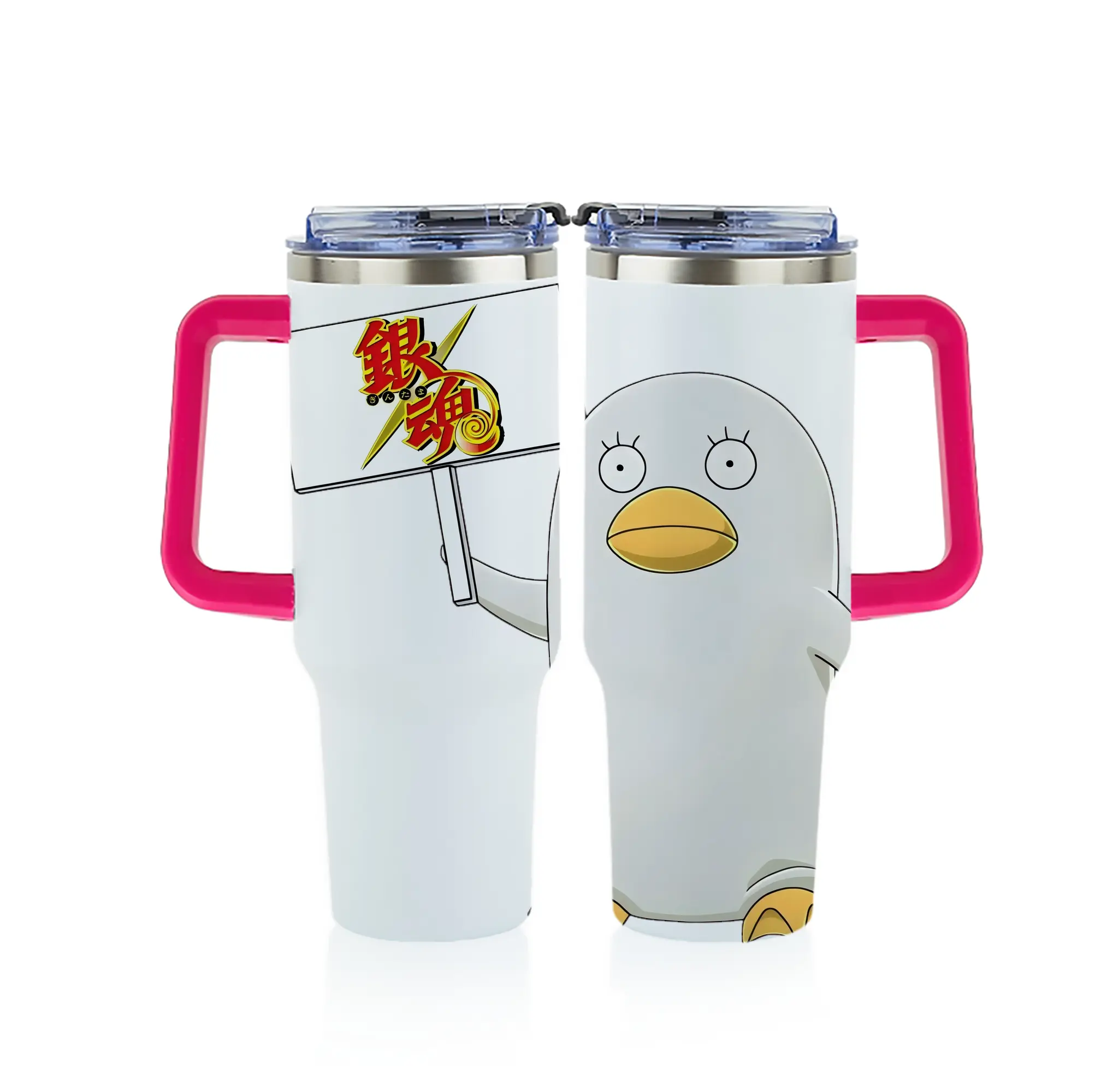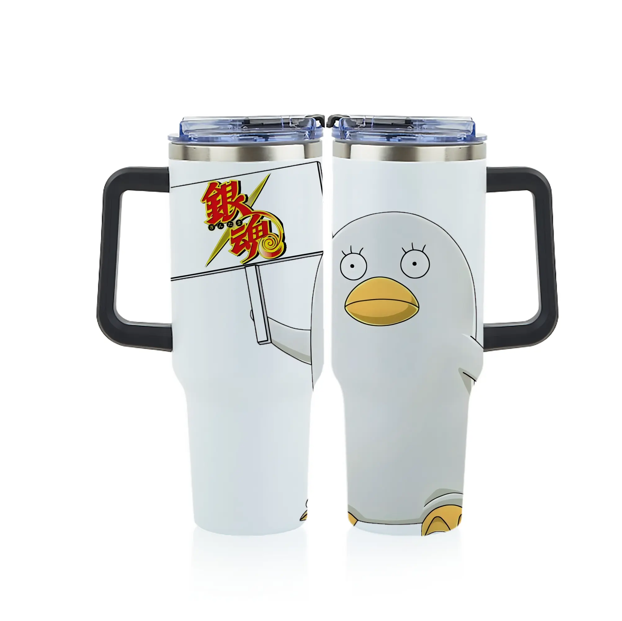 銀魂 グッズ エリザベス - 1200mL フルプリント車用タンブラー ・ 304ステンレス 内側 ・ 201ステンレス 外側 ・ 保温 保冷 ・ 通勤 ドライブ アウトドア用