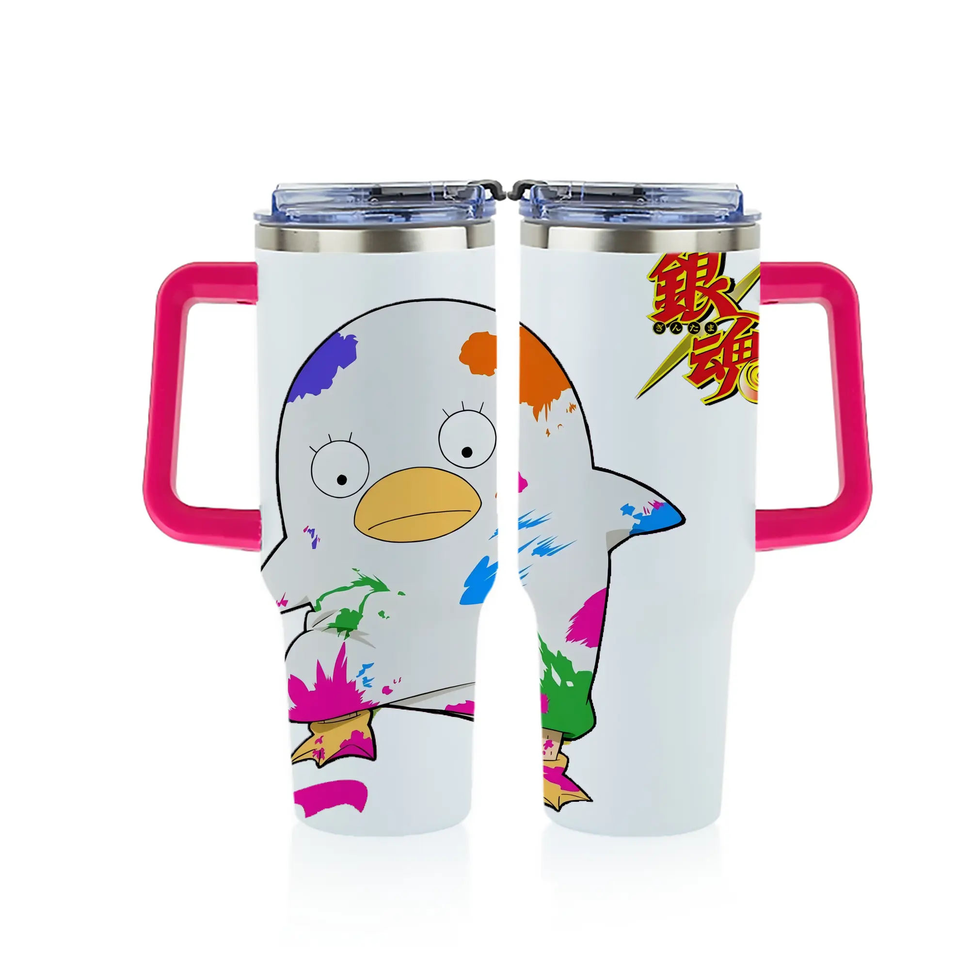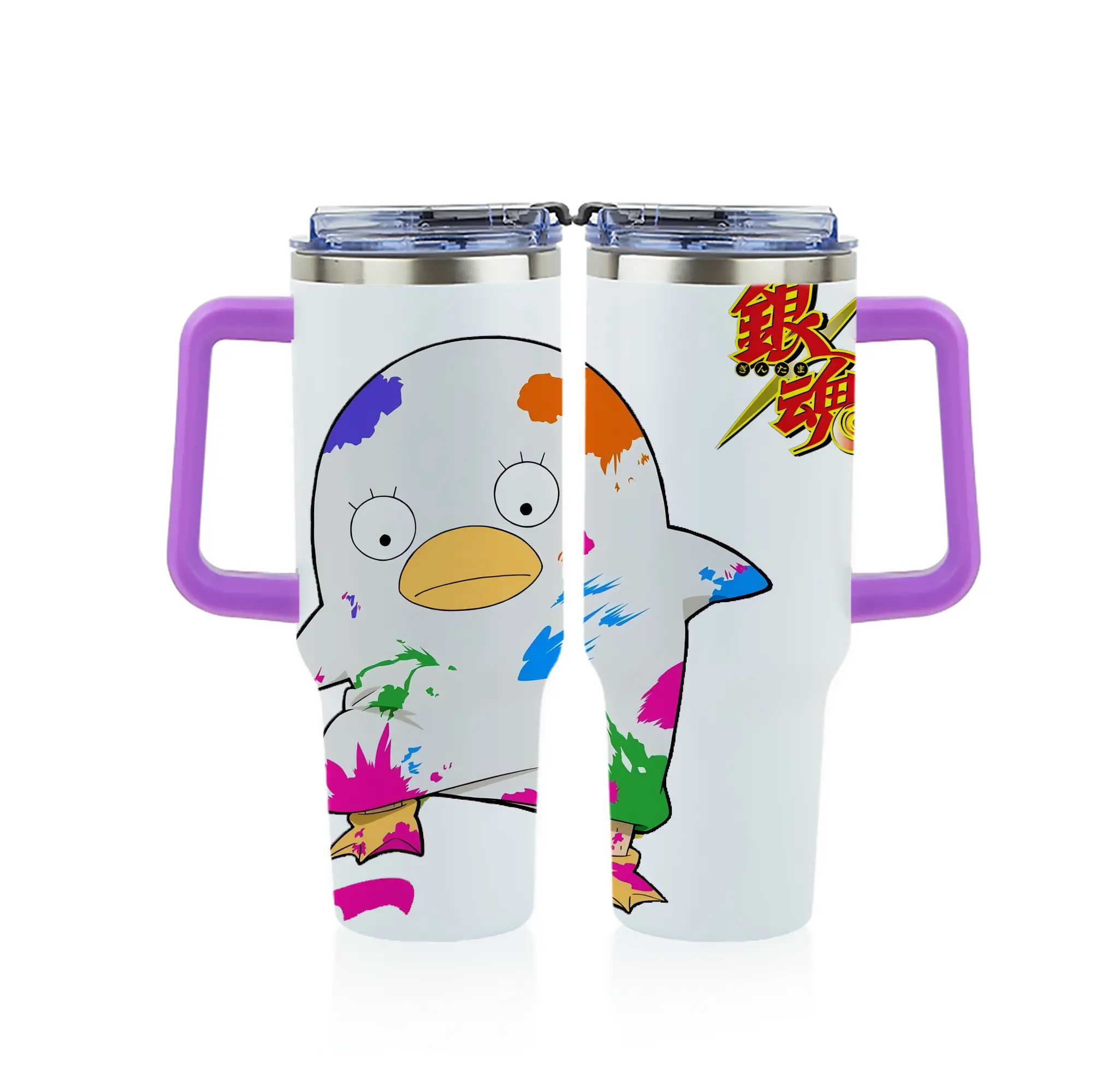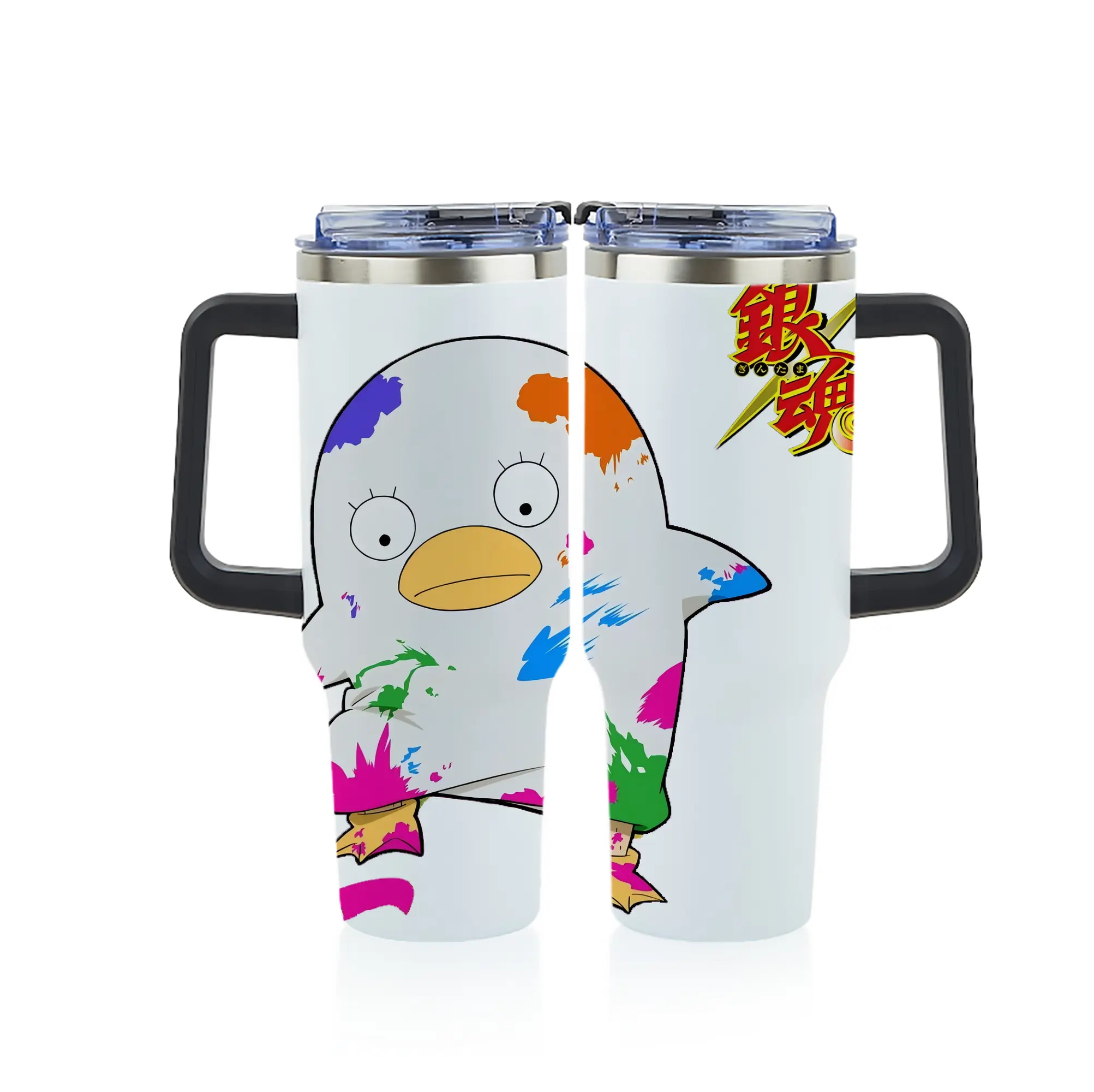 銀魂 グッズ エリザベス - 1200mL フルプリント車用タンブラー ・ 304ステンレス 内側 ・ 201ステンレス 外側 ・ 保温 保冷 ・ 通勤 ドライブ アウトドア用