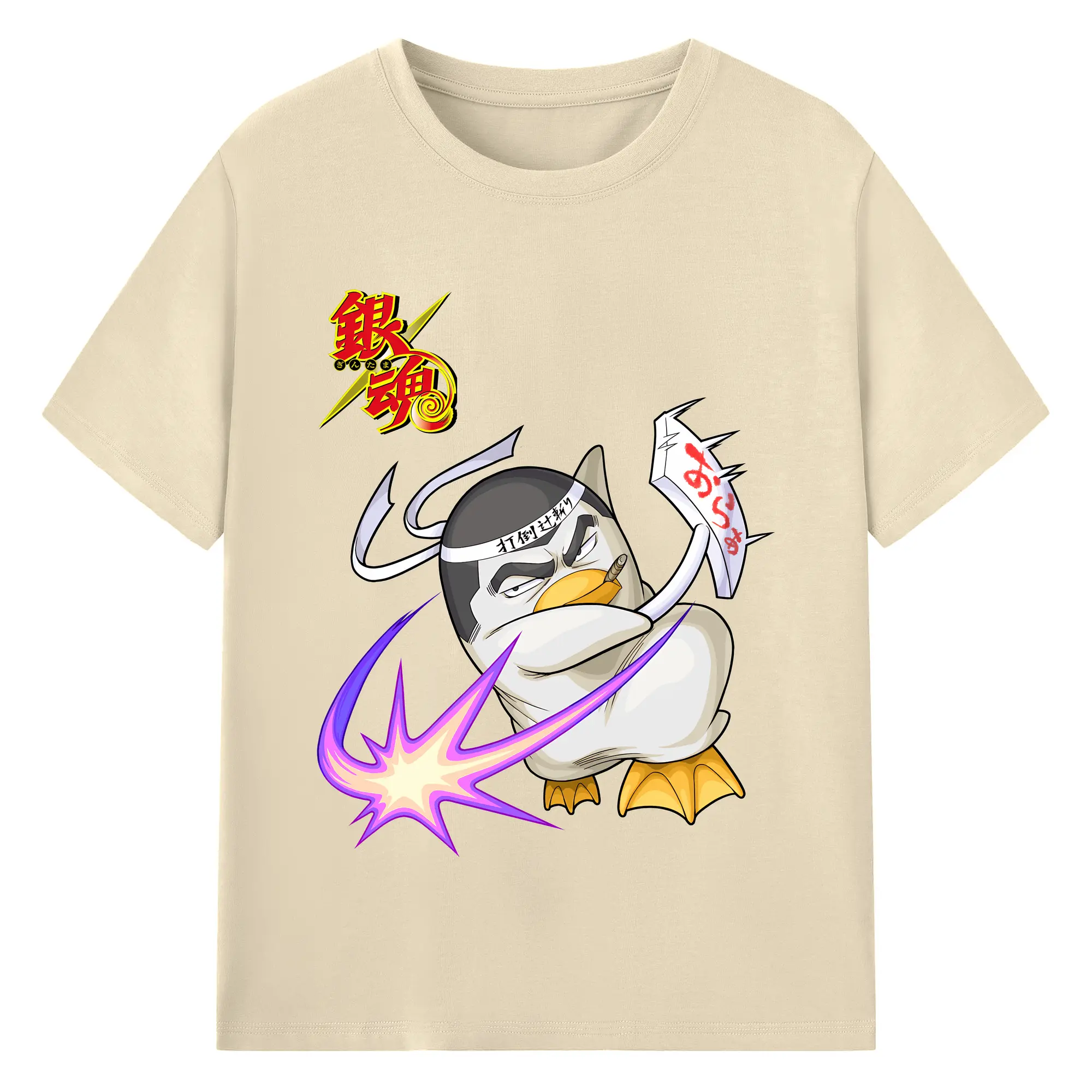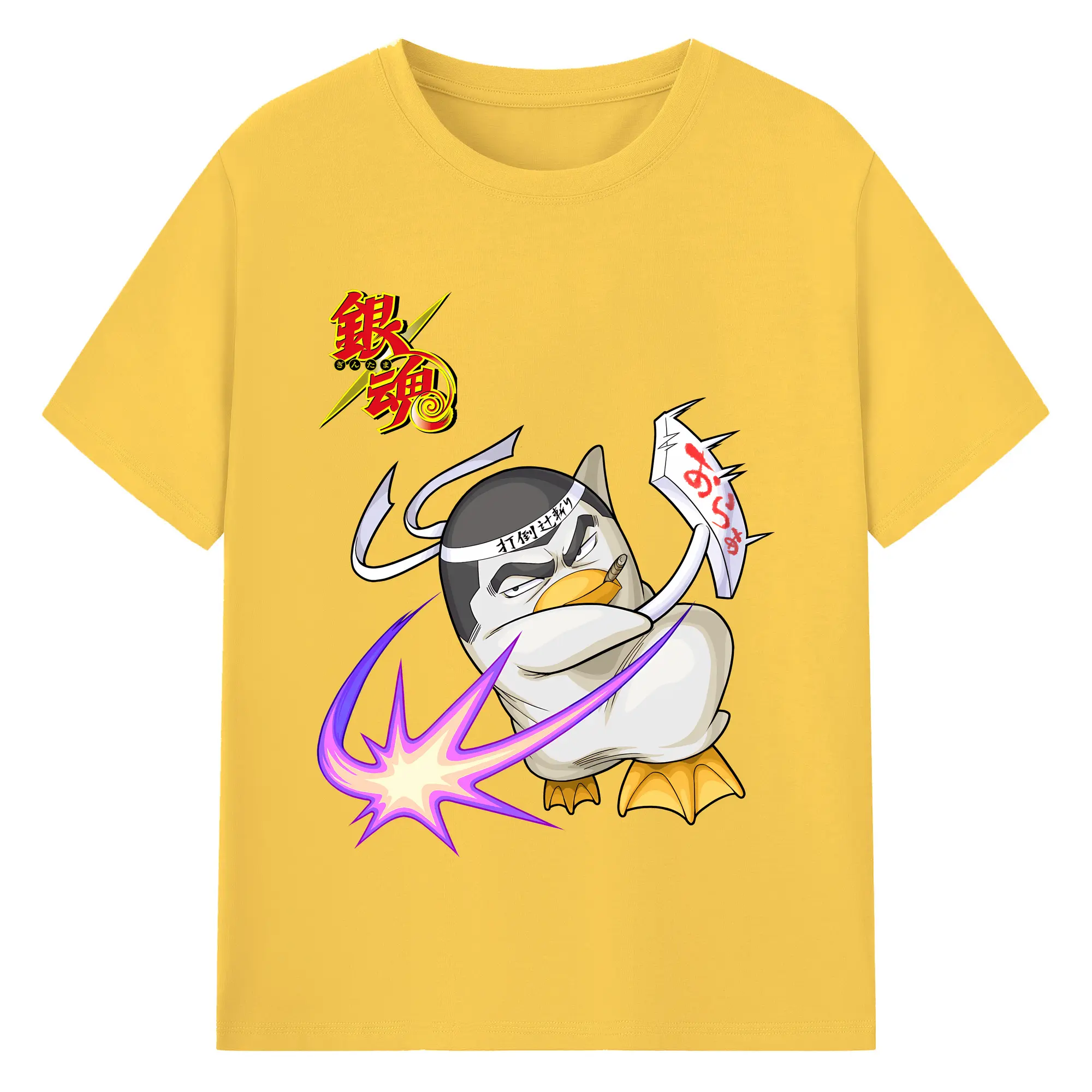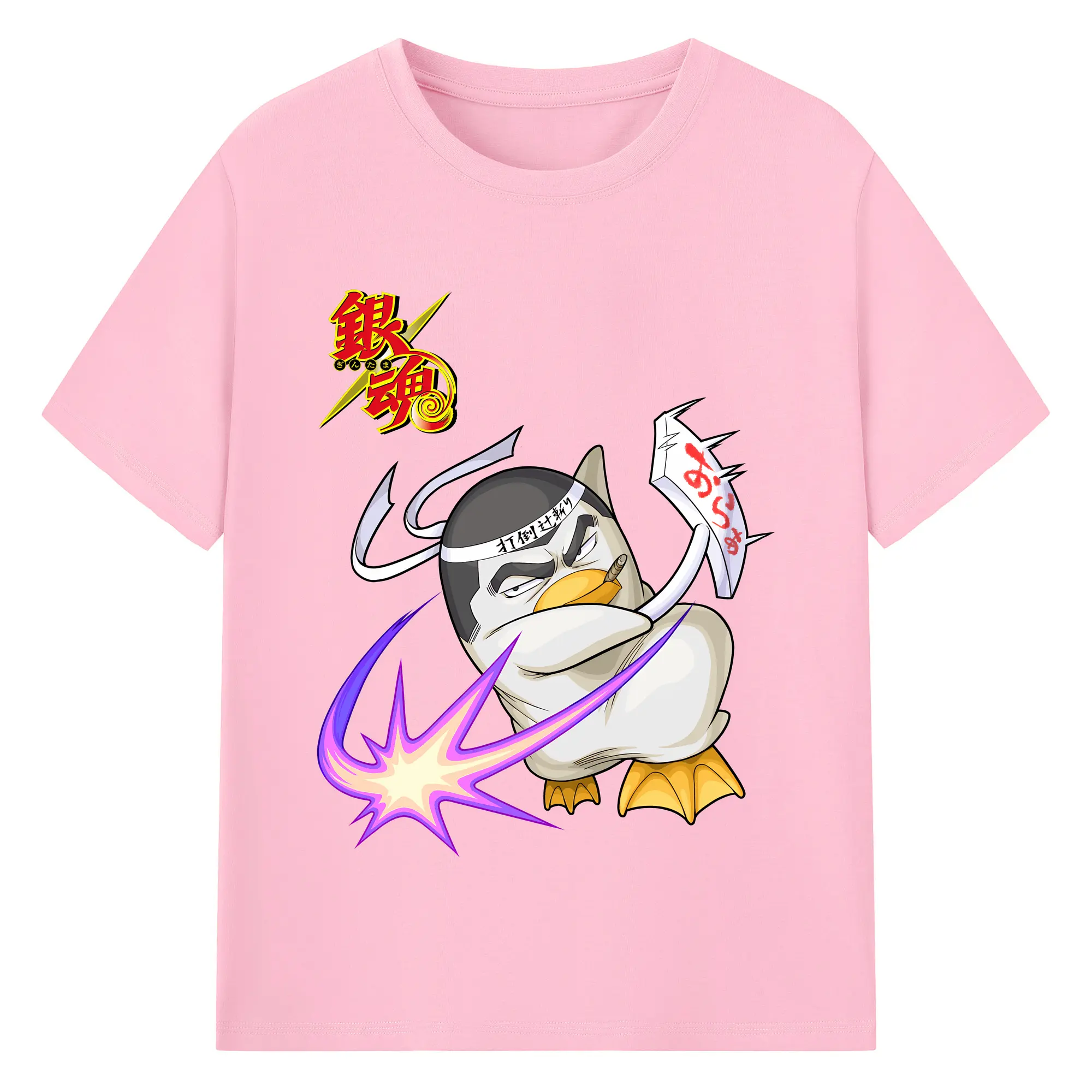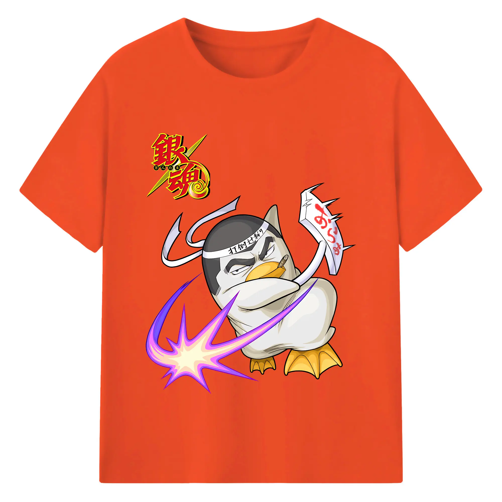 銀魂 グッズ エリザベス - 綿100% ヴィンテージ風 半袖Tシャツ ・ フロントプリント ・ 柔らか肌触り ・ 通気性 快適 ・ スポーツ カジュアル 外出用