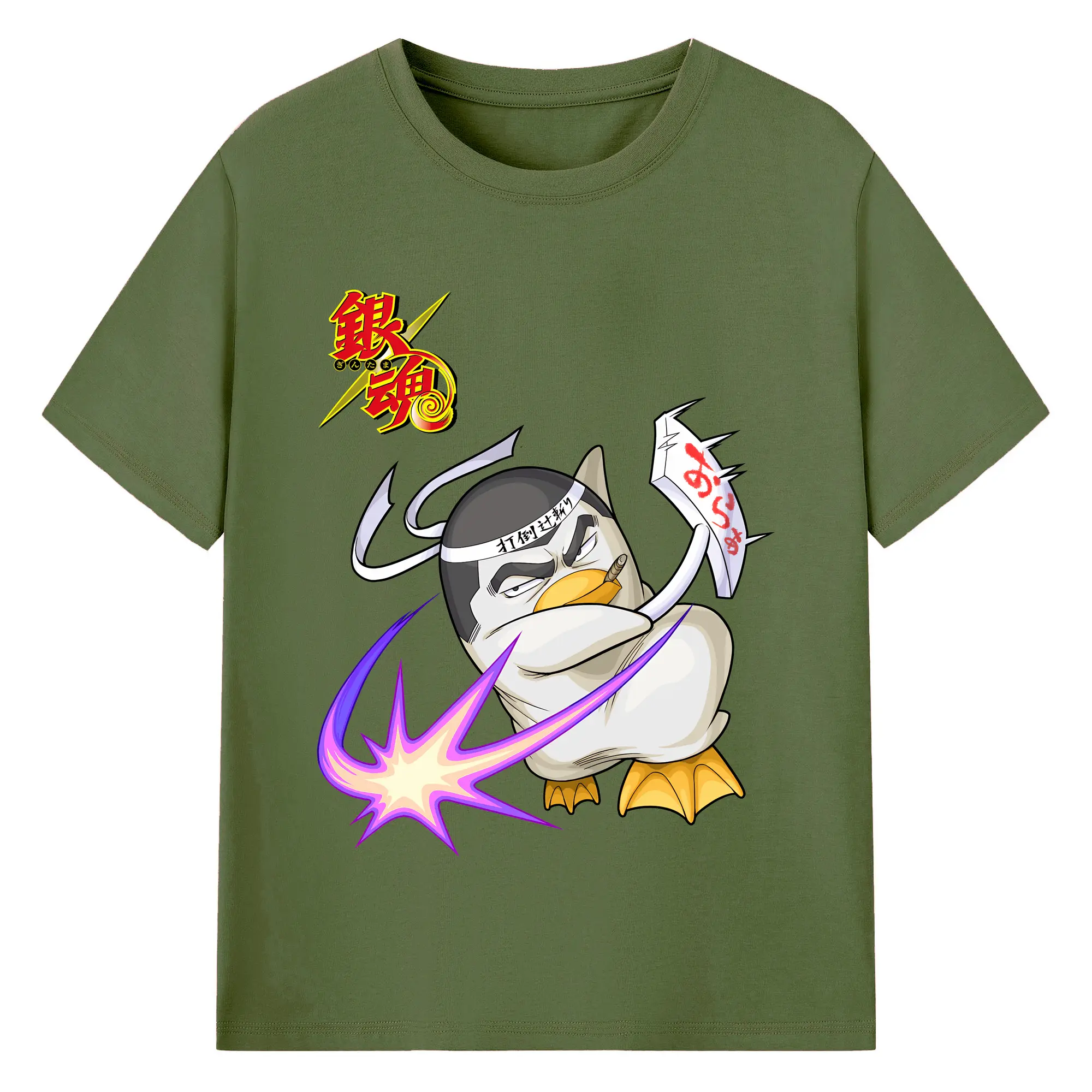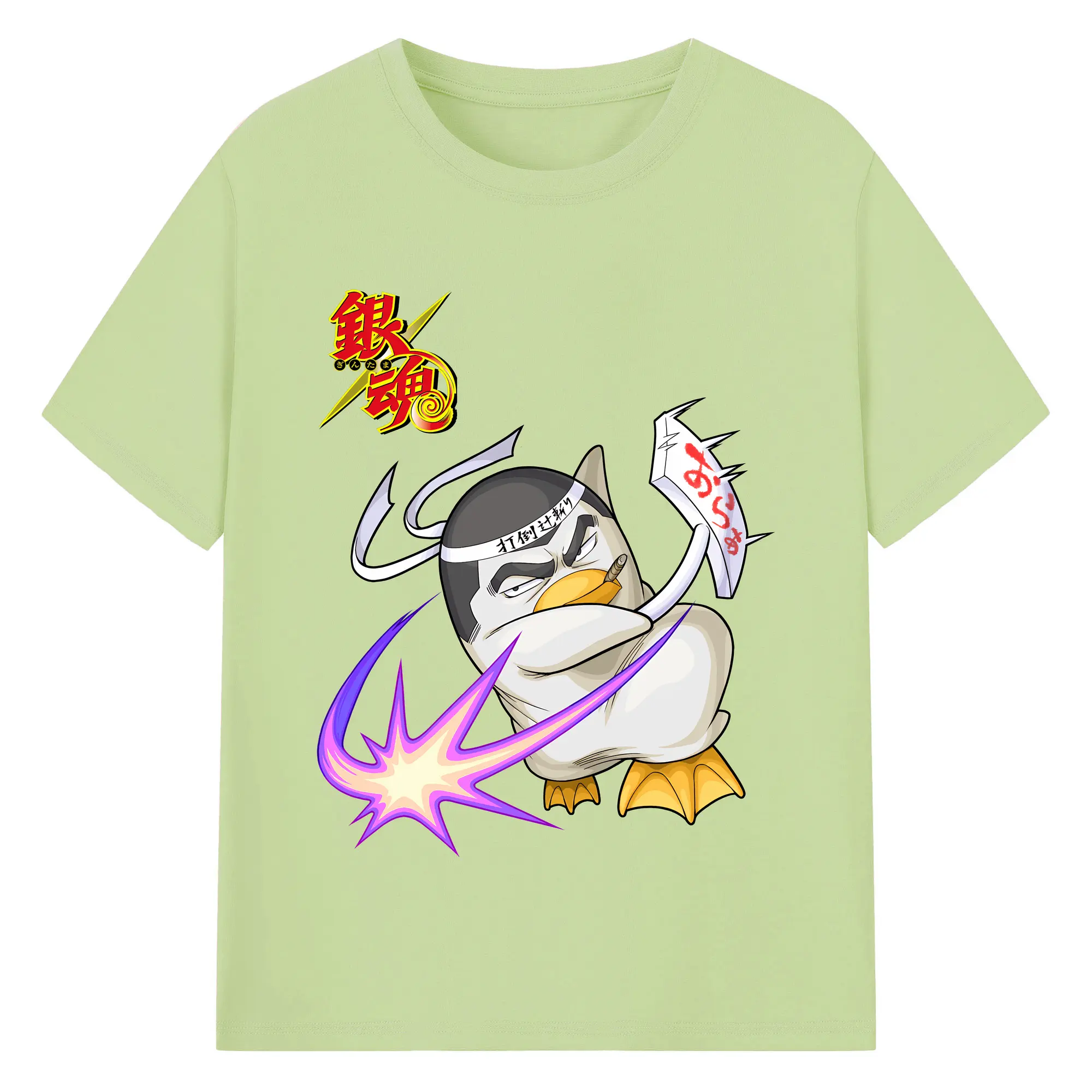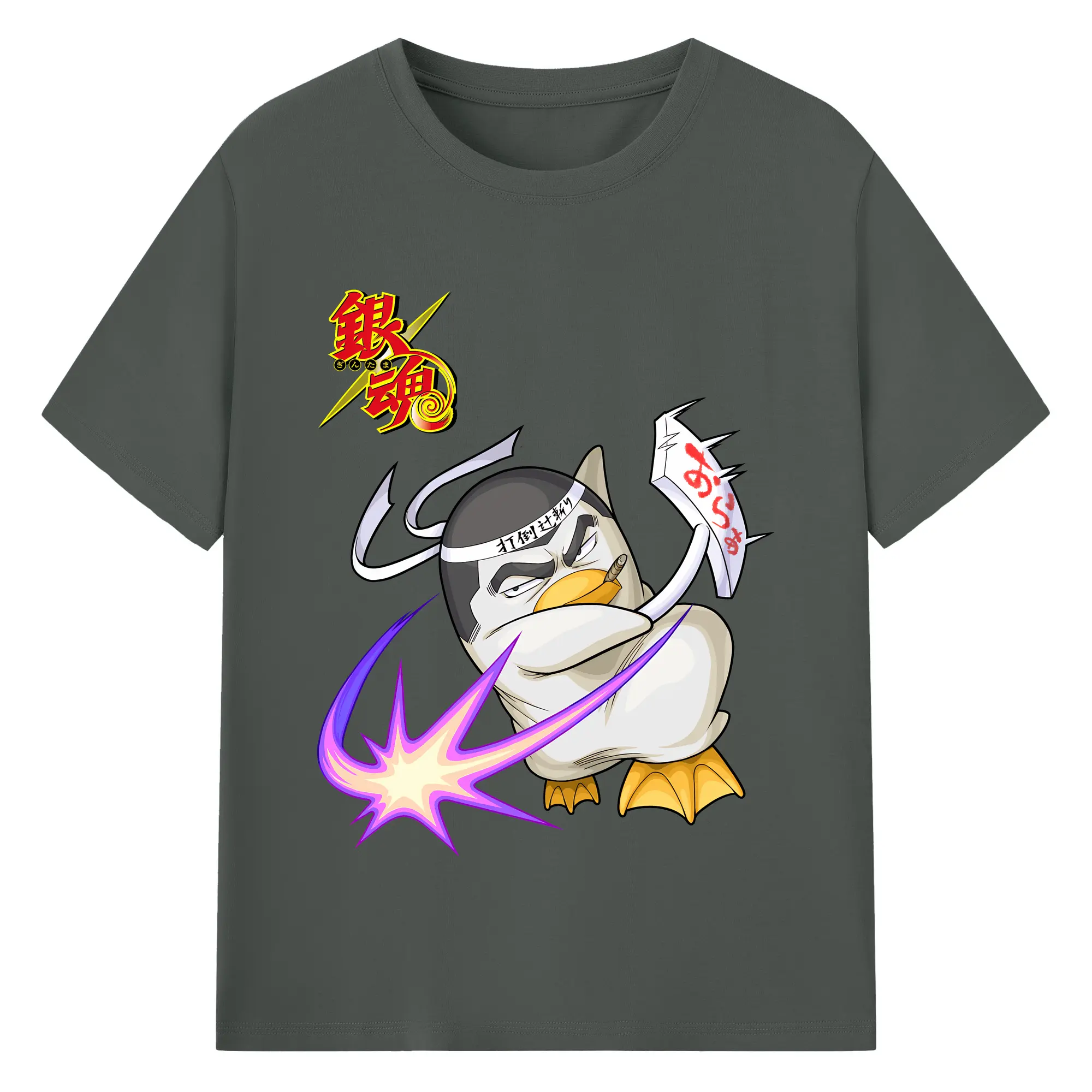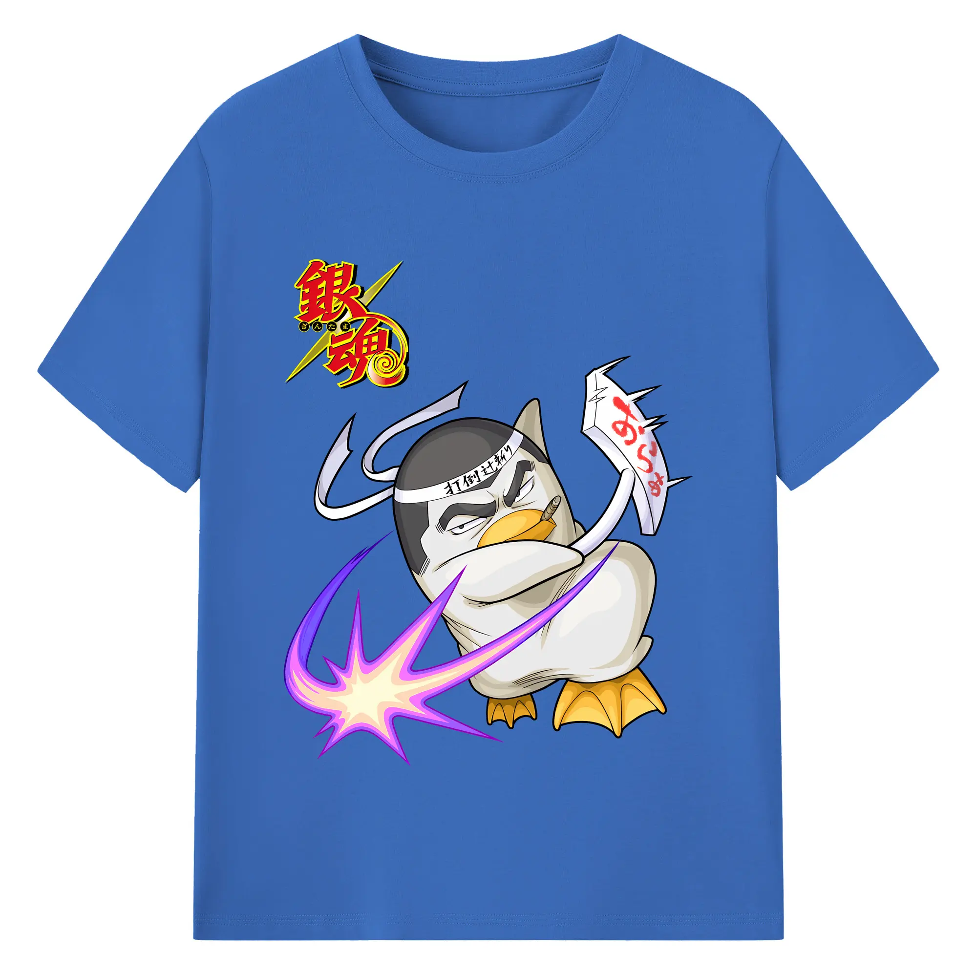 銀魂 グッズ エリザベス - 綿100% ヴィンテージ風 半袖Tシャツ ・ フロントプリント ・ 柔らか肌触り ・ 通気性 快適 ・ スポーツ カジュアル 外出用