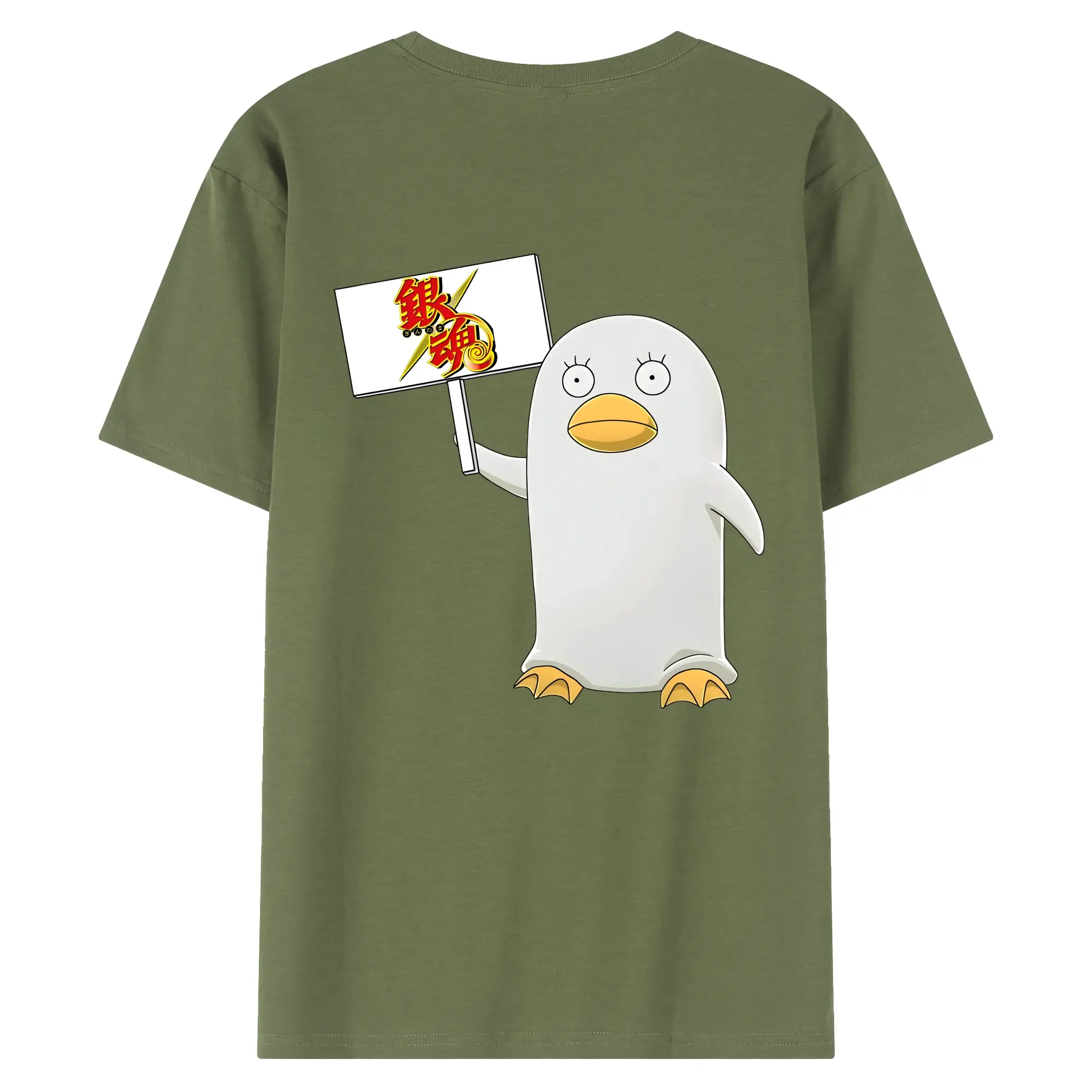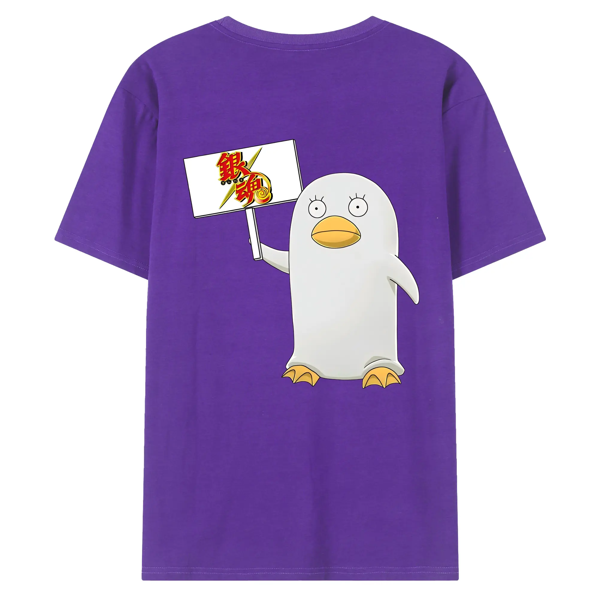 銀魂 グッズ エリザベス - 綿100% ヴィンテージ風 半袖Tシャツ ・ 背面プリント ・ 柔らか肌触り ・ 通気性 快適 ・ スポーツ カジュアル 外出用