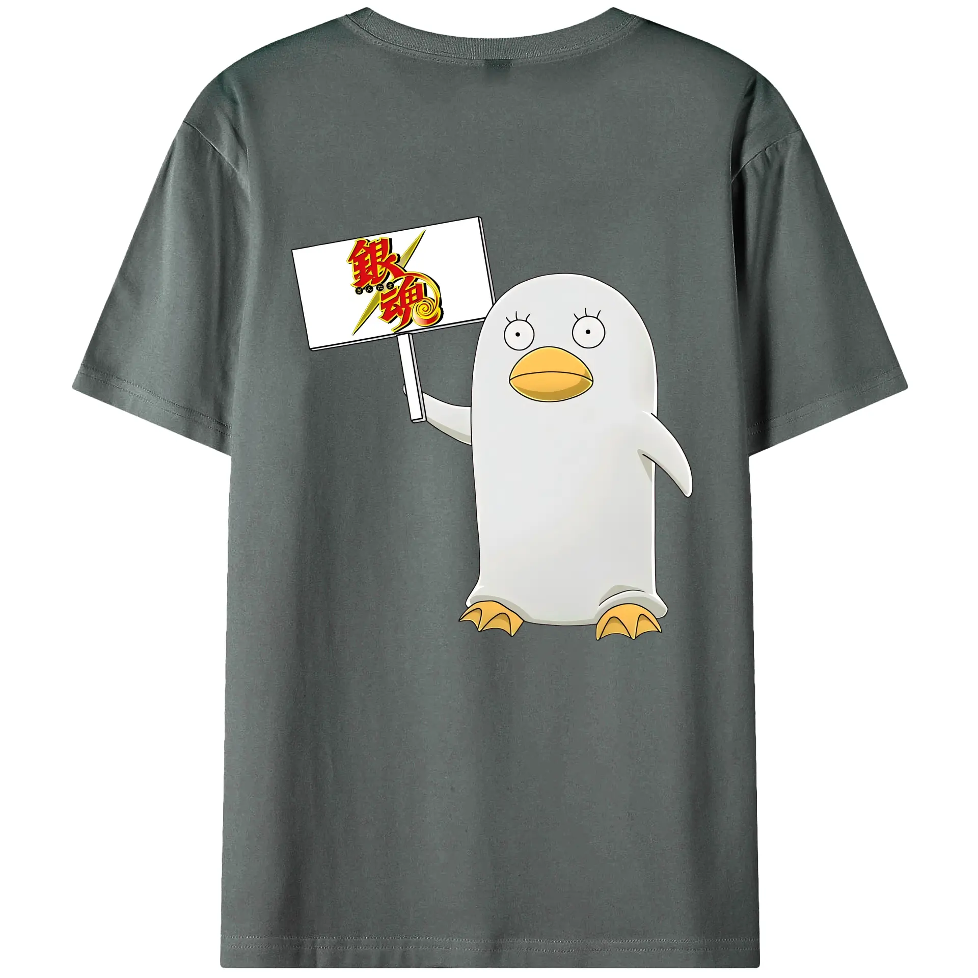 銀魂 グッズ エリザベス - 綿100% ヴィンテージ風 半袖Tシャツ ・ フロントプリント ・ 柔らか肌触り ・ 通気性 快適 ・ スポーツ カジュアル 外出用