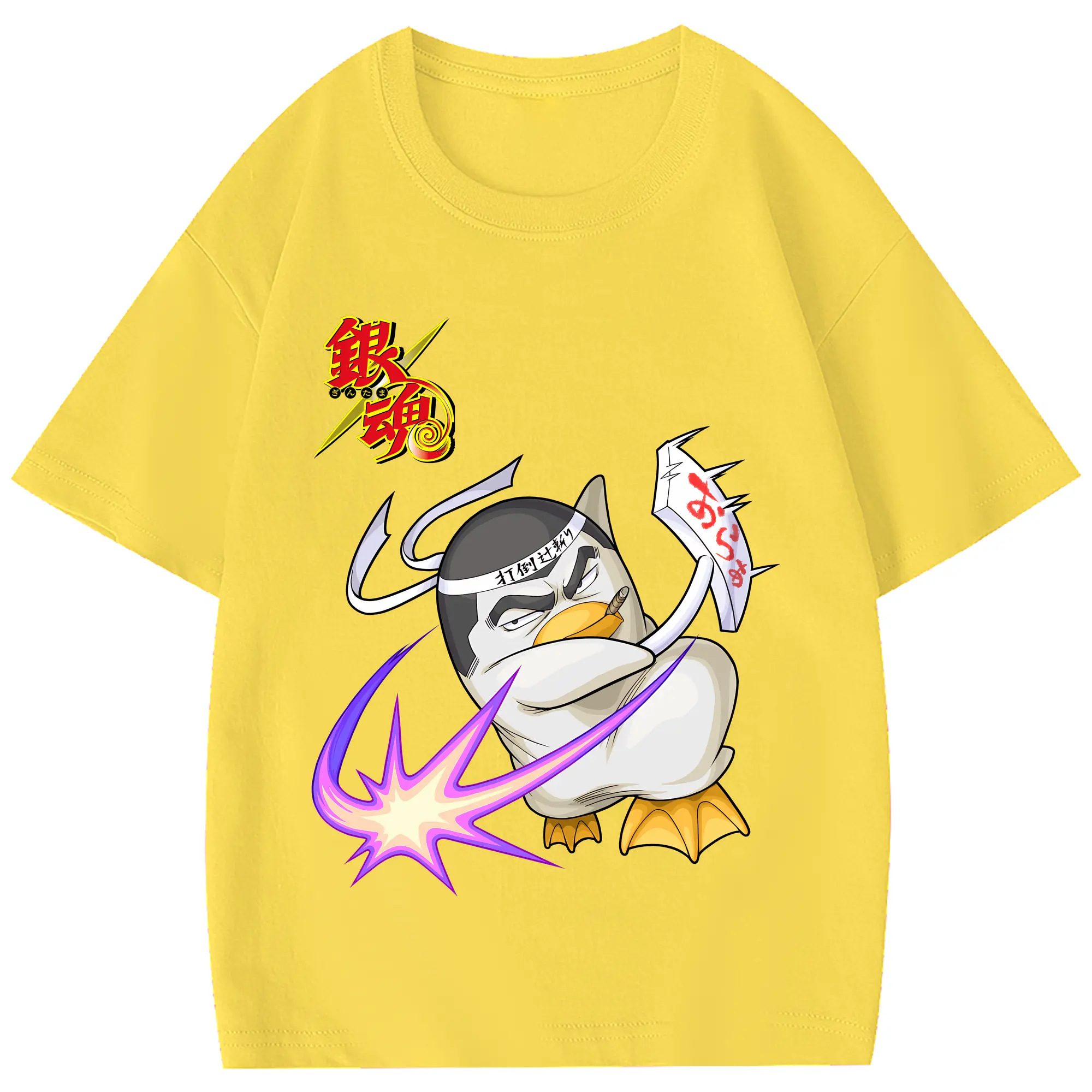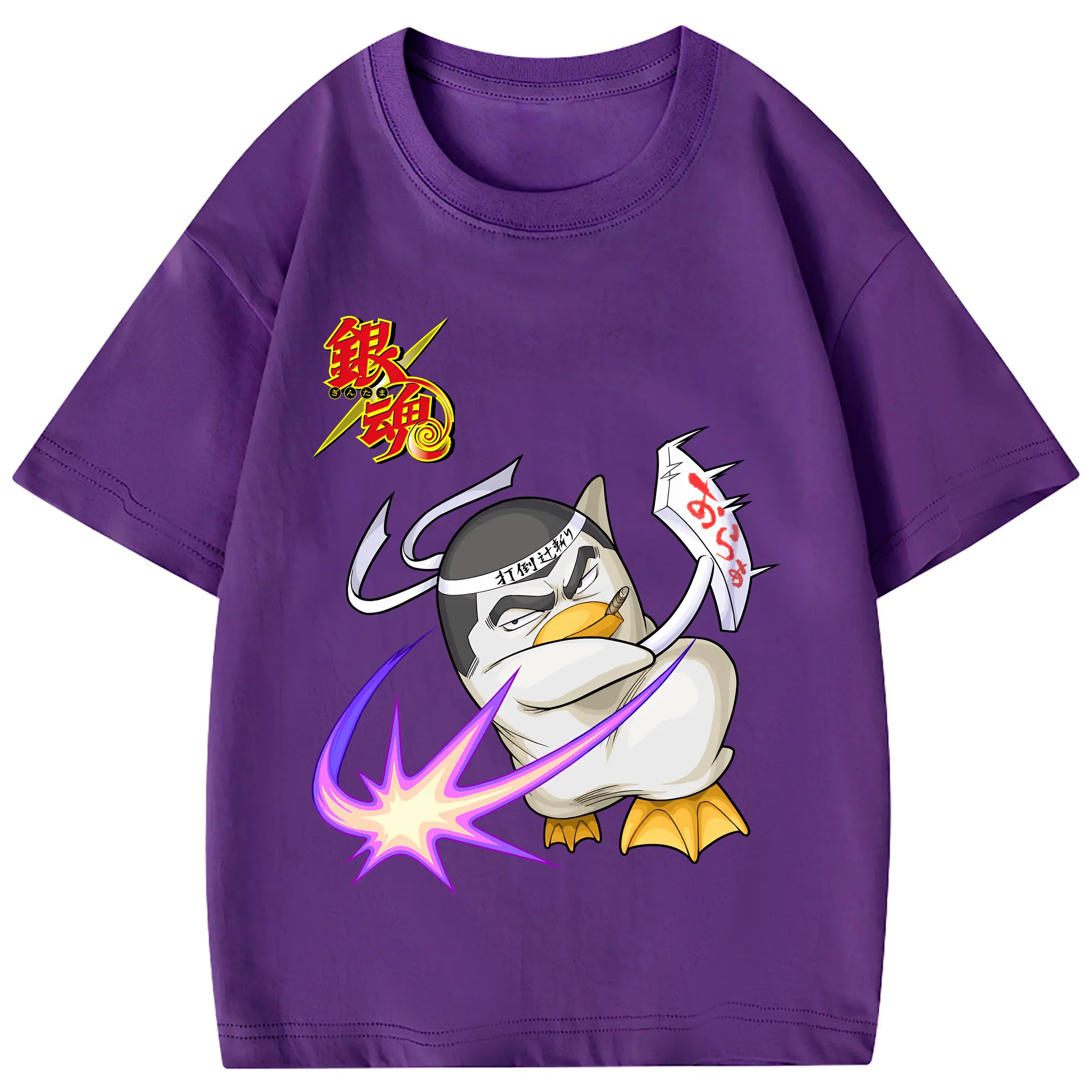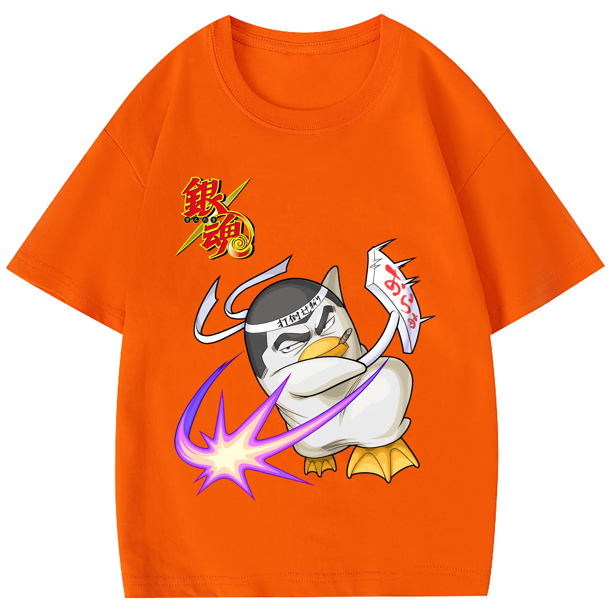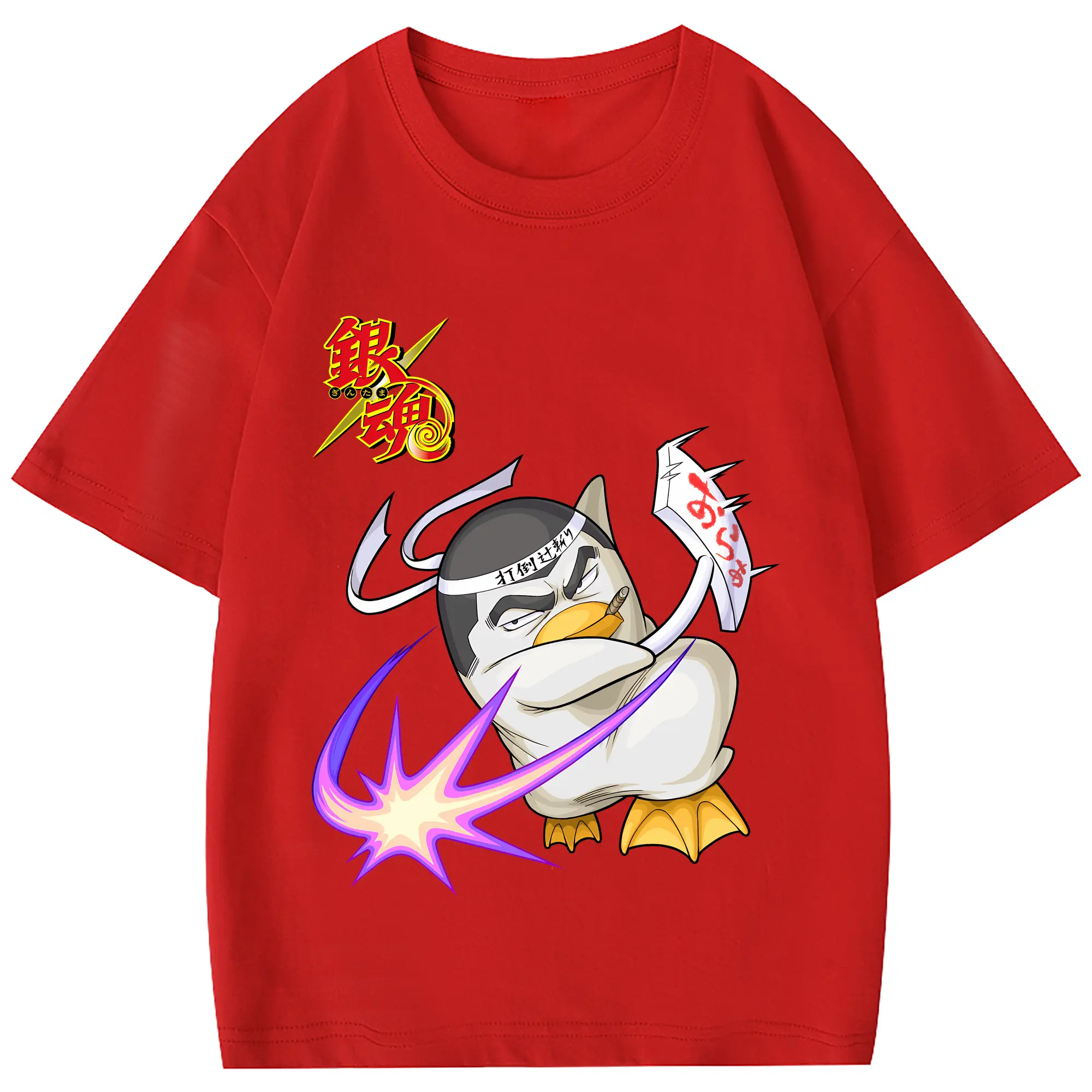 銀魂 グッズ エリザベス - 綿100% ヴィンテージ風 半袖Tシャツ ・ フロントプリント ・ 柔らか肌触り ・ 通気性 快適 ・ スポーツ カジュアル 外出用
