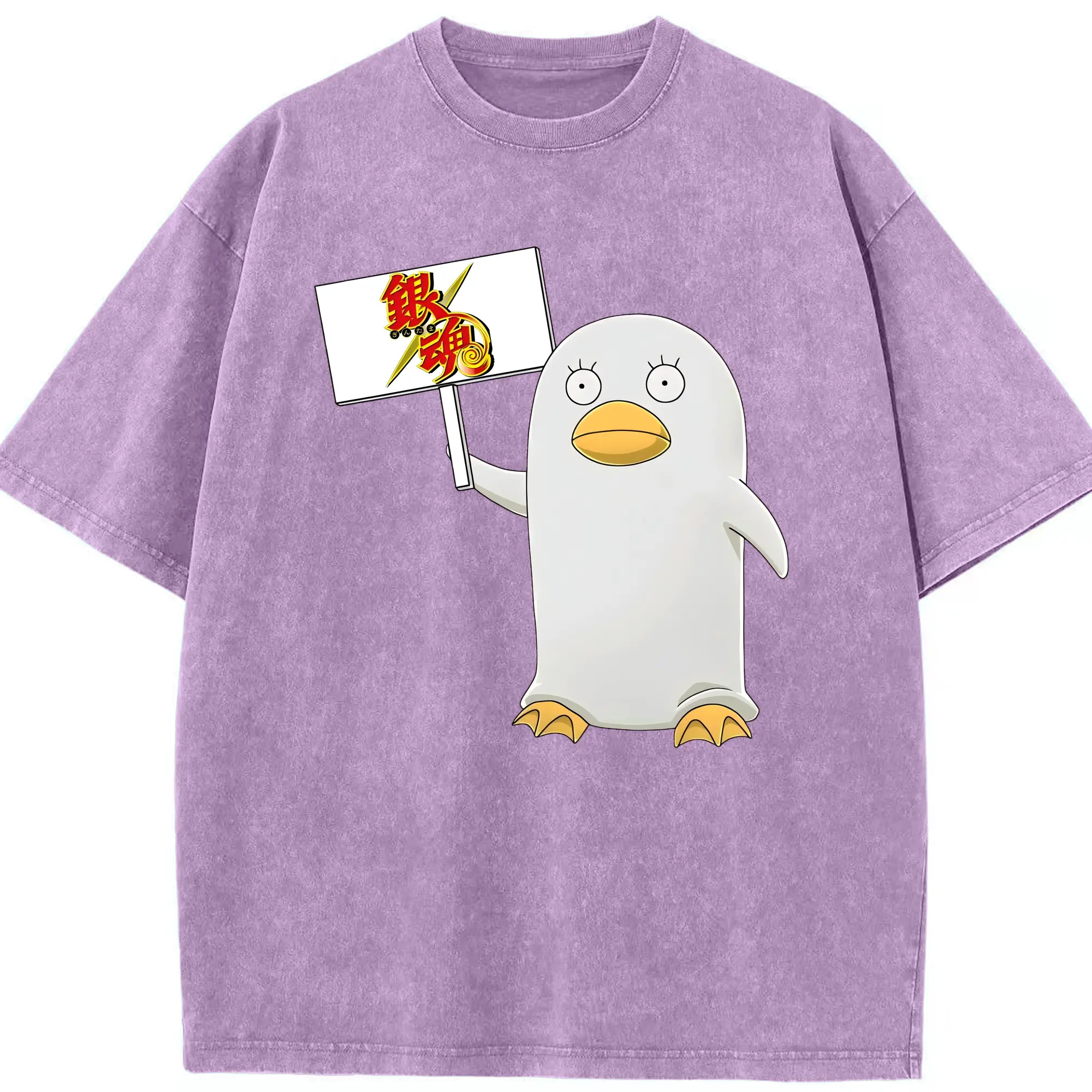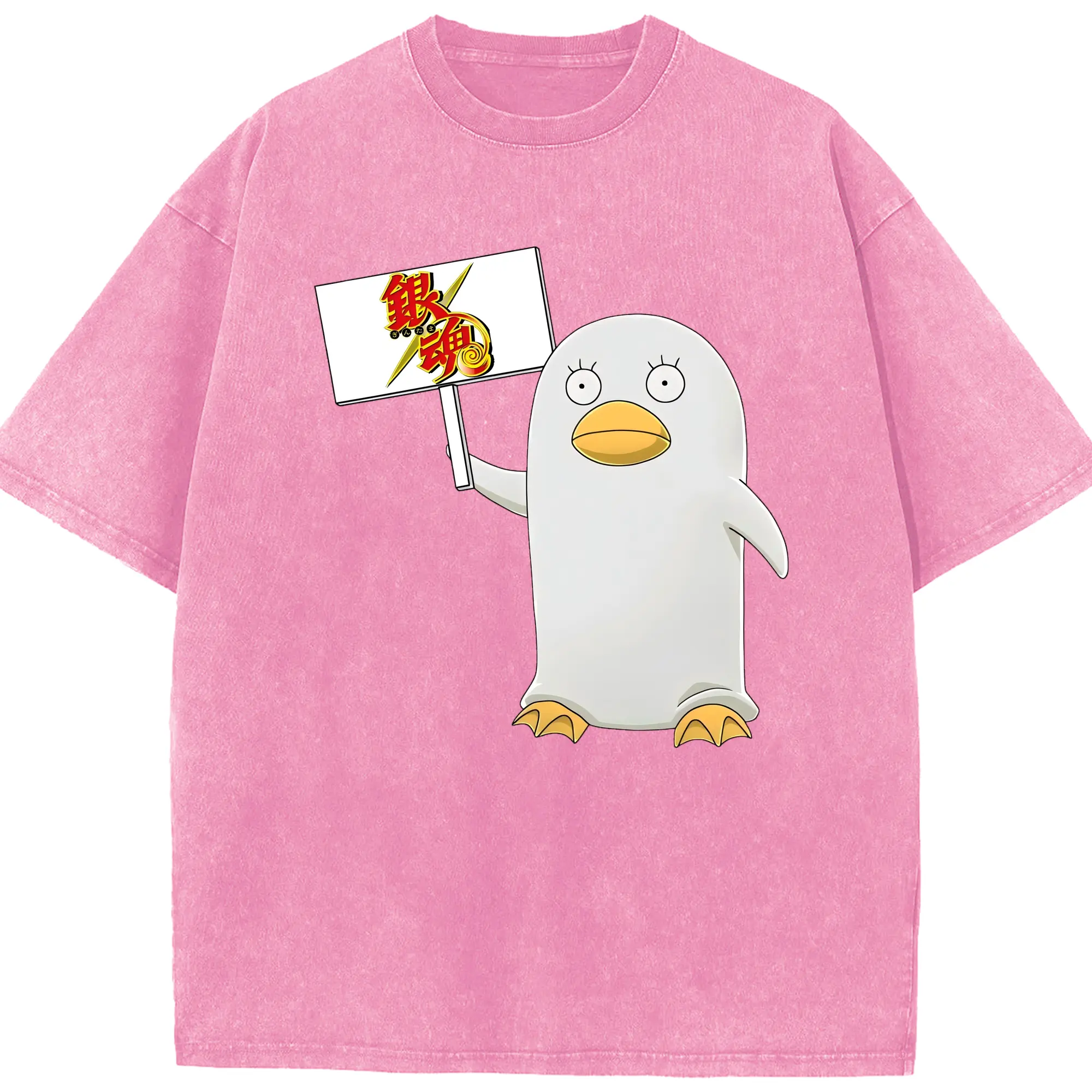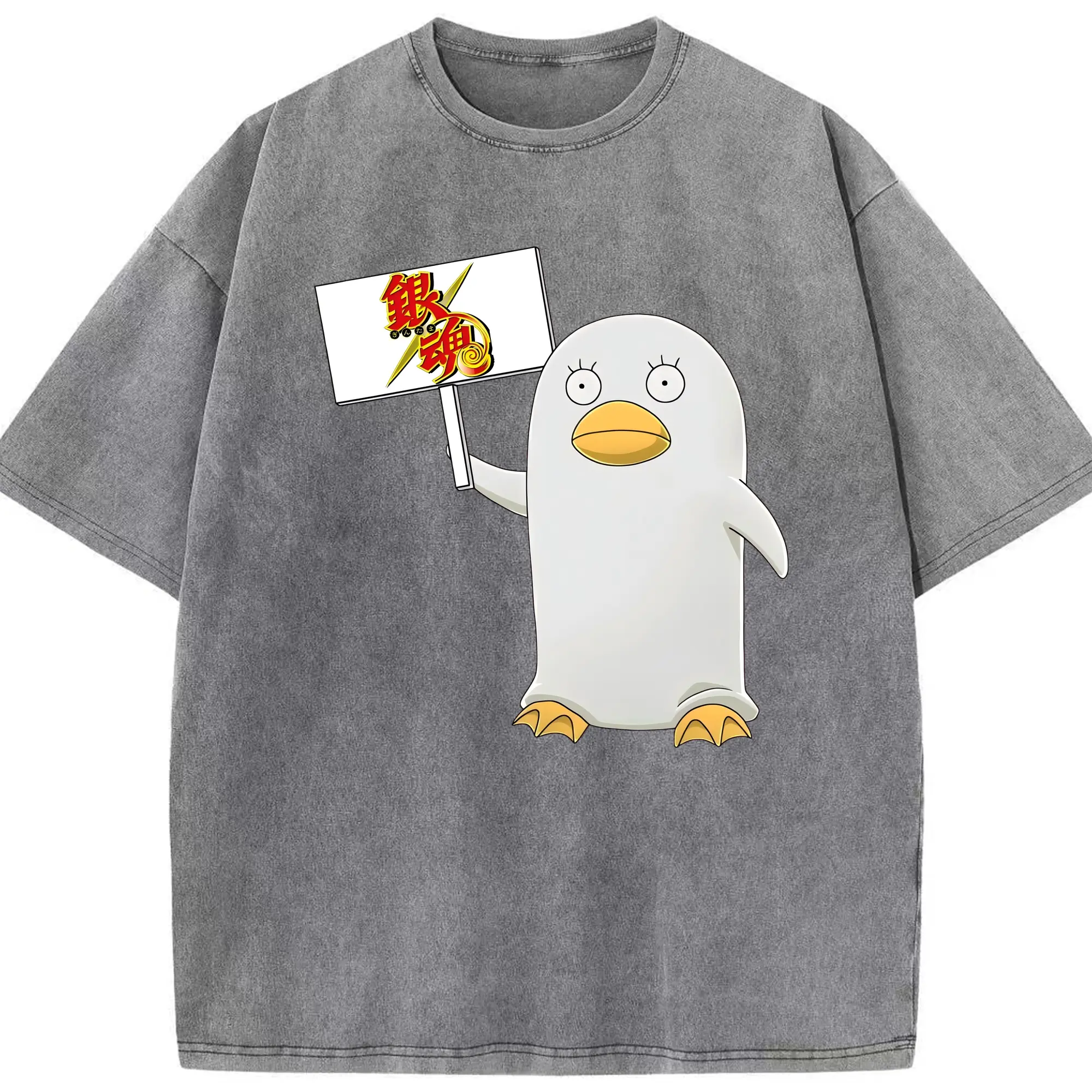 銀魂 グッズ エリザベス - 綿100% ヴィンテージ風 半袖Tシャツ ・ 背面プリント ・ 柔らか肌触り ・ 通気性 快適 ・ スポーツ カジュアル 外出用