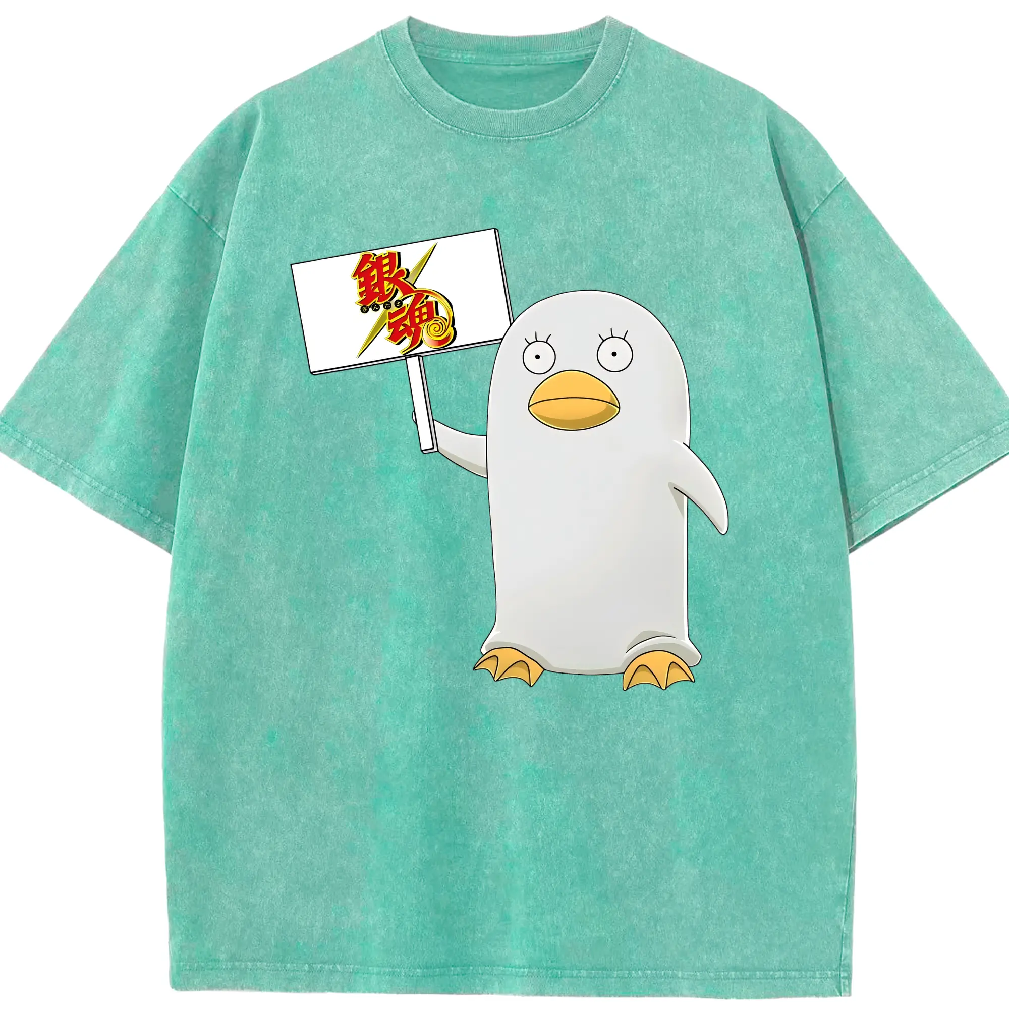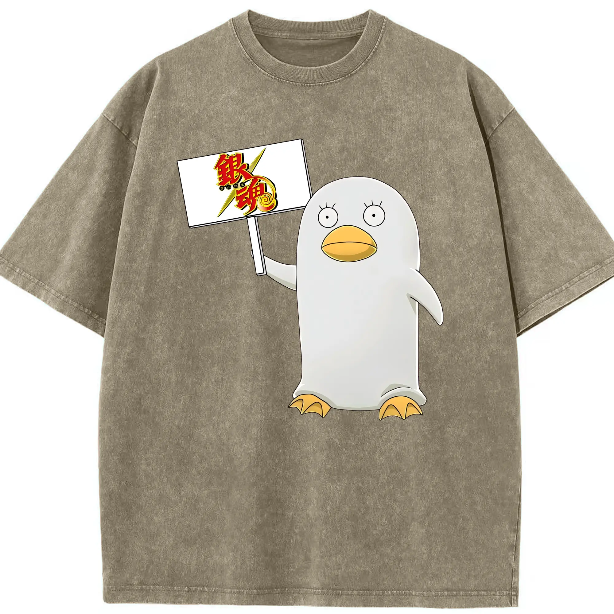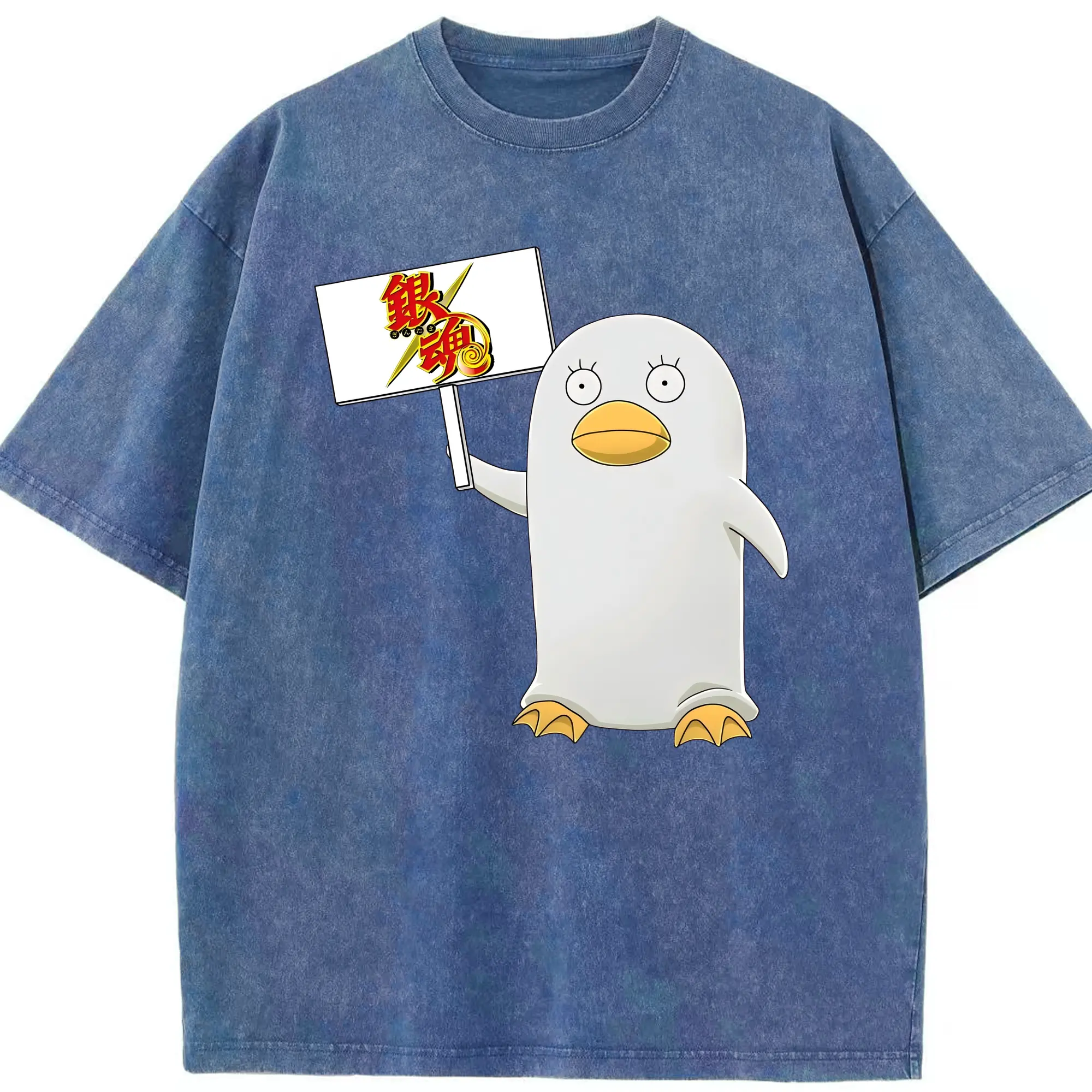 銀魂 グッズ エリザベス - 綿100% ヴィンテージ風 半袖Tシャツ ・ 背面プリント ・ 柔らか肌触り ・ 通気性 快適 ・ スポーツ カジュアル 外出用
