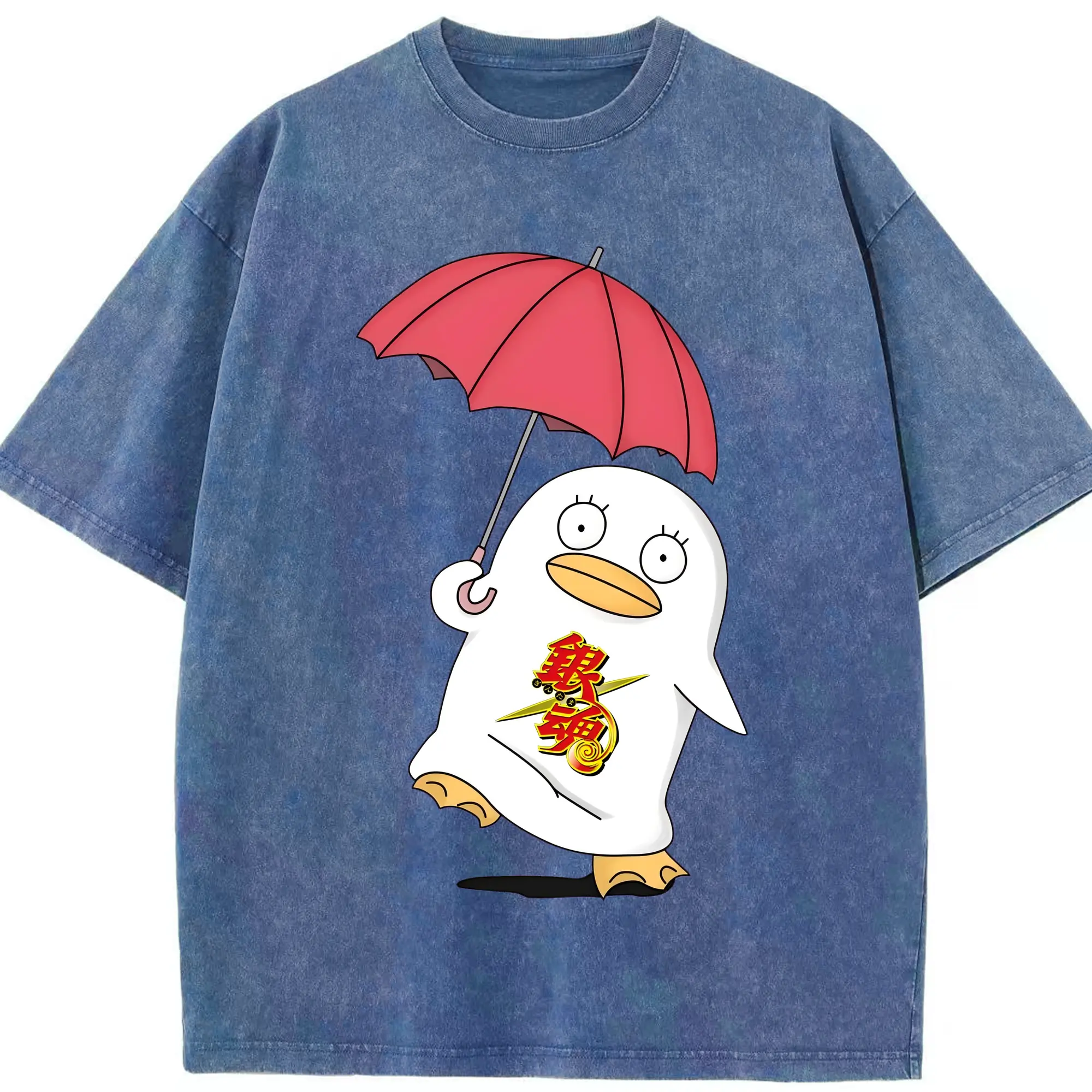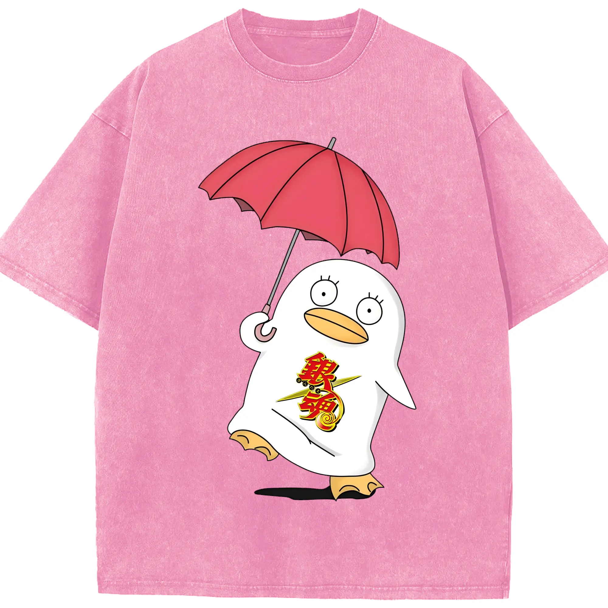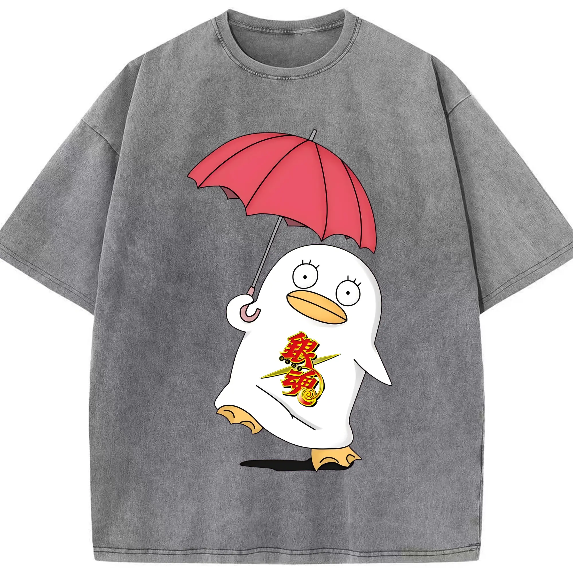 銀魂 グッズ エリザベス - 綿100% ヴィンテージ風 半袖Tシャツ ・ 背面プリント ・ 柔らか肌触り ・ 通気性 快適 ・ スポーツ カジュアル 外出用