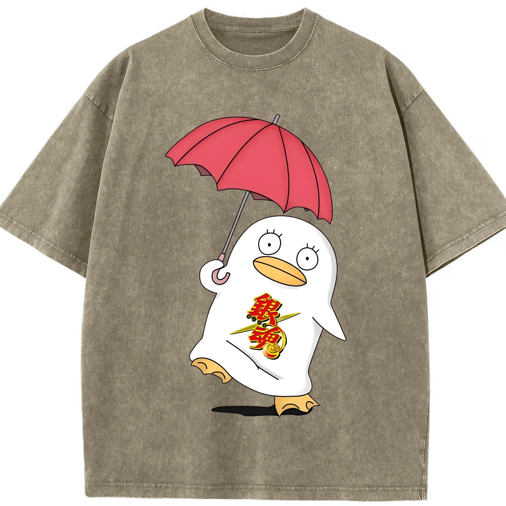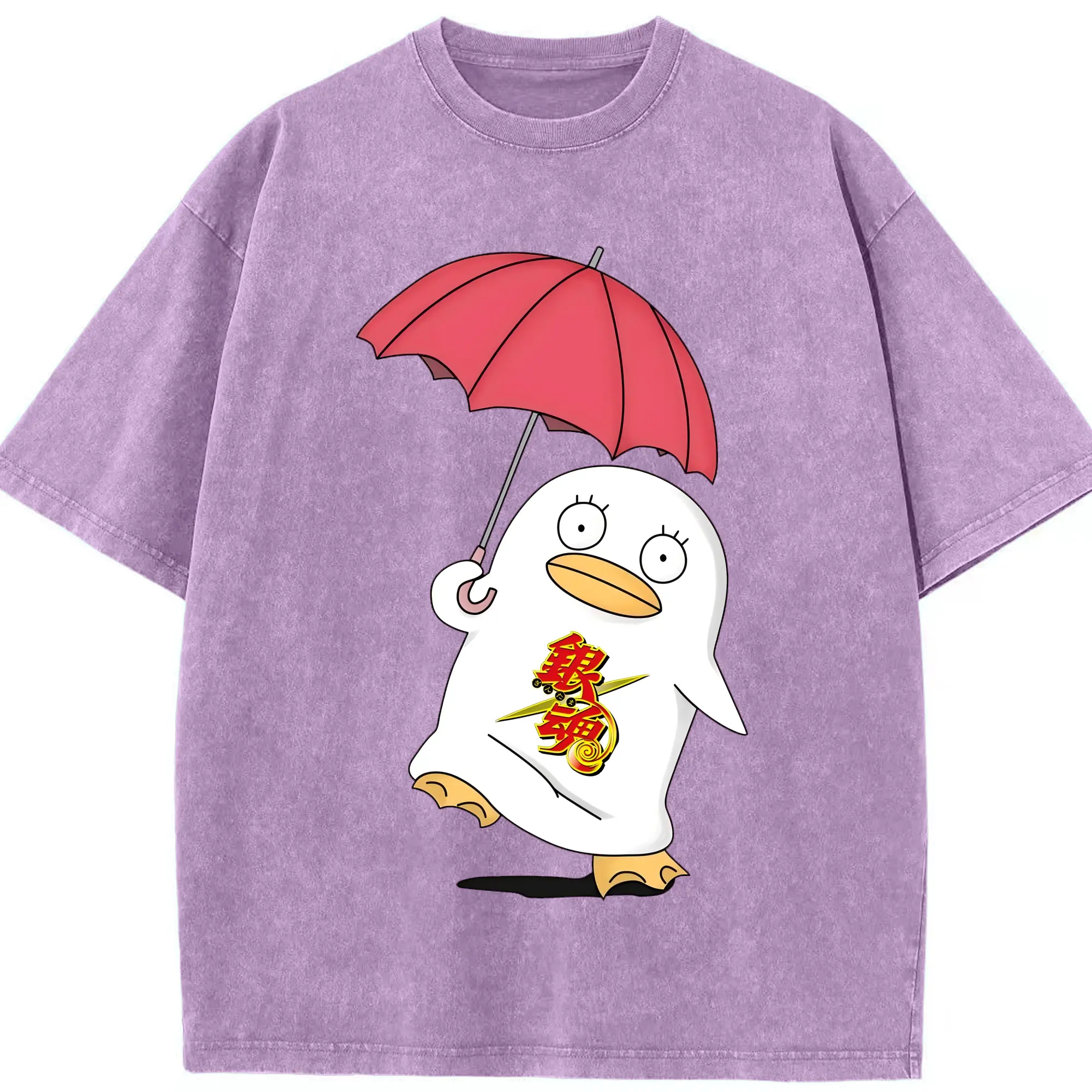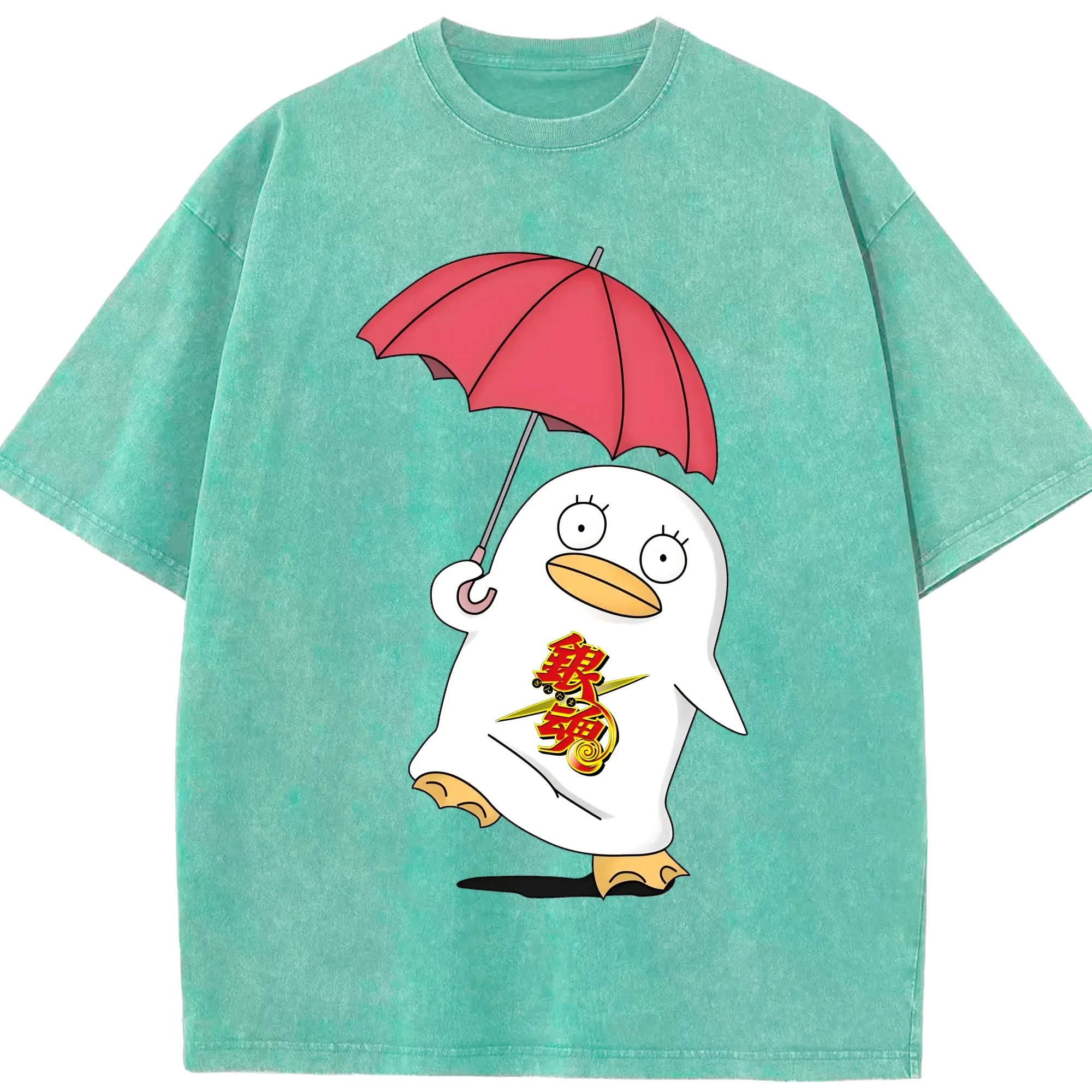 銀魂 グッズ エリザベス - 綿100% ヴィンテージ風 半袖Tシャツ ・ 背面プリント ・ 柔らか肌触り ・ 通気性 快適 ・ スポーツ カジュアル 外出用