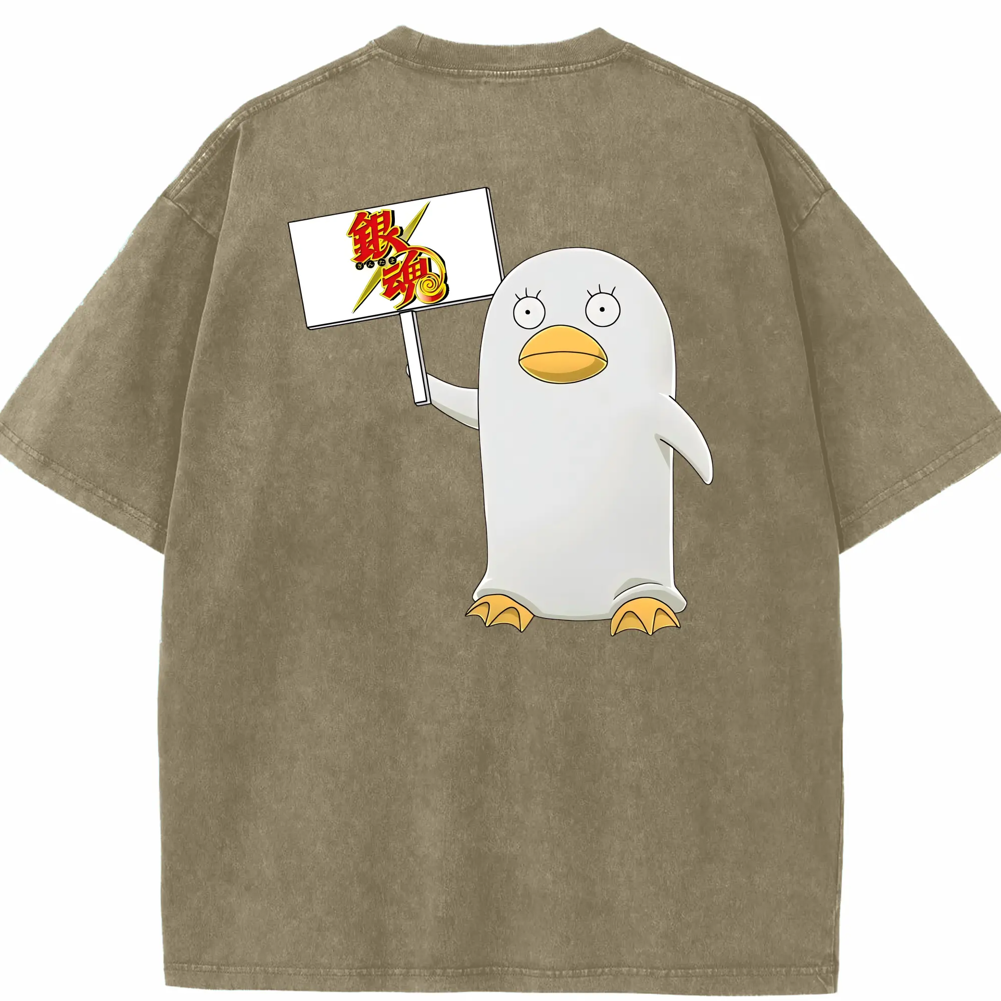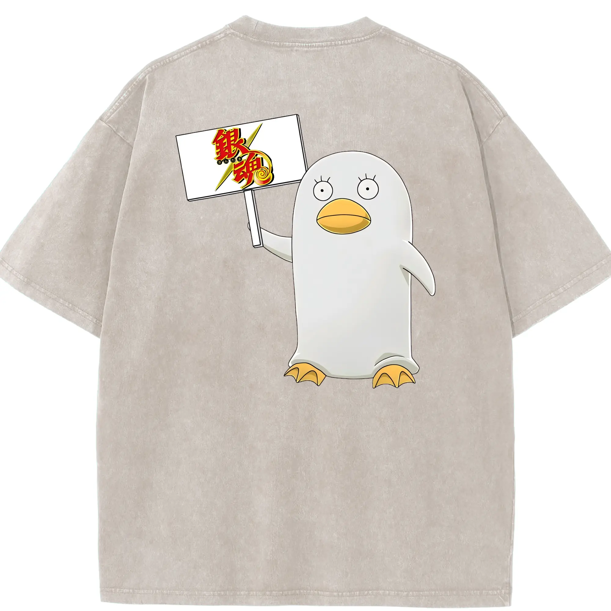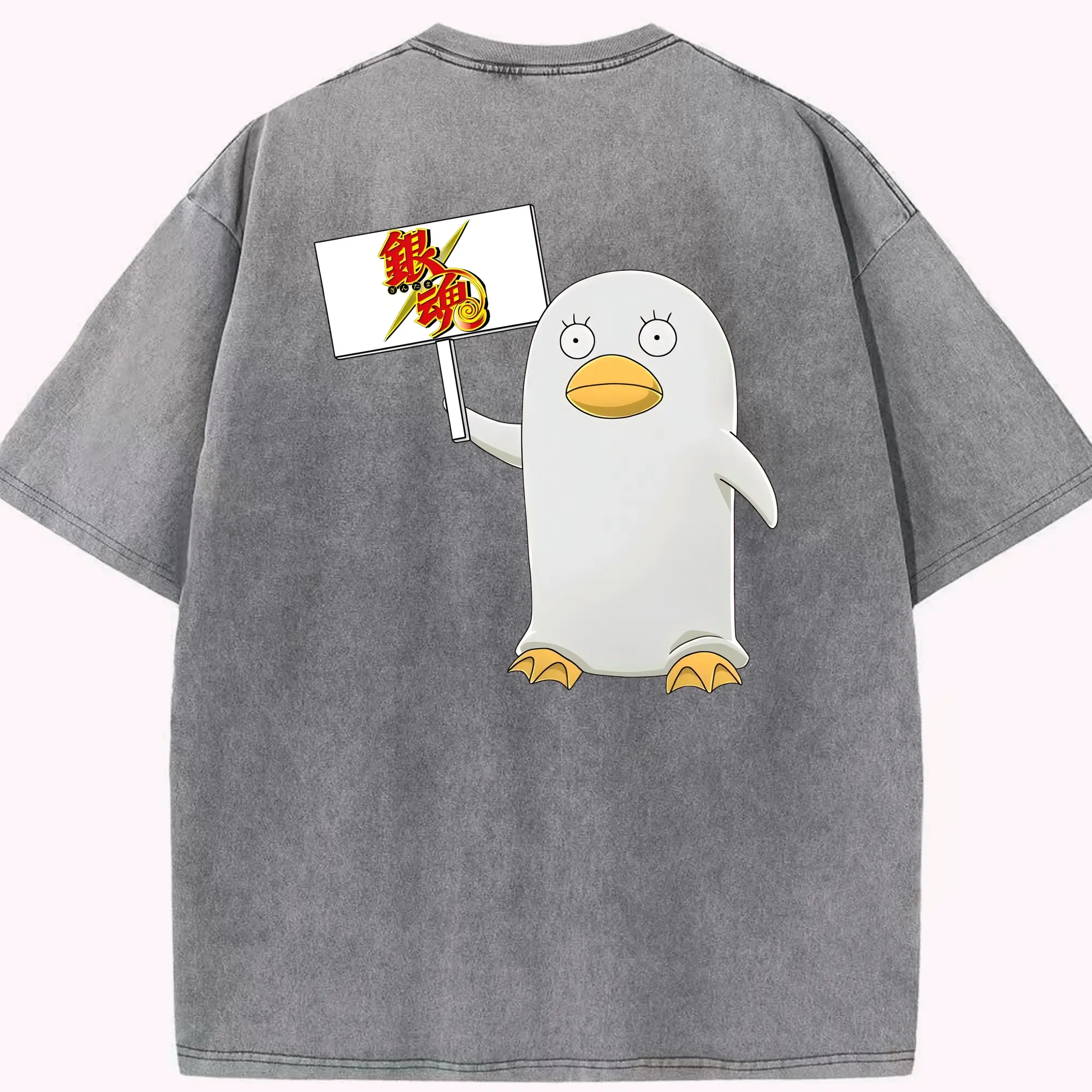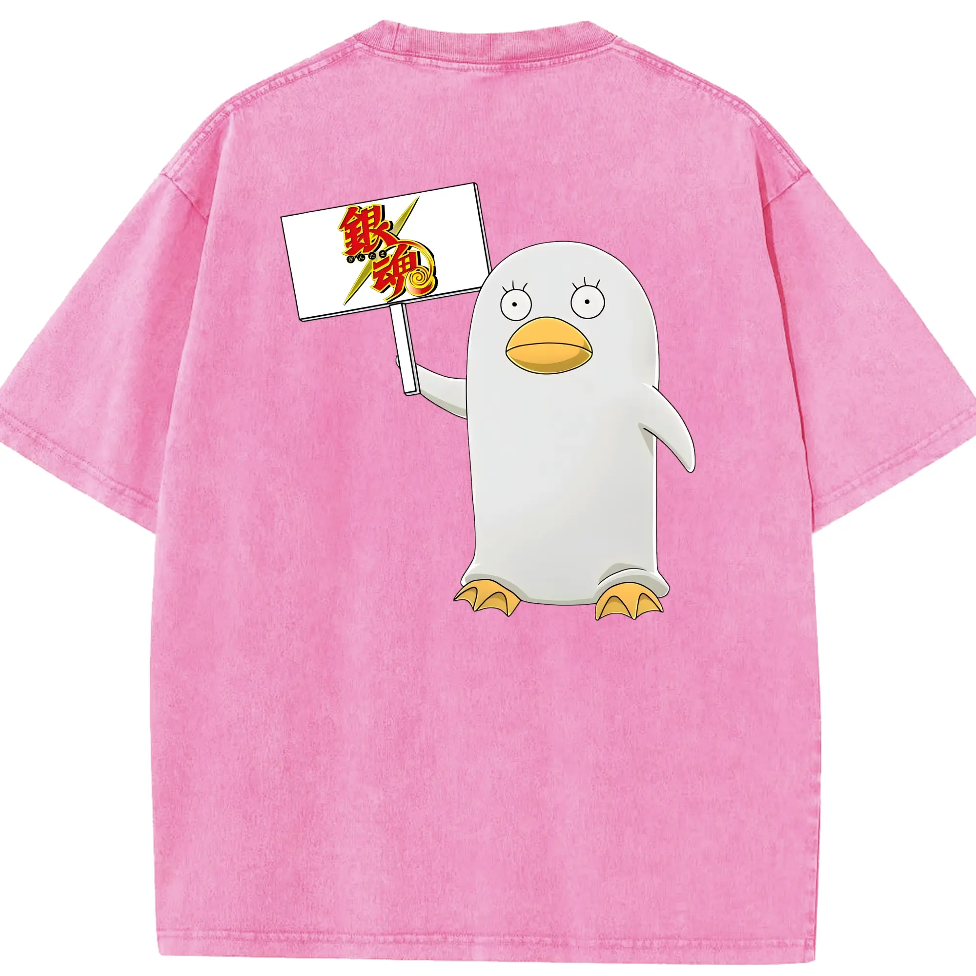 銀魂 グッズ エリザベス - 綿100% ヴィンテージ風 半袖Tシャツ ・ フロントプリント ・ 柔らか肌触り ・ 通気性 快適 ・ スポーツ カジュアル 外出用