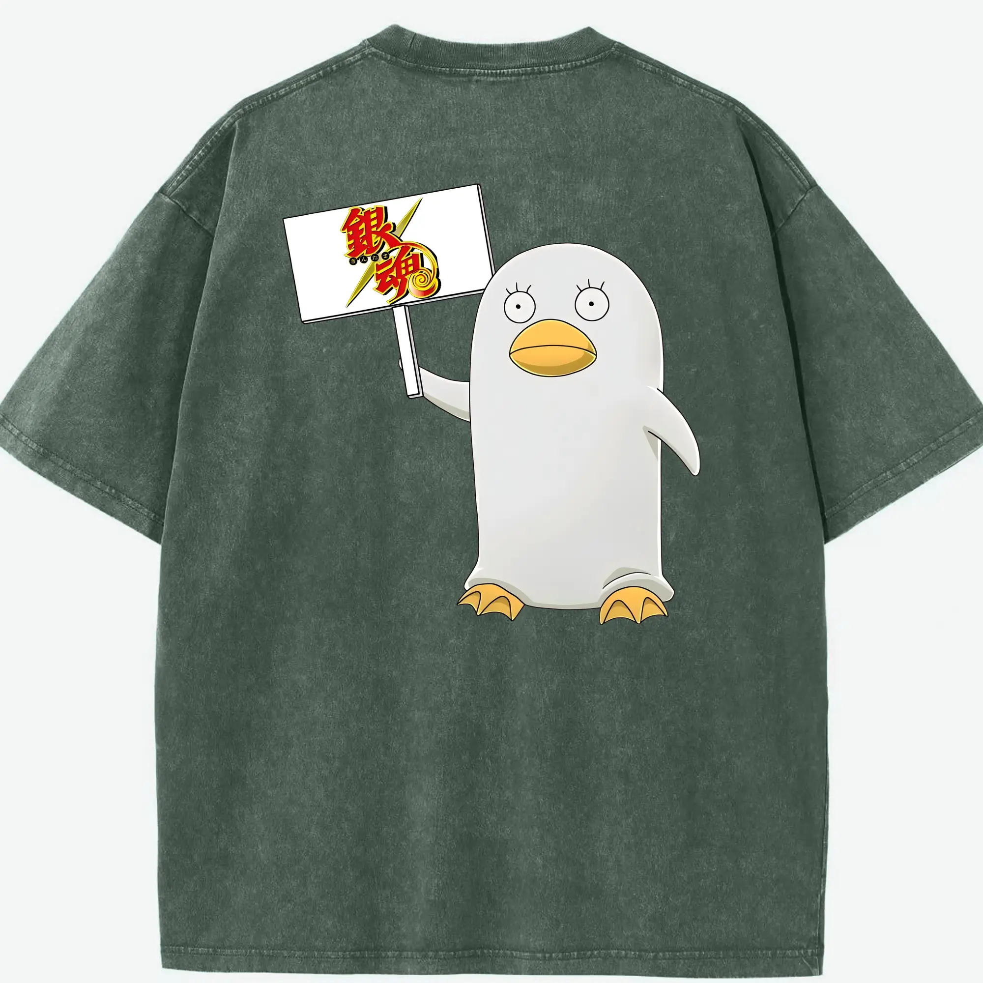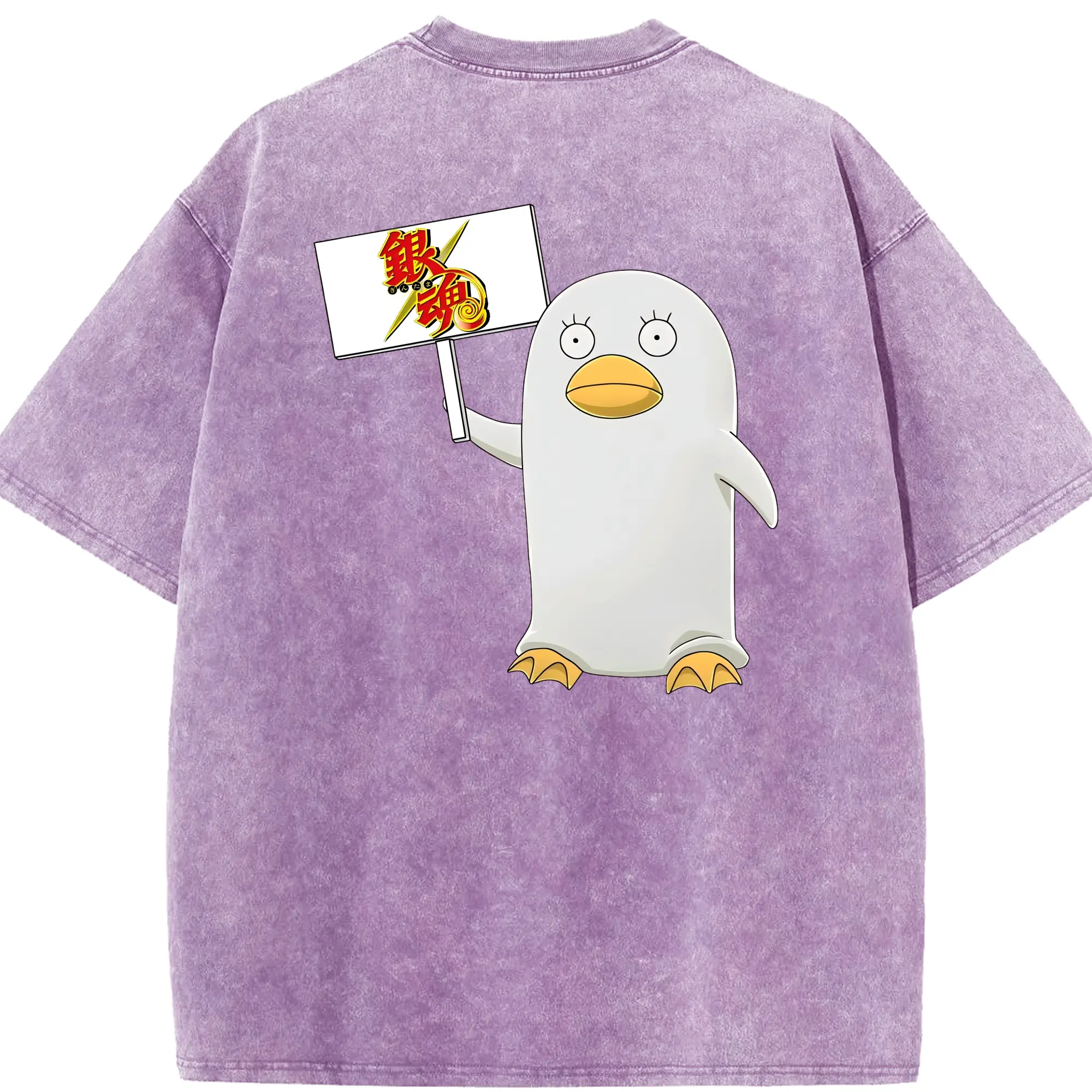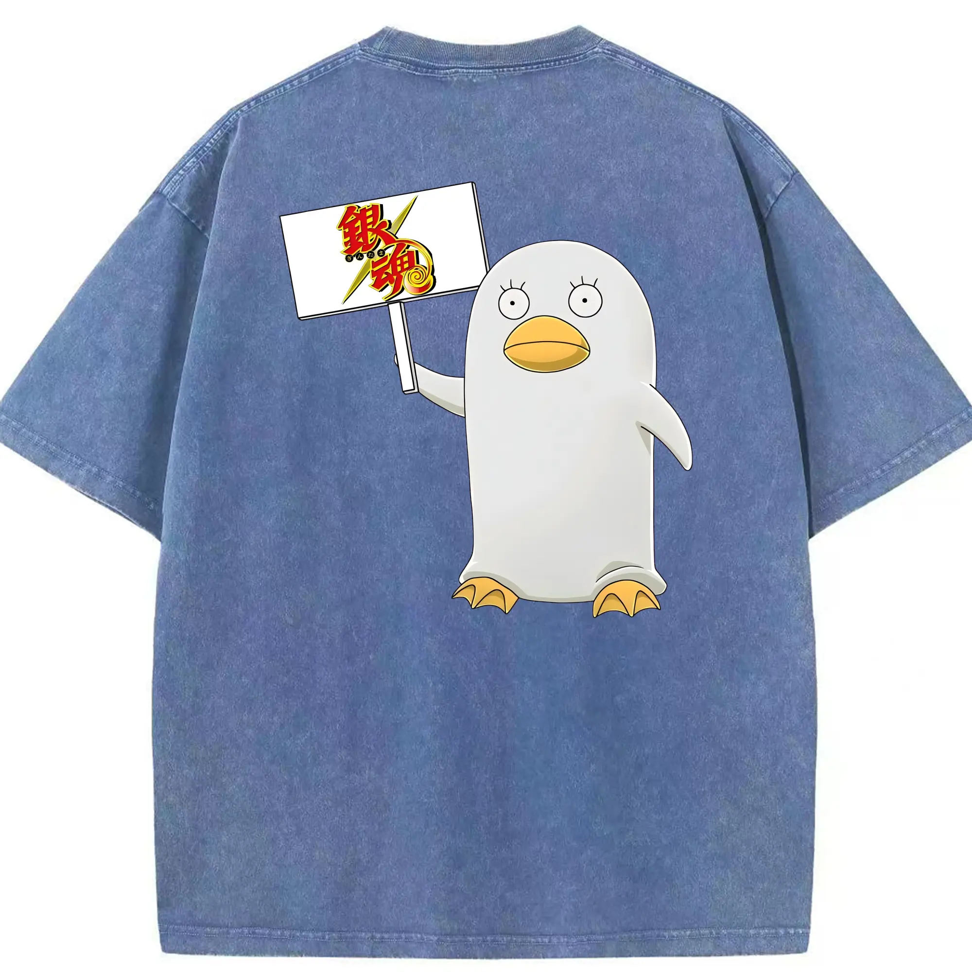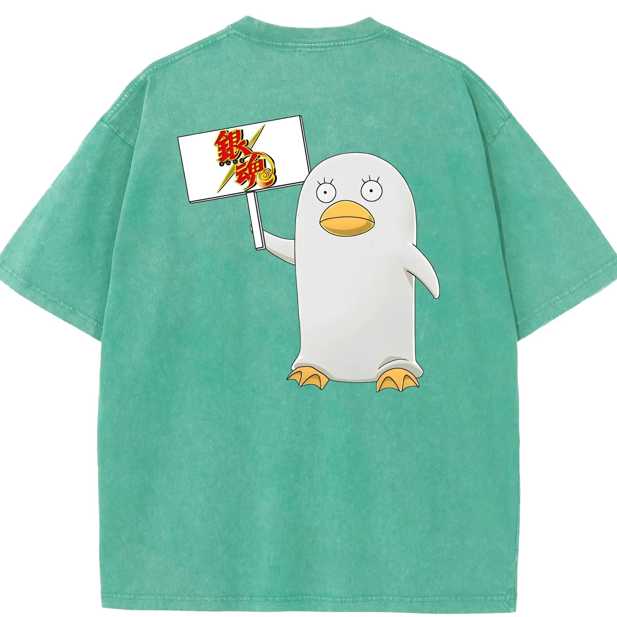 銀魂 グッズ エリザベス - 綿100% ヴィンテージ風 半袖Tシャツ ・ フロントプリント ・ 柔らか肌触り ・ 通気性 快適 ・ スポーツ カジュアル 外出用
