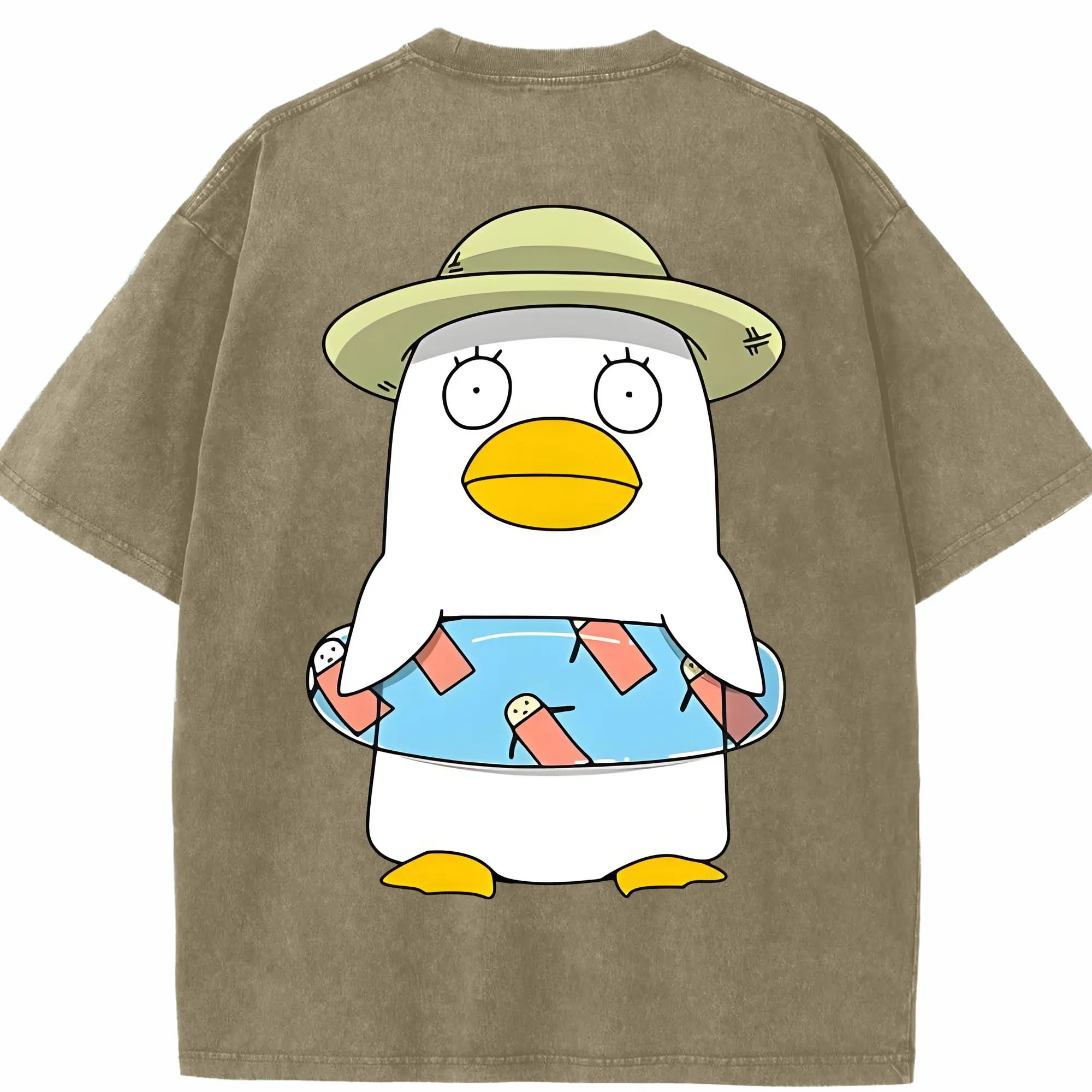 銀魂 グッズ エリザベス - 綿100% ヴィンテージ風 半袖Tシャツ ・ フロントプリント ・ 柔らか肌触り ・ 通気性 快適 ・ スポーツ カジュアル 外出用