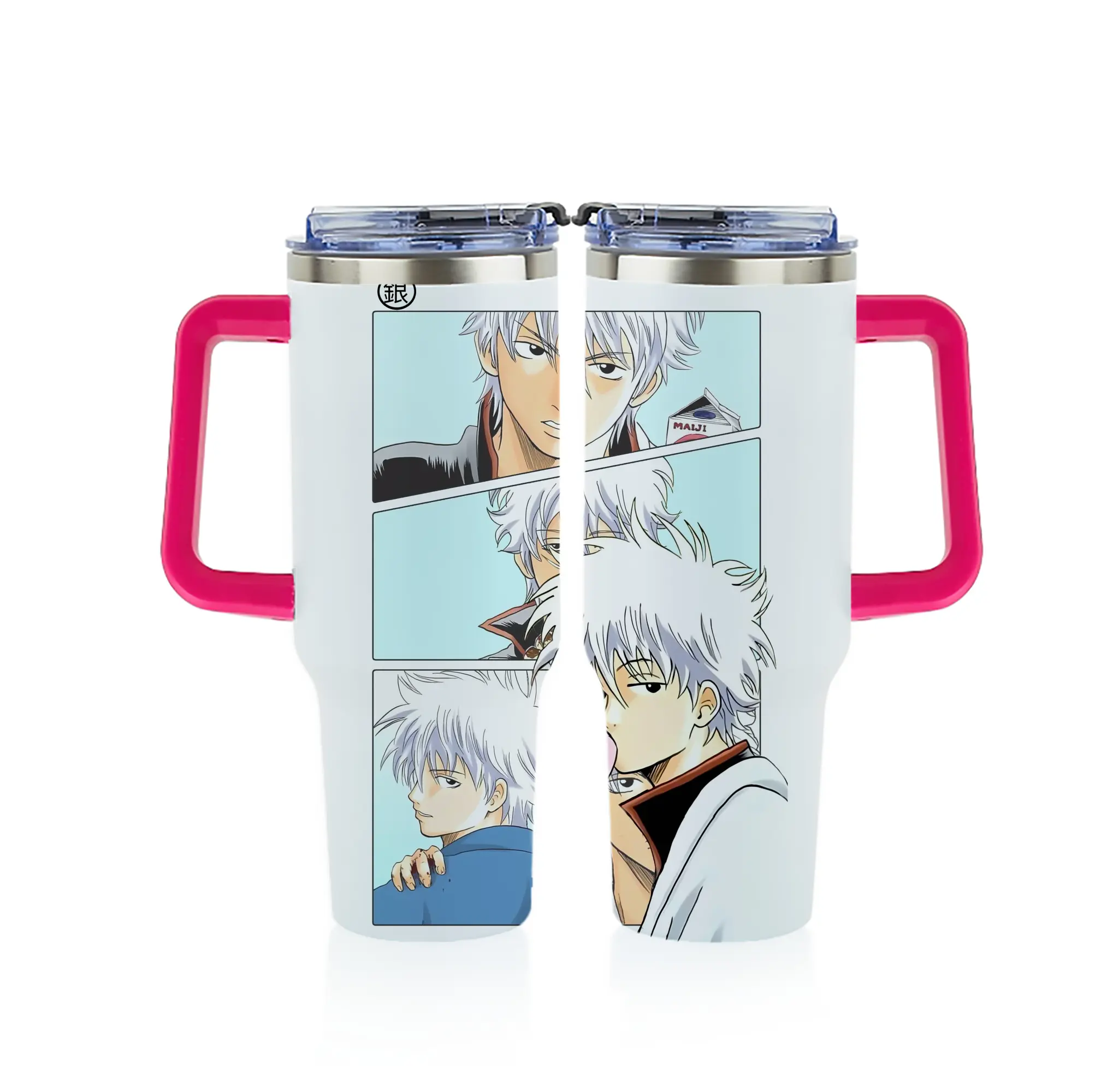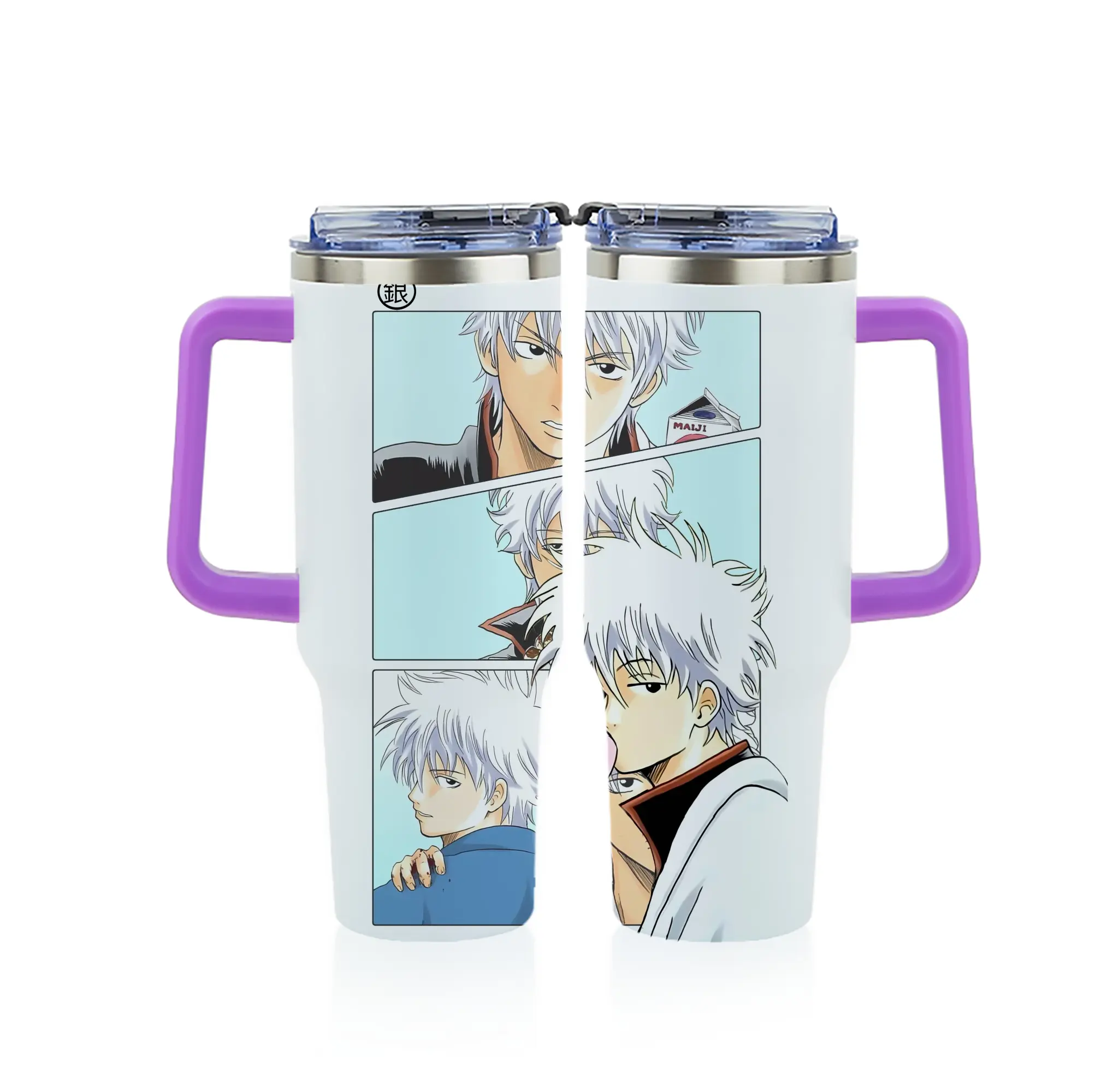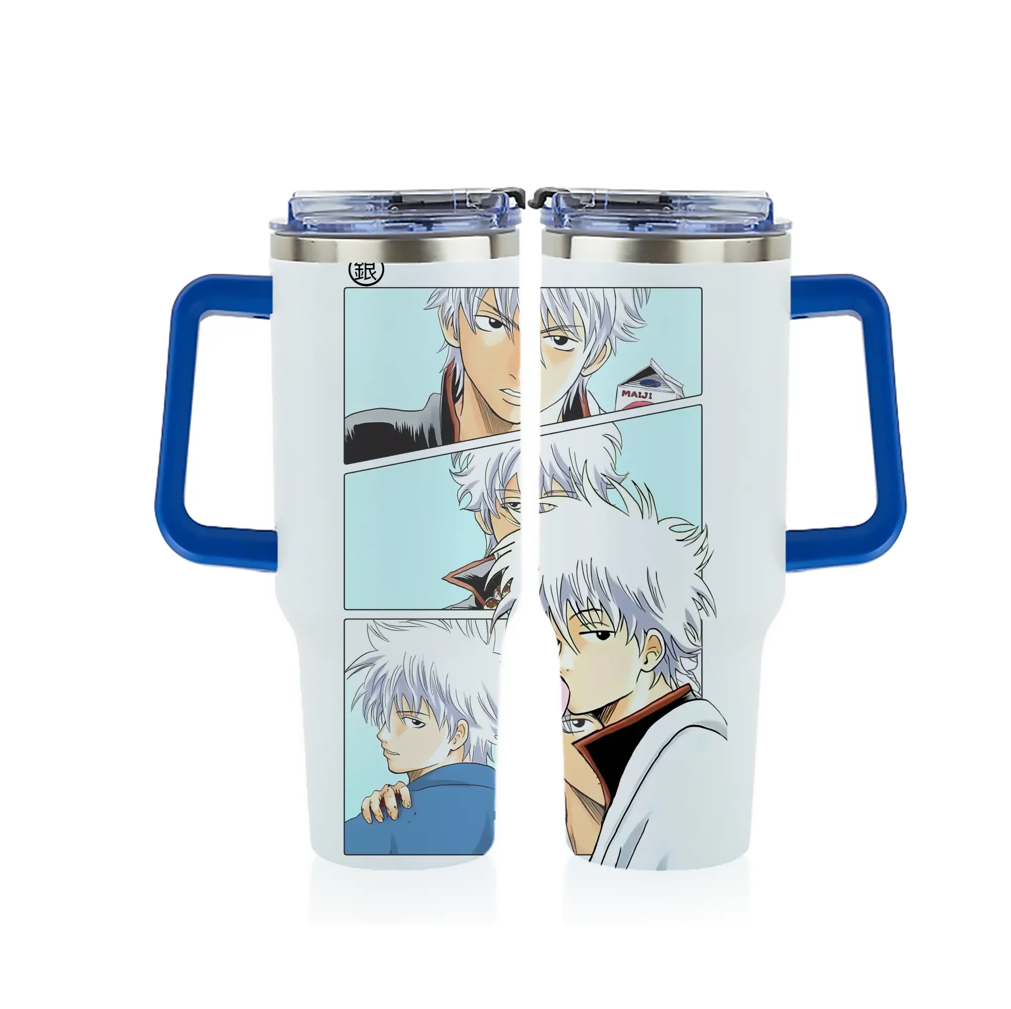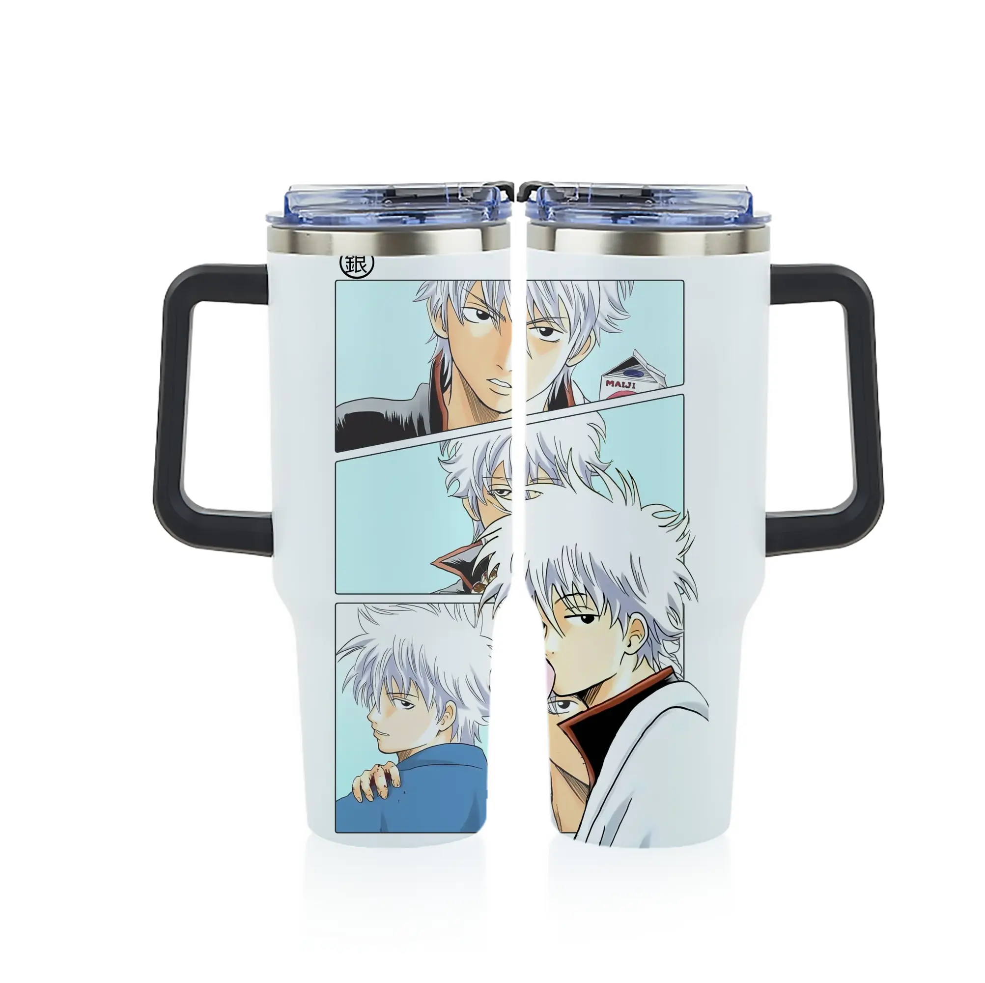 銀魂 グッズ 坂田 銀時 - 1200mL フルプリント車用タンブラー ・ 304ステンレス 内側 ・ 201ステンレス 外側 ・ 保温 保冷 ・ 通勤 ドライブ アウトドア用