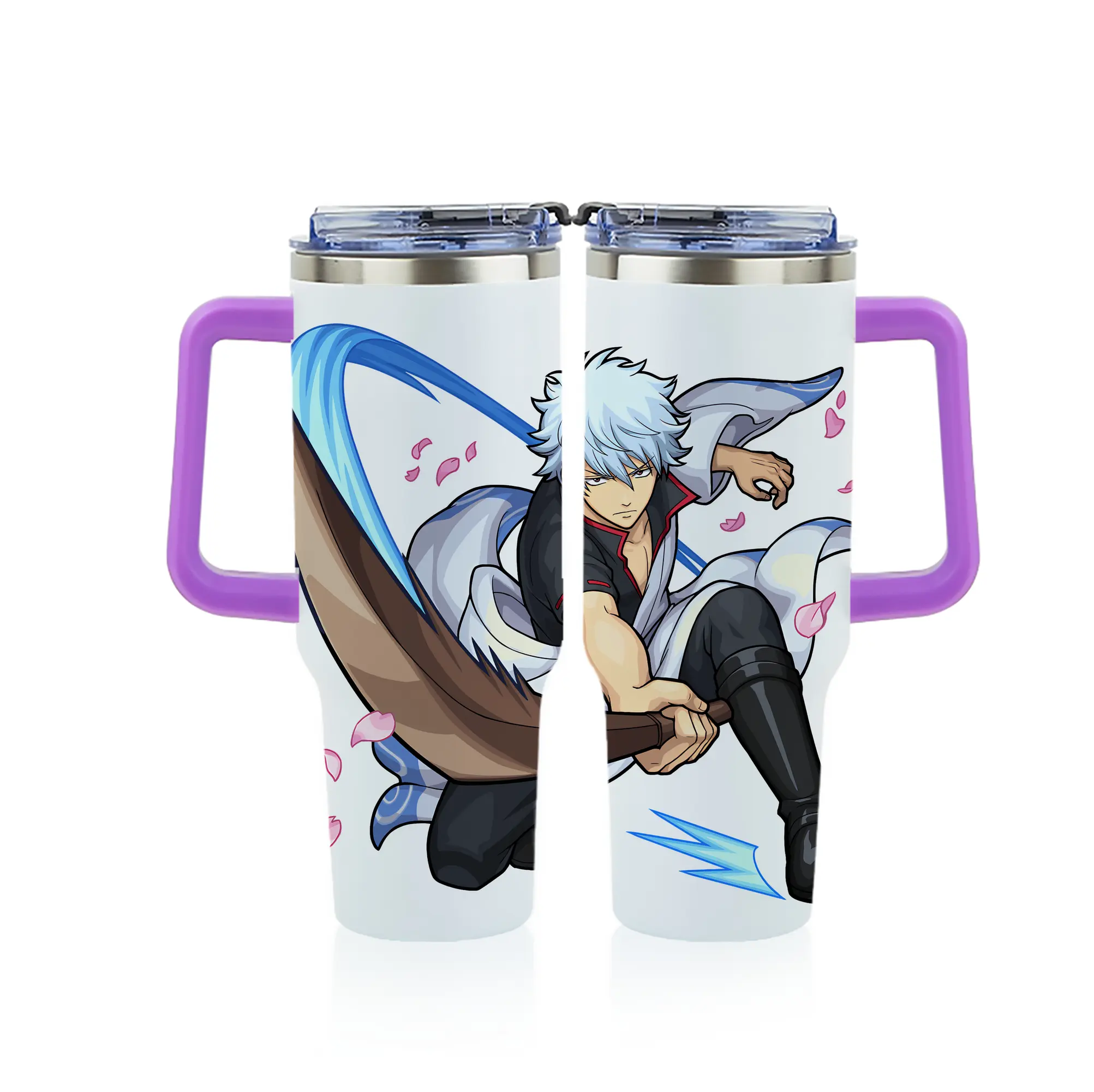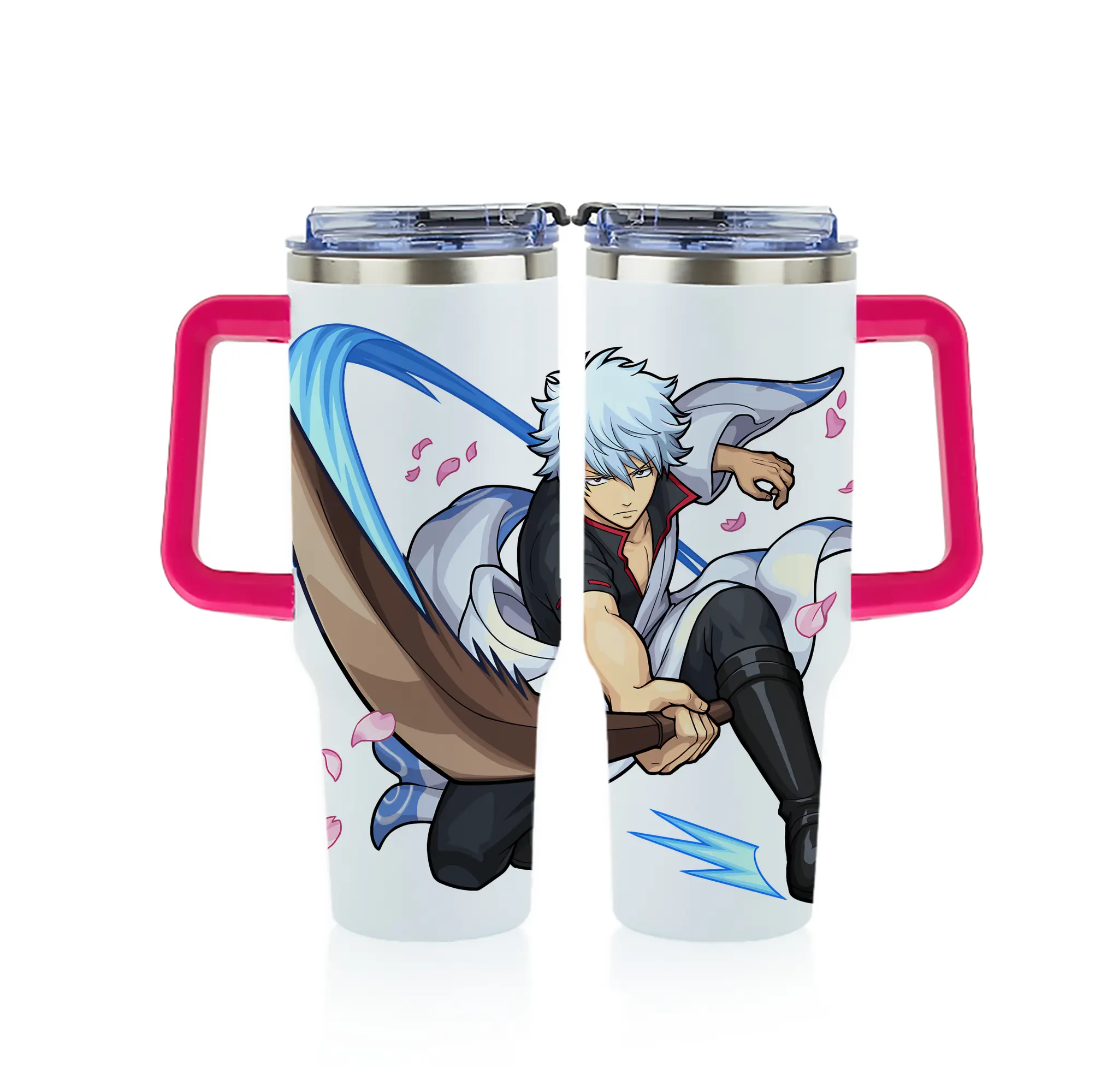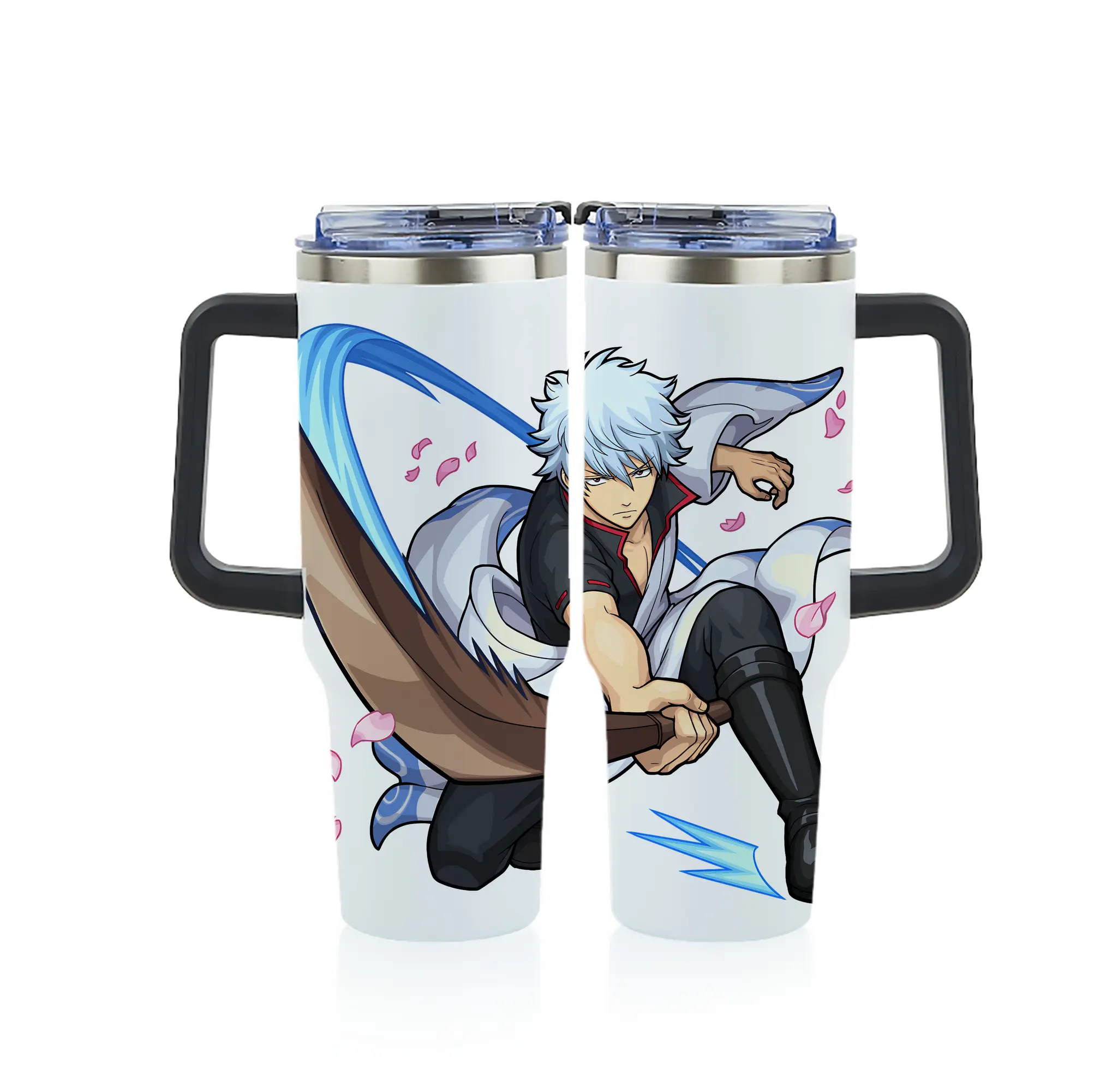 銀魂 グッズ 坂田 銀時 - 1200mL フルプリント車用タンブラー ・ 304ステンレス 内側 ・ 201ステンレス 外側 ・ 保温 保冷 ・ 通勤 ドライブ アウトドア用