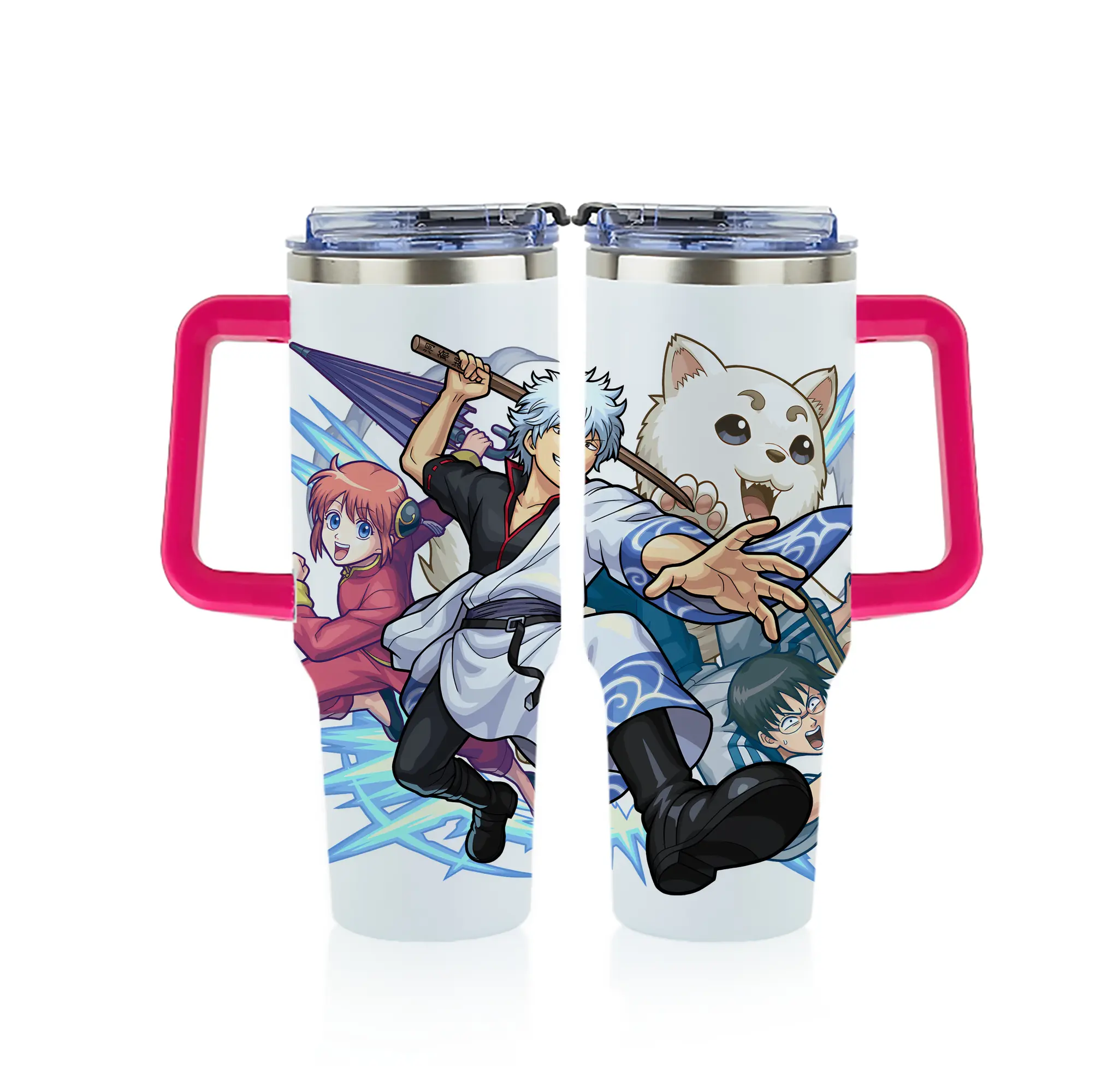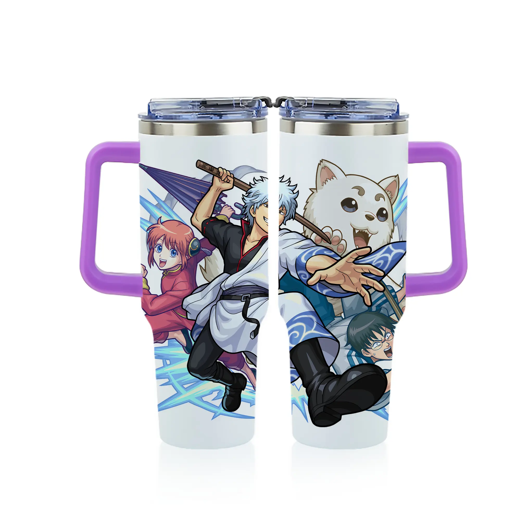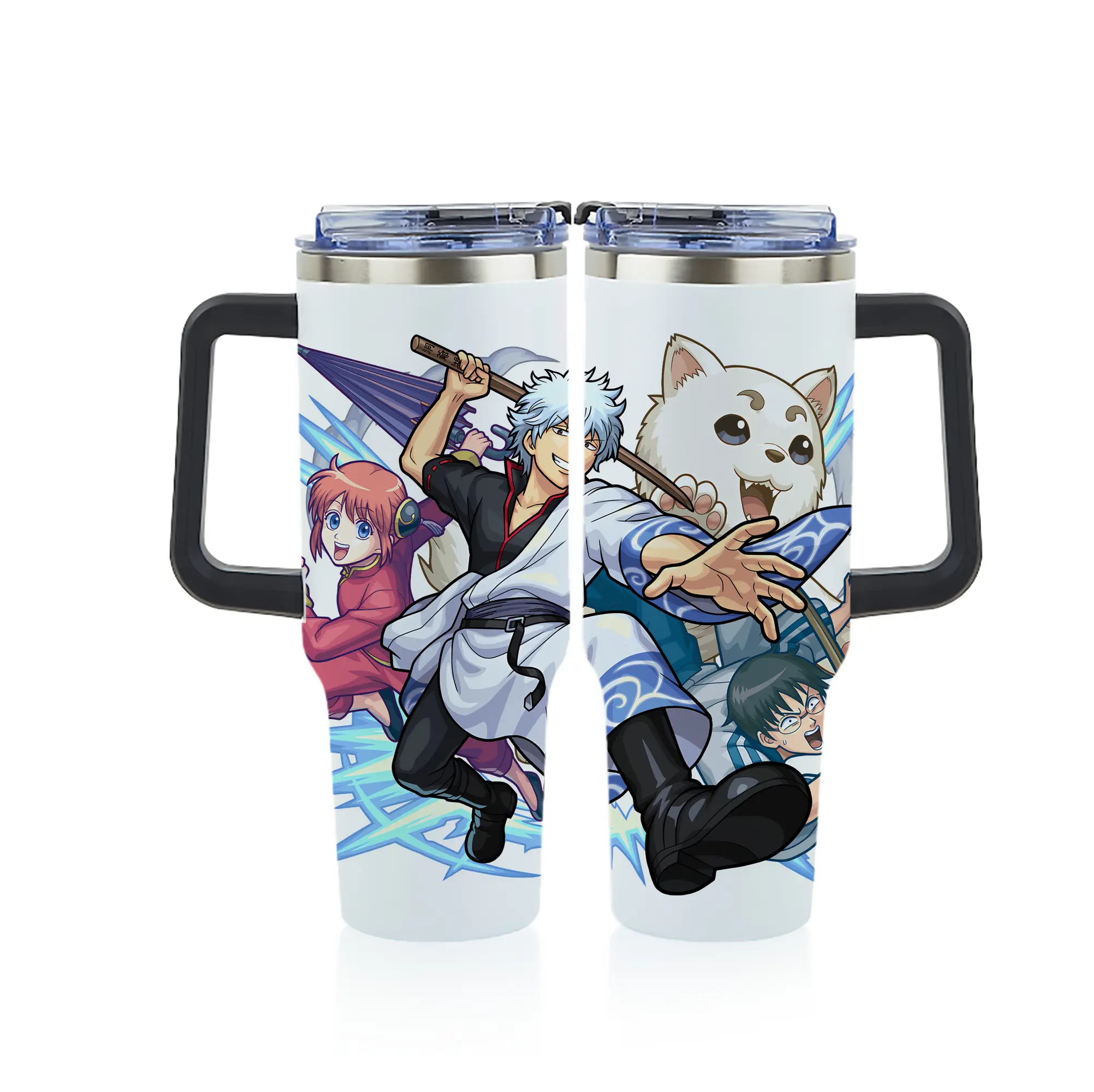 銀魂 グッズ 坂田 銀時 - 1200mL フルプリント車用タンブラー ・ 304ステンレス 内側 ・ 201ステンレス 外側 ・ 保温 保冷 ・ 通勤 ドライブ アウトドア用