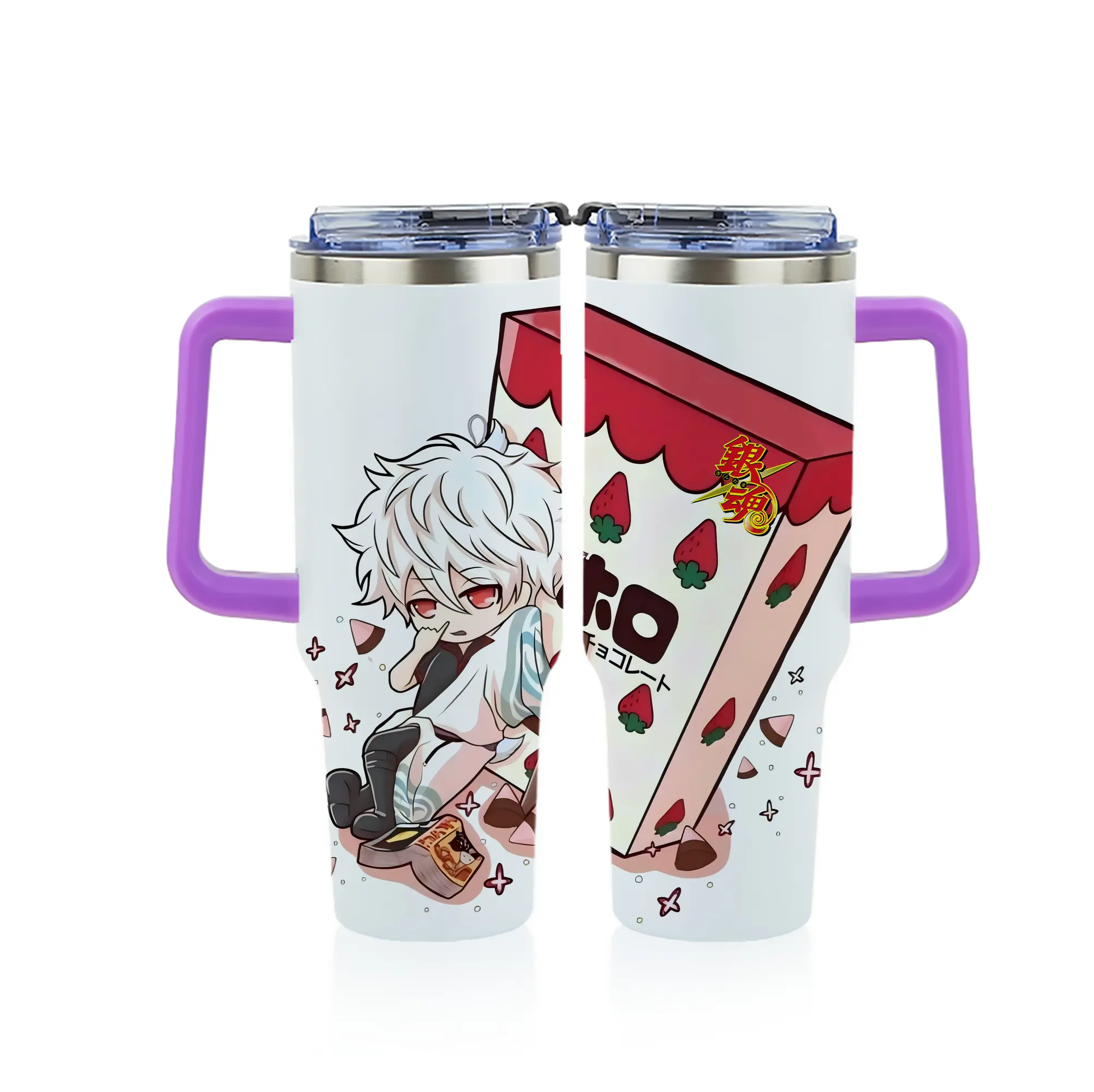 銀魂 グッズ 坂田 銀時 - 1200mL フルプリント車用タンブラー ・ 304ステンレス 内側 ・ 201ステンレス 外側 ・ 保温 保冷 ・ 通勤 ドライブ アウトドア用