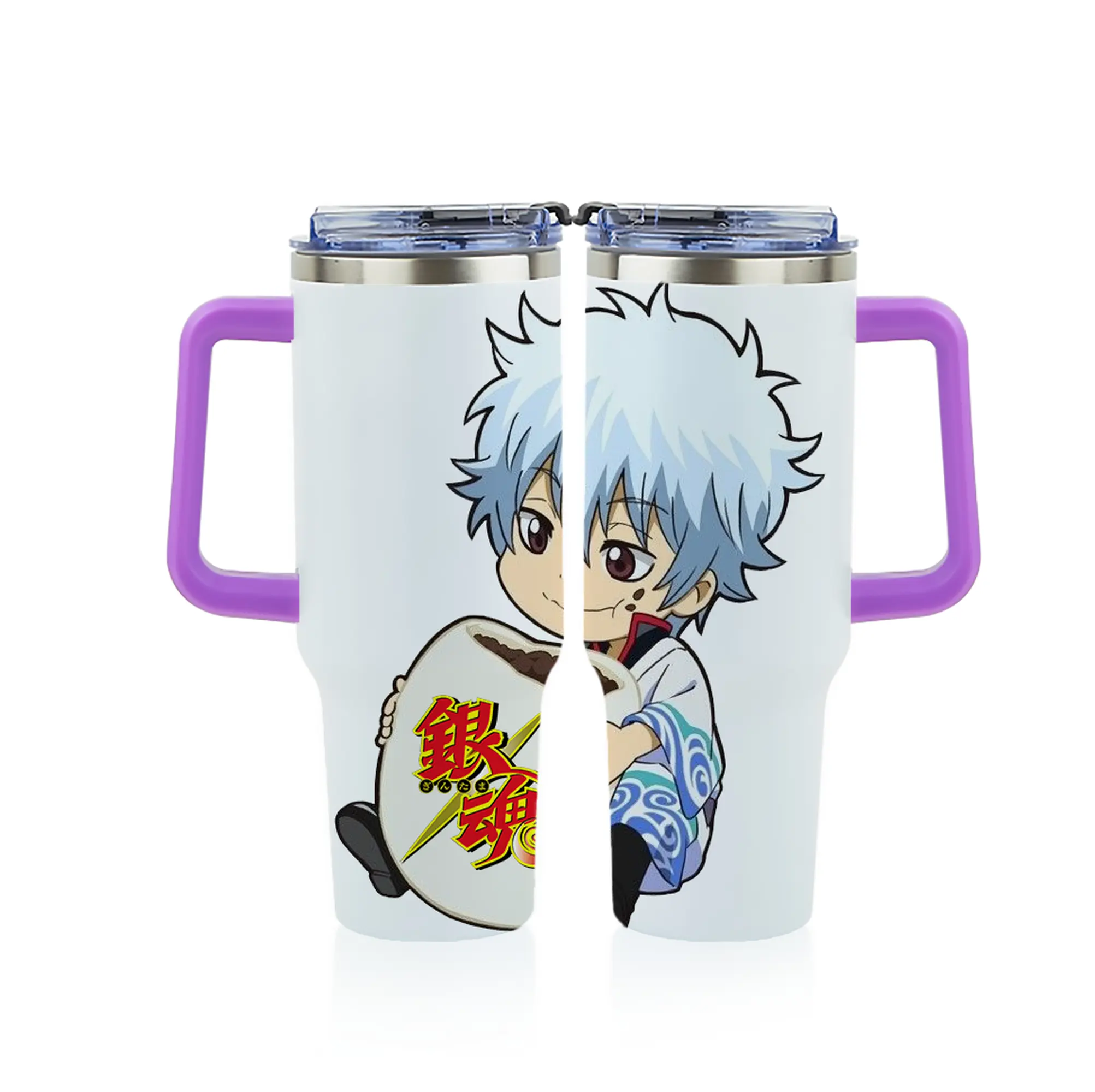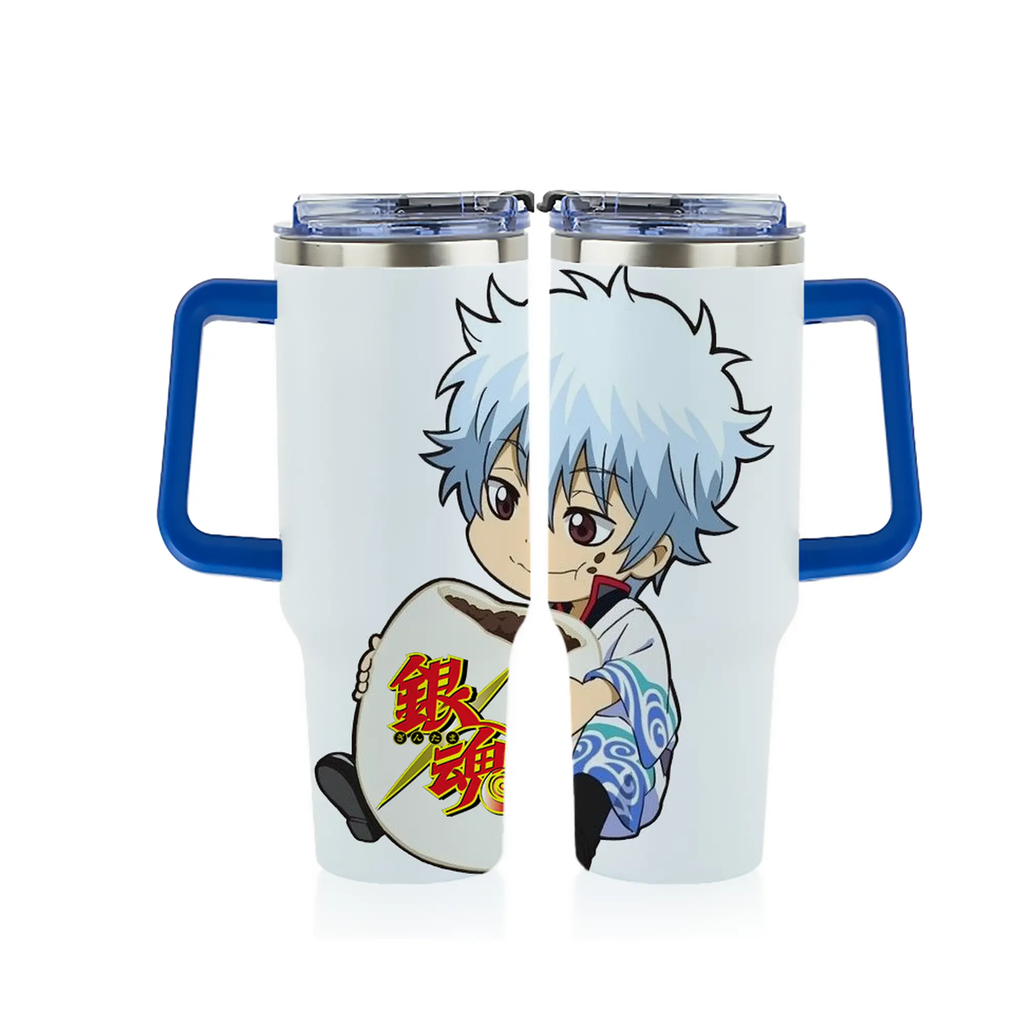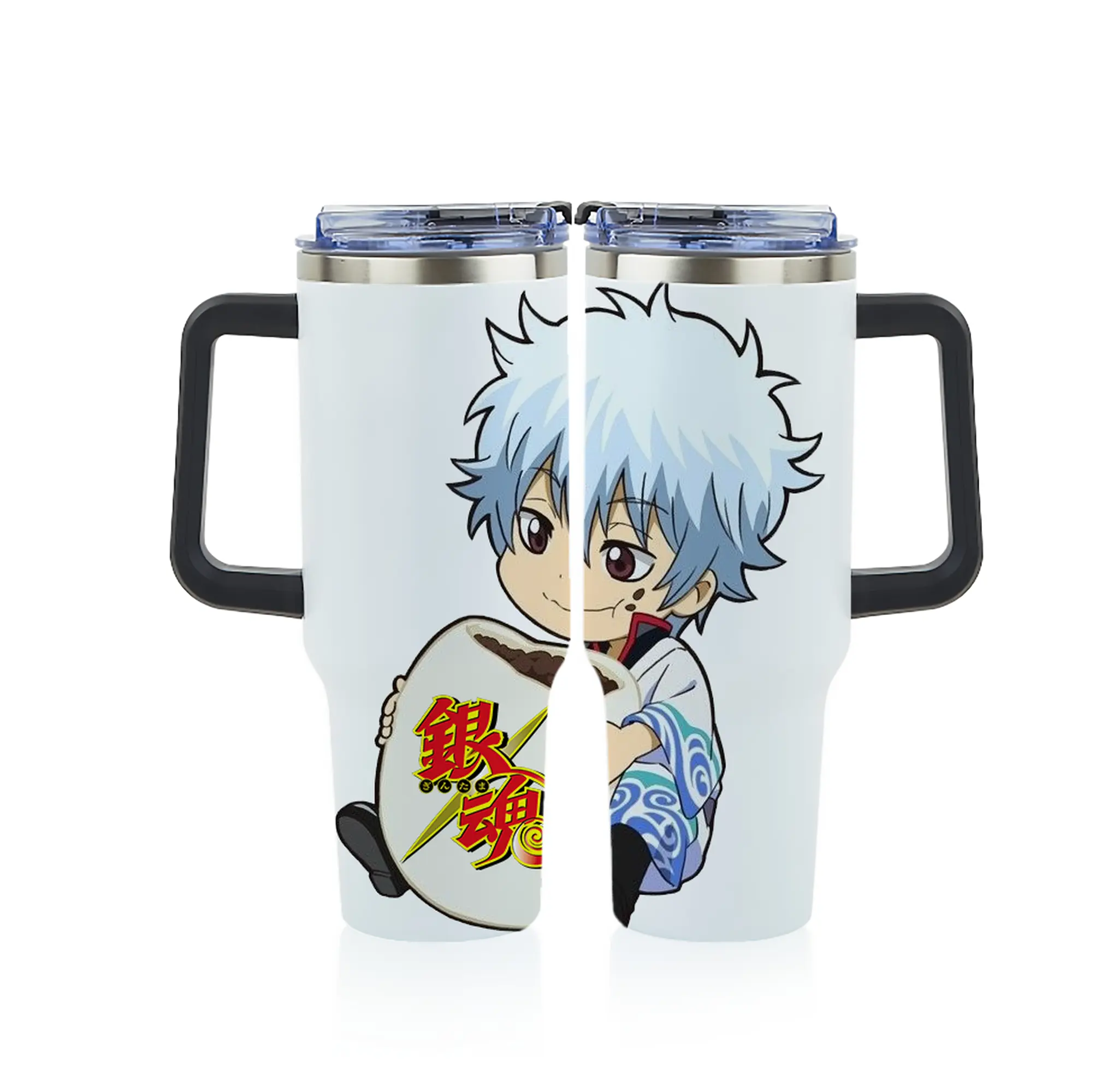 銀魂 グッズ 坂田 銀時 - 1200mL フルプリント車用タンブラー ・ 304ステンレス 内側 ・ 201ステンレス 外側 ・ 保温 保冷 ・ 通勤 ドライブ アウトドア用