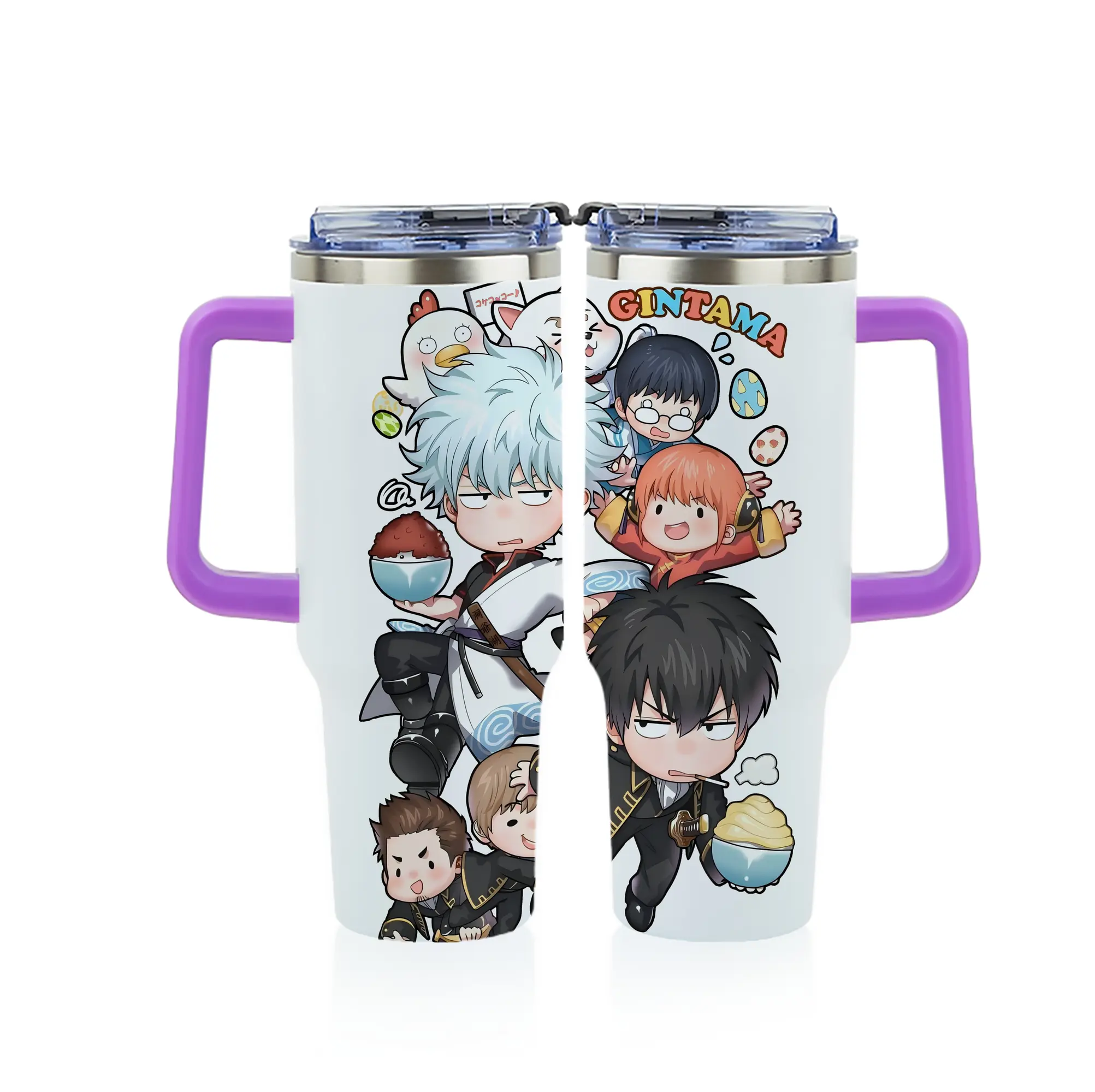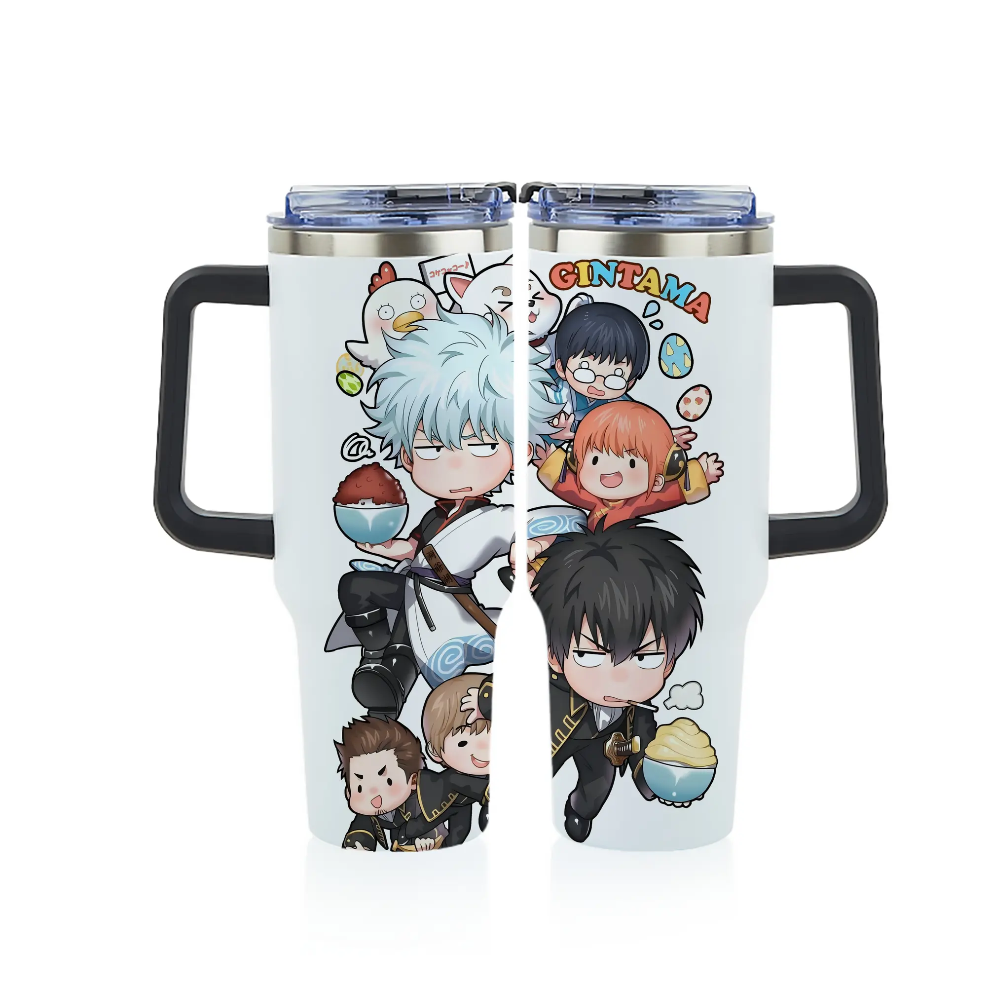 銀魂 グッズ 坂田 銀時 - 1200mL フルプリント車用タンブラー ・ 304ステンレス 内側 ・ 201ステンレス 外側 ・ 保温 保冷 ・ 通勤 ドライブ アウトドア用