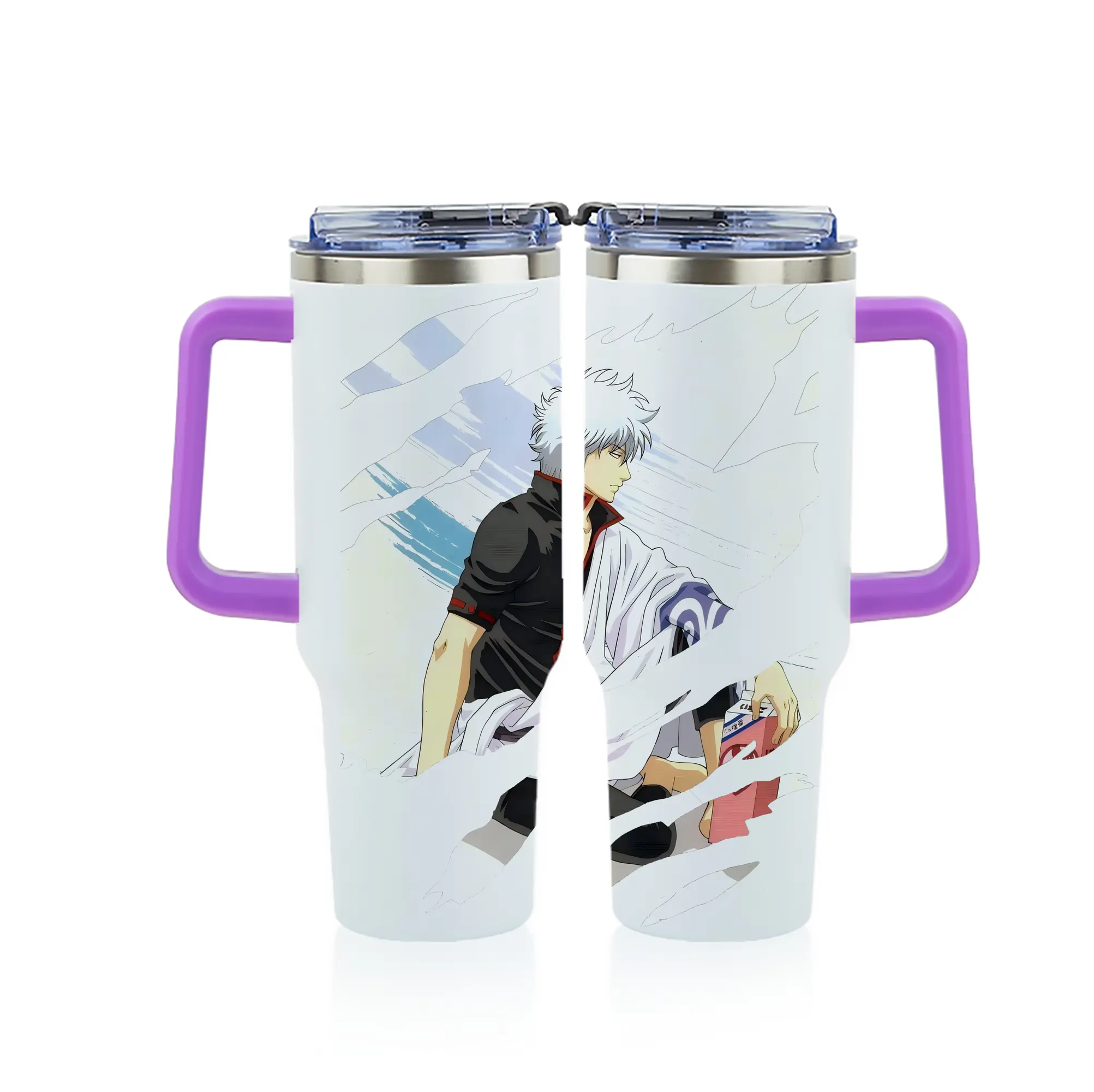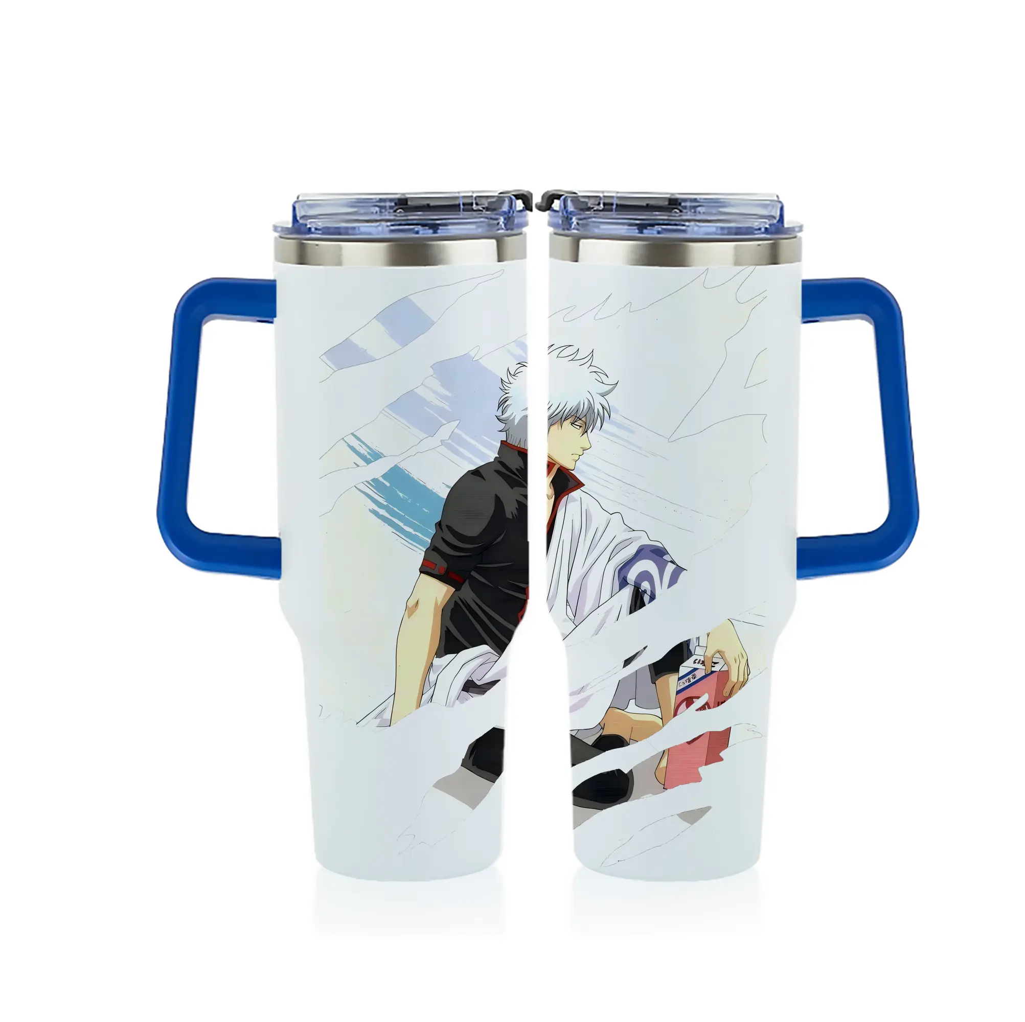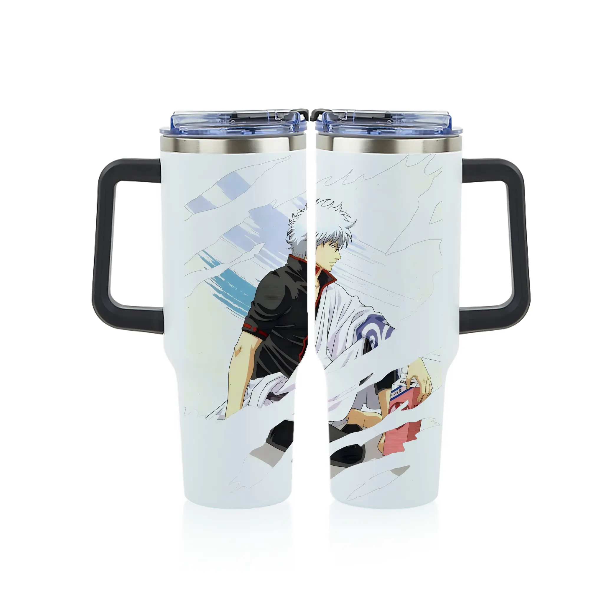 銀魂 グッズ 坂田 銀時 - 1200mL フルプリント車用タンブラー ・ 304ステンレス 内側 ・ 201ステンレス 外側 ・ 保温 保冷 ・ 通勤 ドライブ アウトドア用