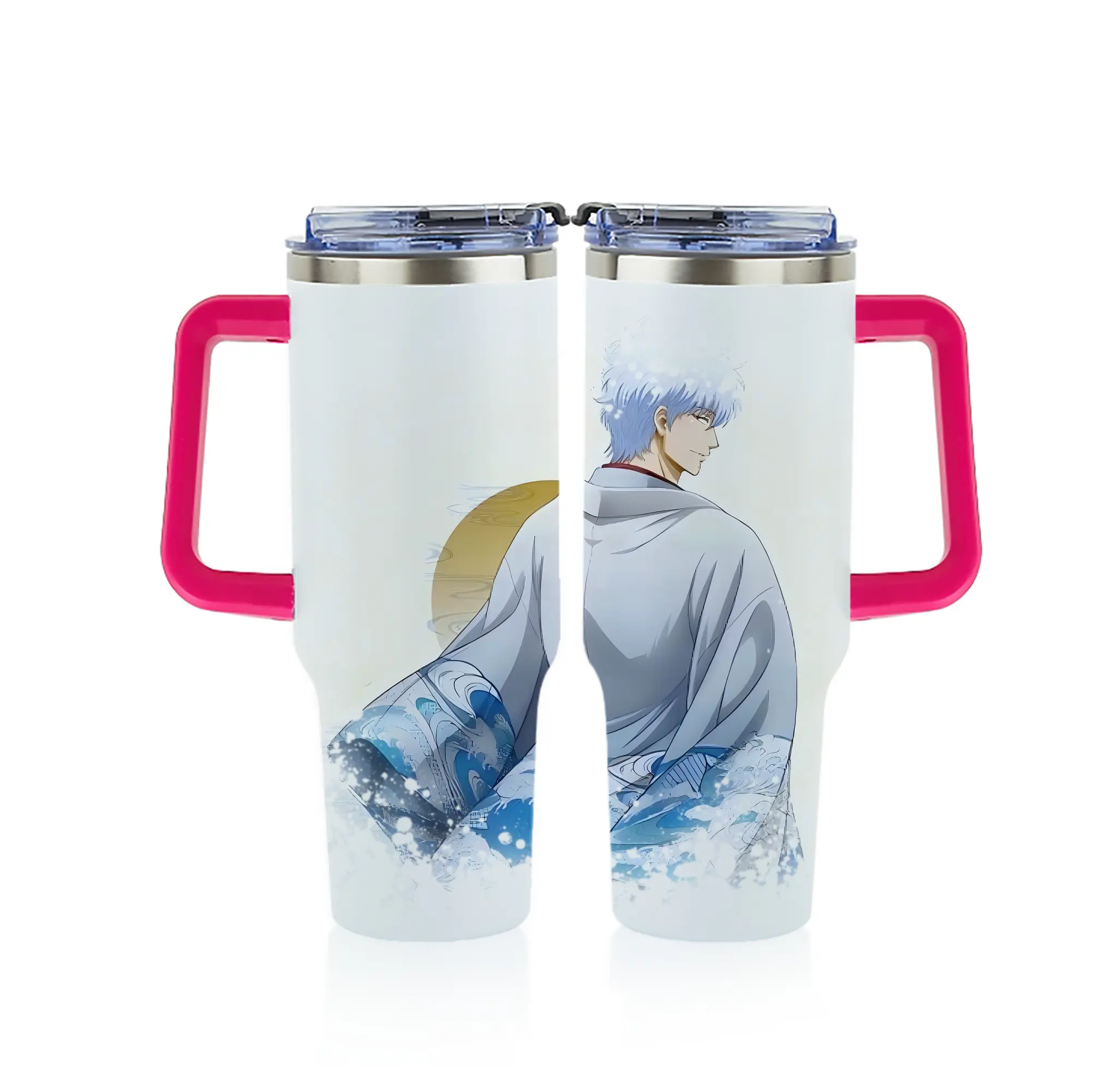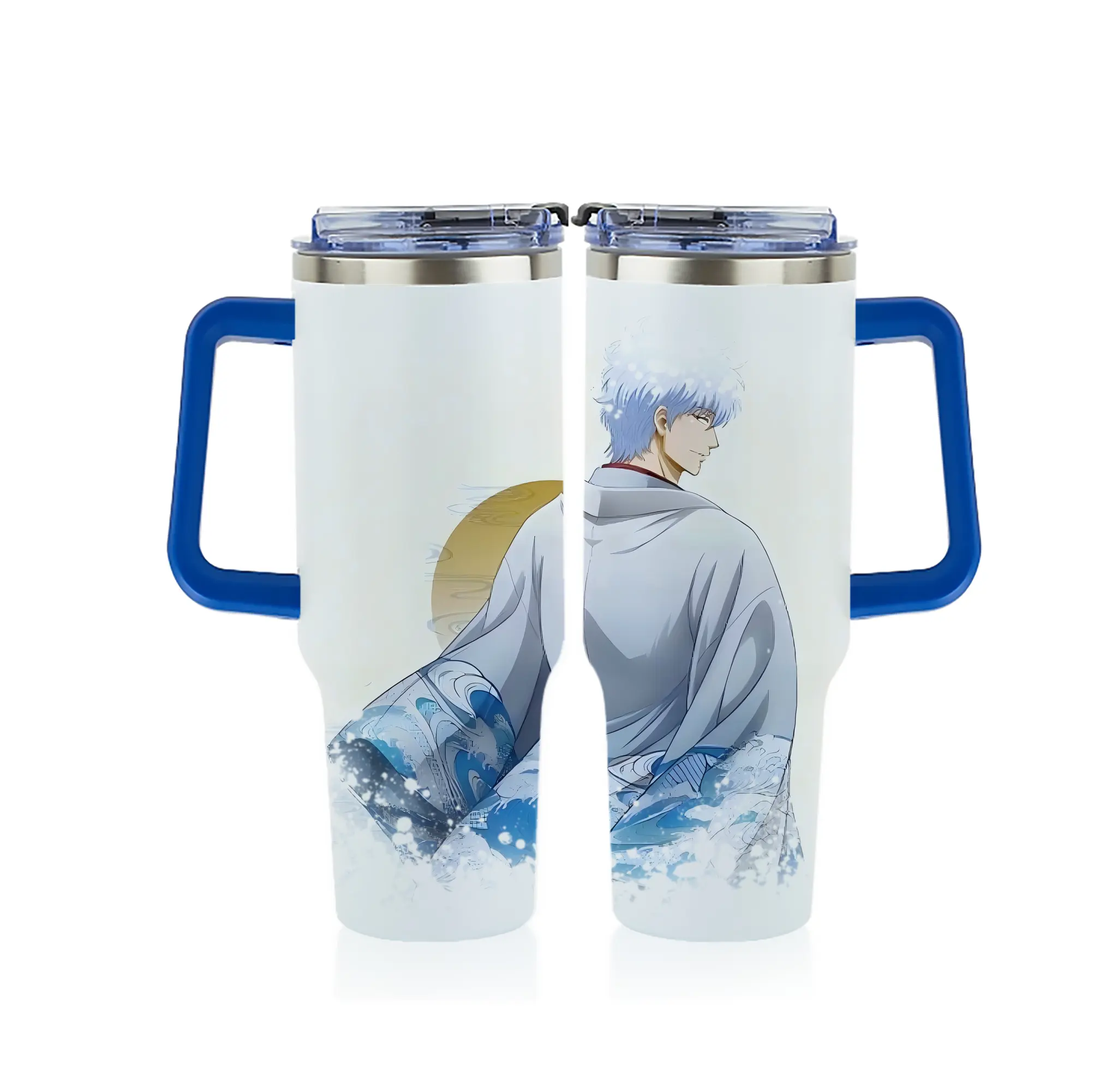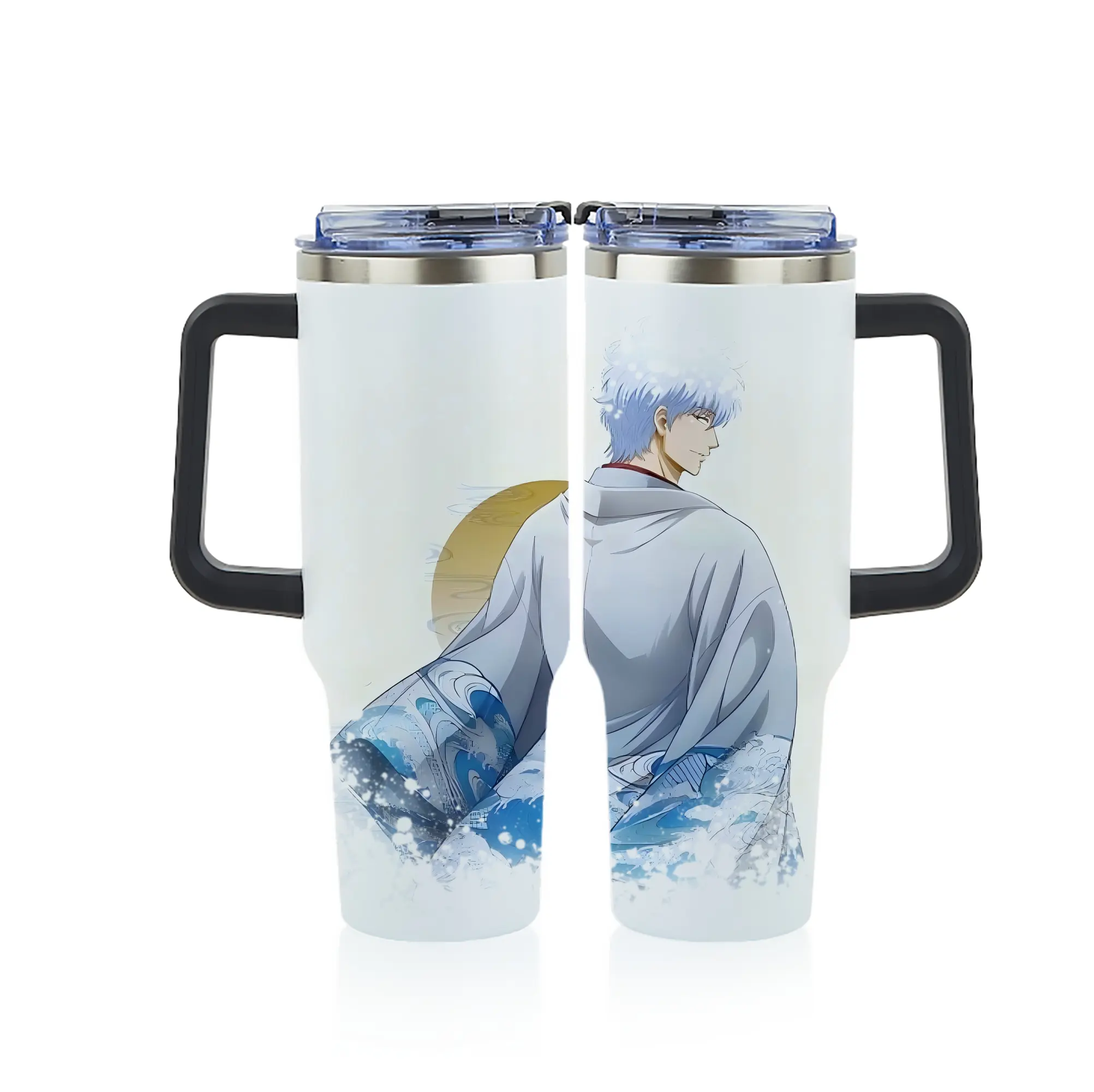 銀魂 グッズ 坂田 銀時 - 1200mL フルプリント車用タンブラー ・ 304ステンレス 内側 ・ 201ステンレス 外側 ・ 保温 保冷 ・ 通勤 ドライブ アウトドア用