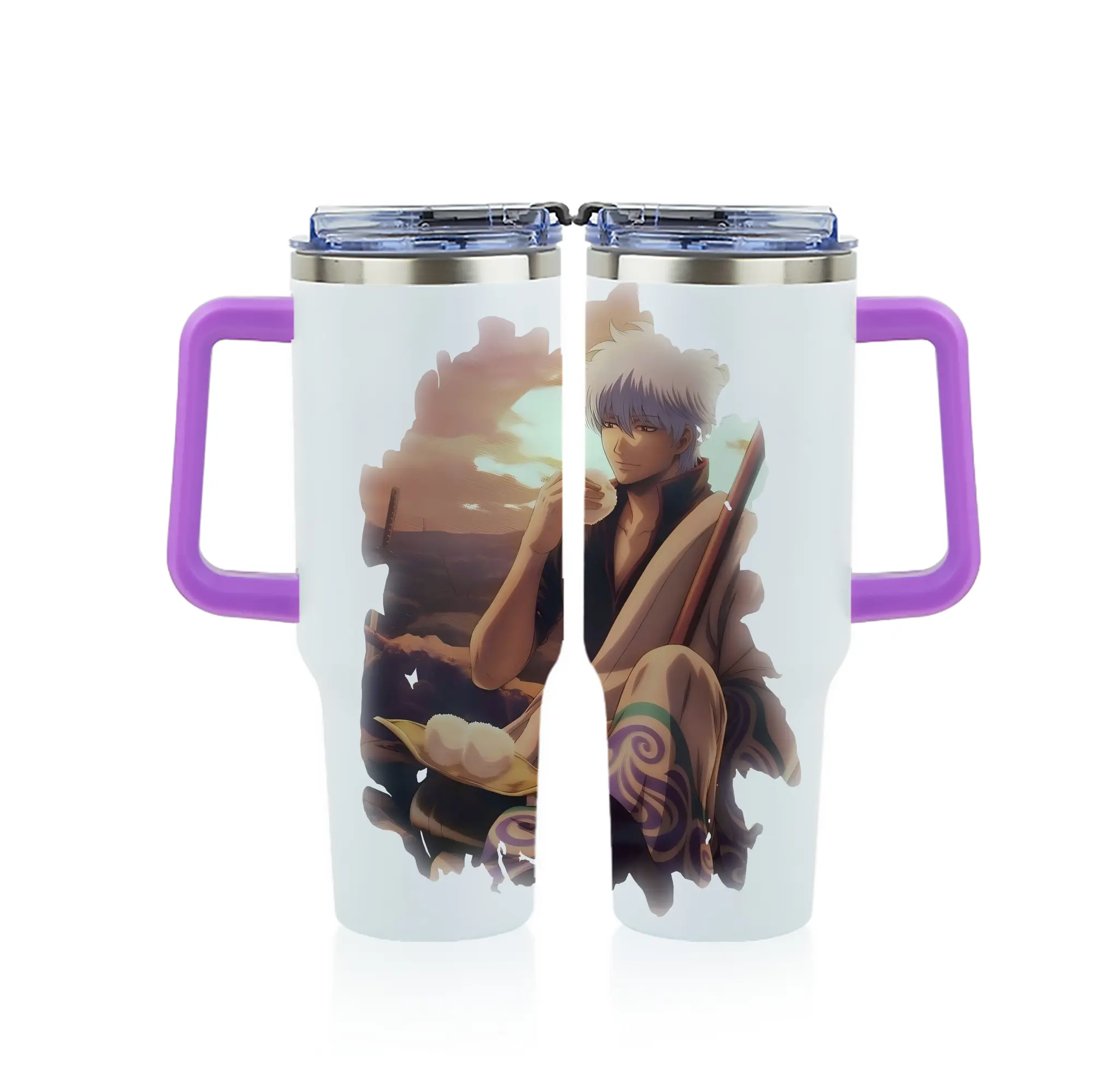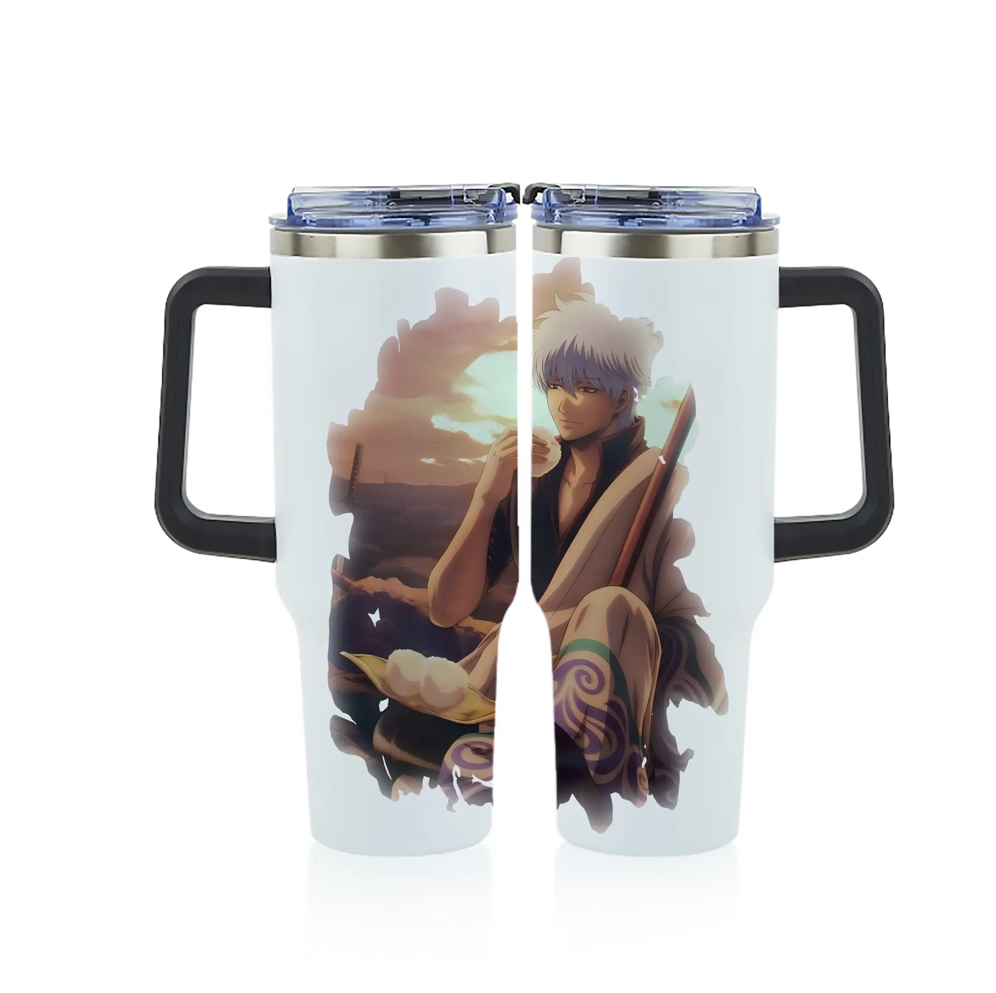 銀魂 グッズ 坂田 銀時 - 1200mL フルプリント車用タンブラー ・ 304ステンレス 内側 ・ 201ステンレス 外側 ・ 保温 保冷 ・ 通勤 ドライブ アウトドア用