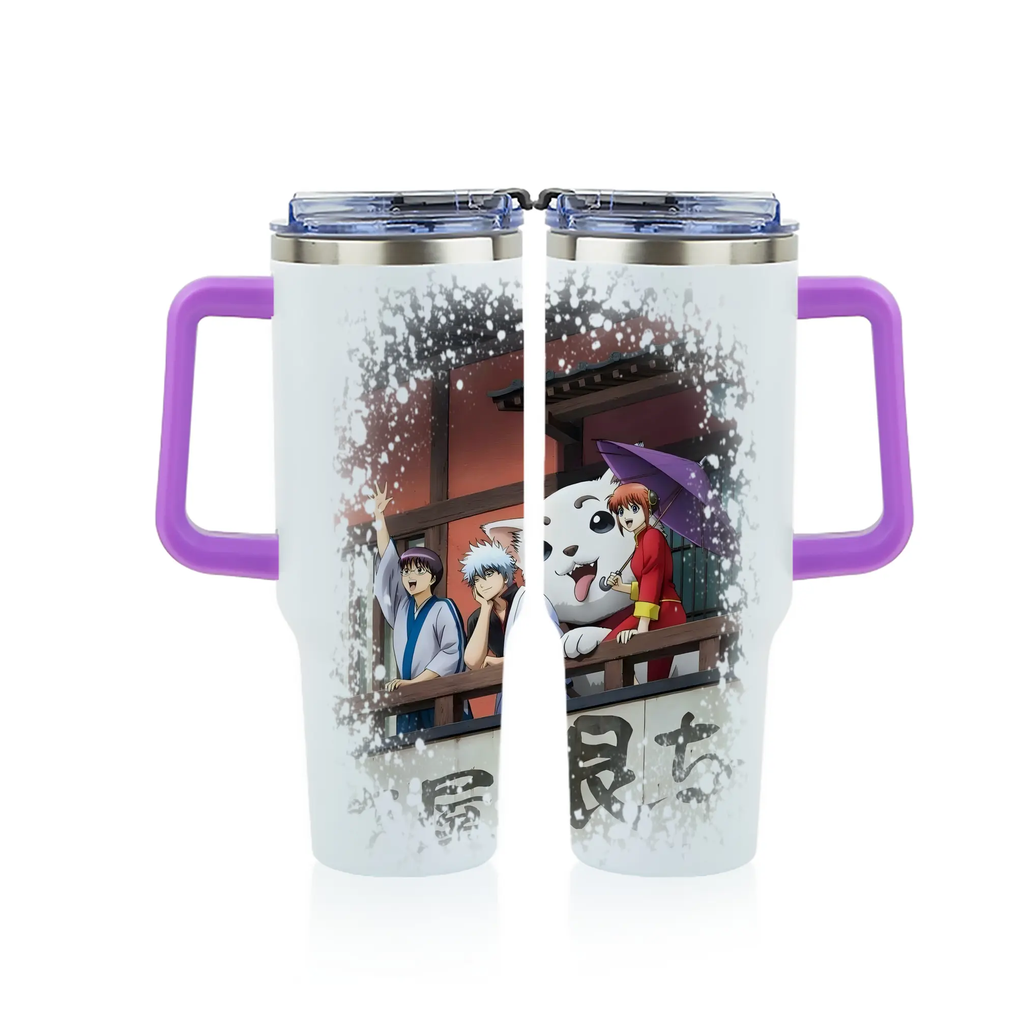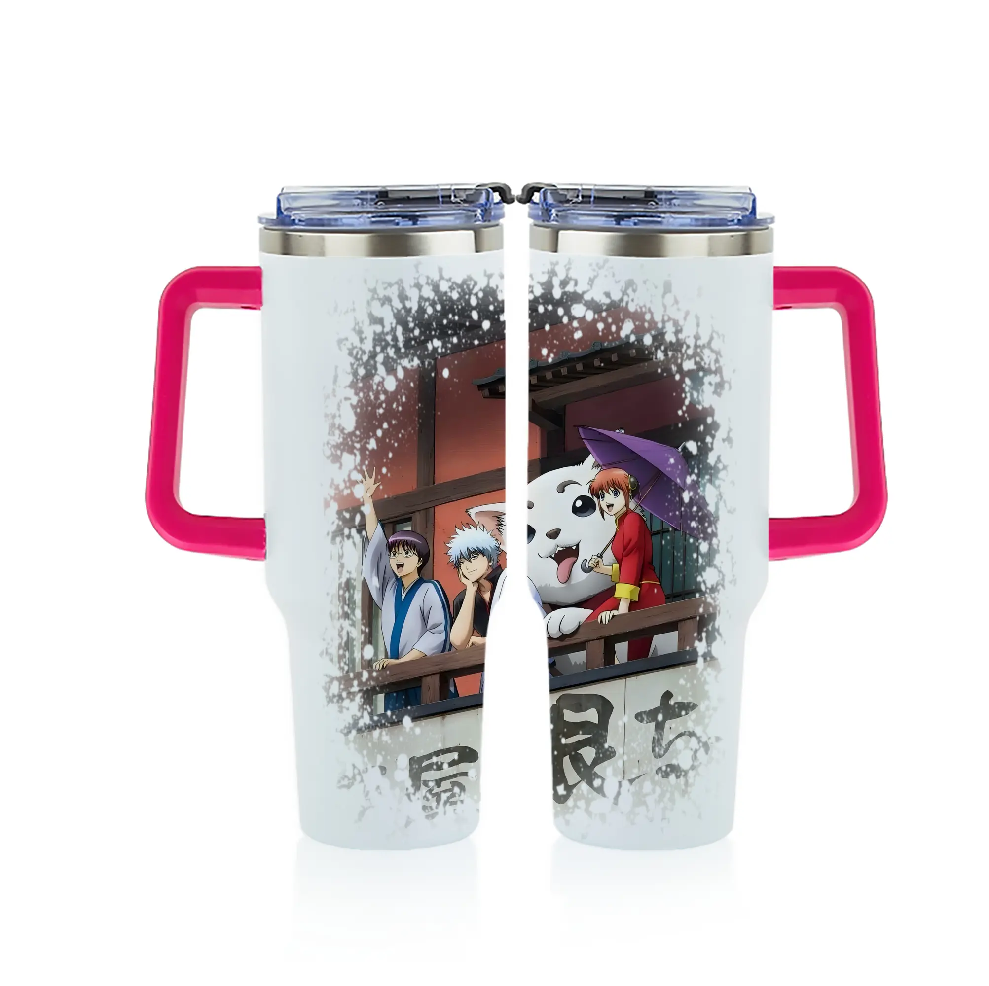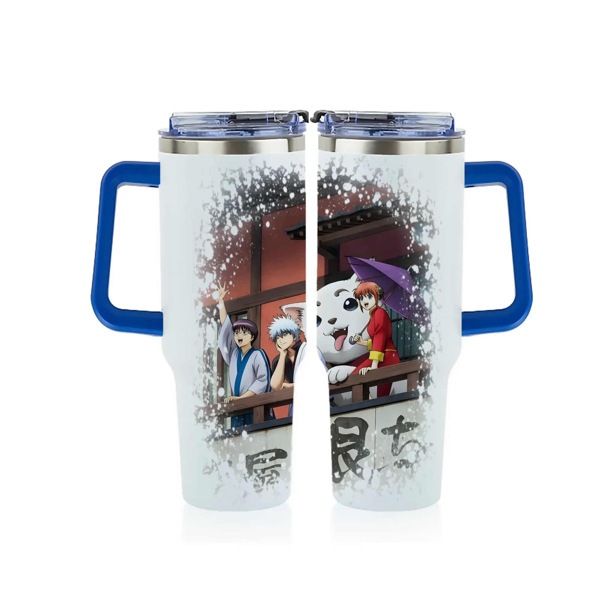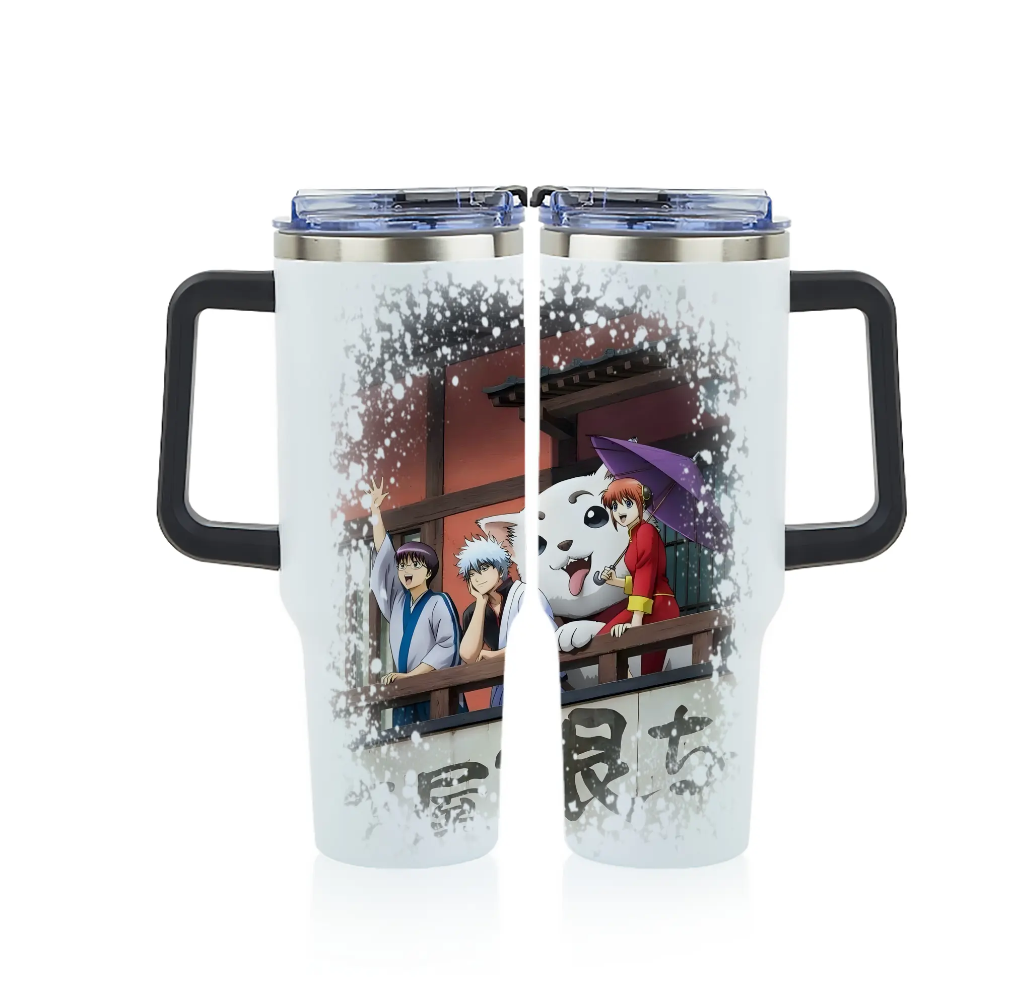 銀魂 グッズ 坂田 銀時 - 1200mL フルプリント車用タンブラー ・ 304ステンレス 内側 ・ 201ステンレス 外側 ・ 保温 保冷 ・ 通勤 ドライブ アウトドア用
