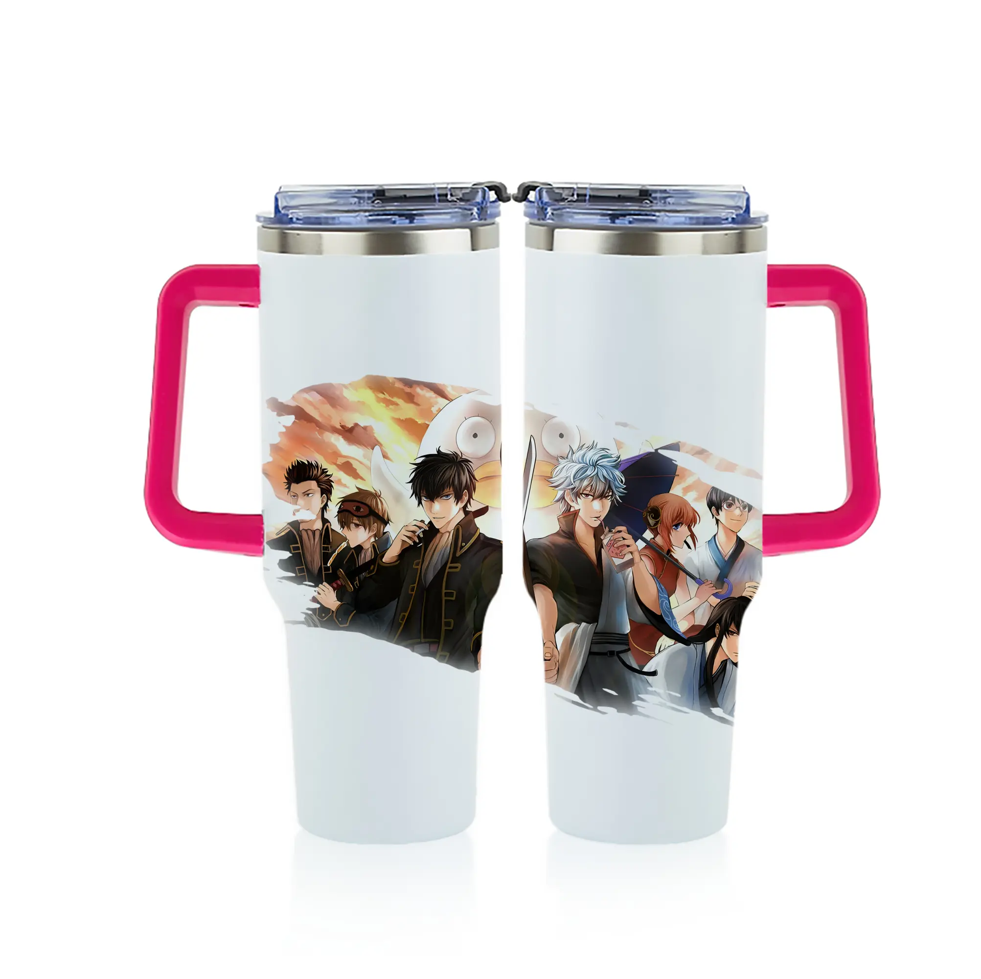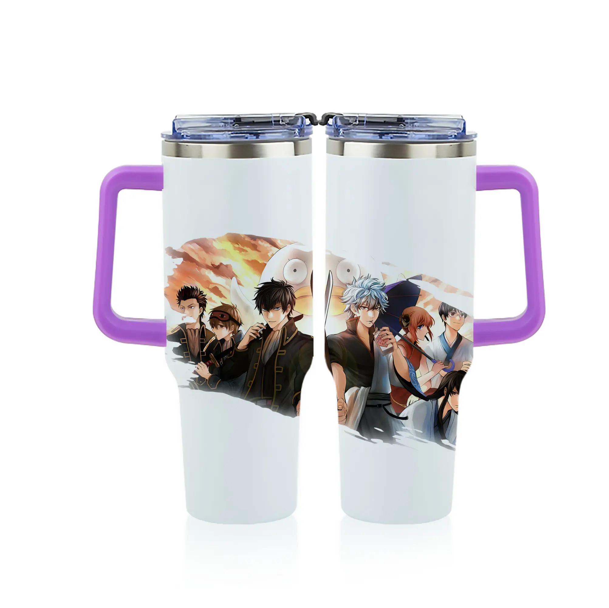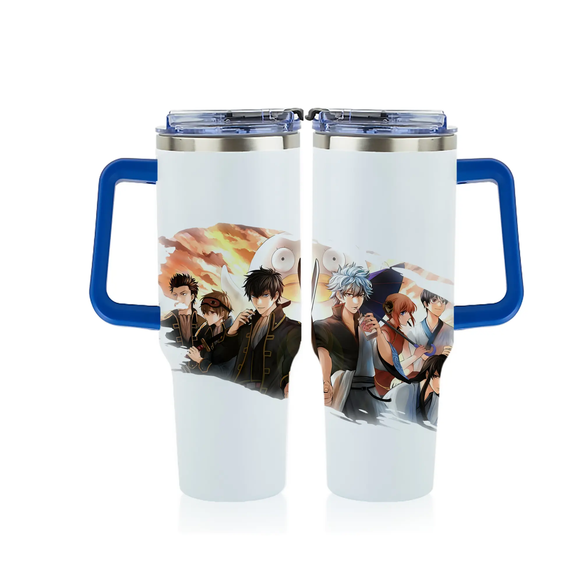 銀魂 グッズ 坂田 銀時 - 1200mL フルプリント車用タンブラー ・ 304ステンレス 内側 ・ 201ステンレス 外側 ・ 保温 保冷 ・ 通勤 ドライブ アウトドア用