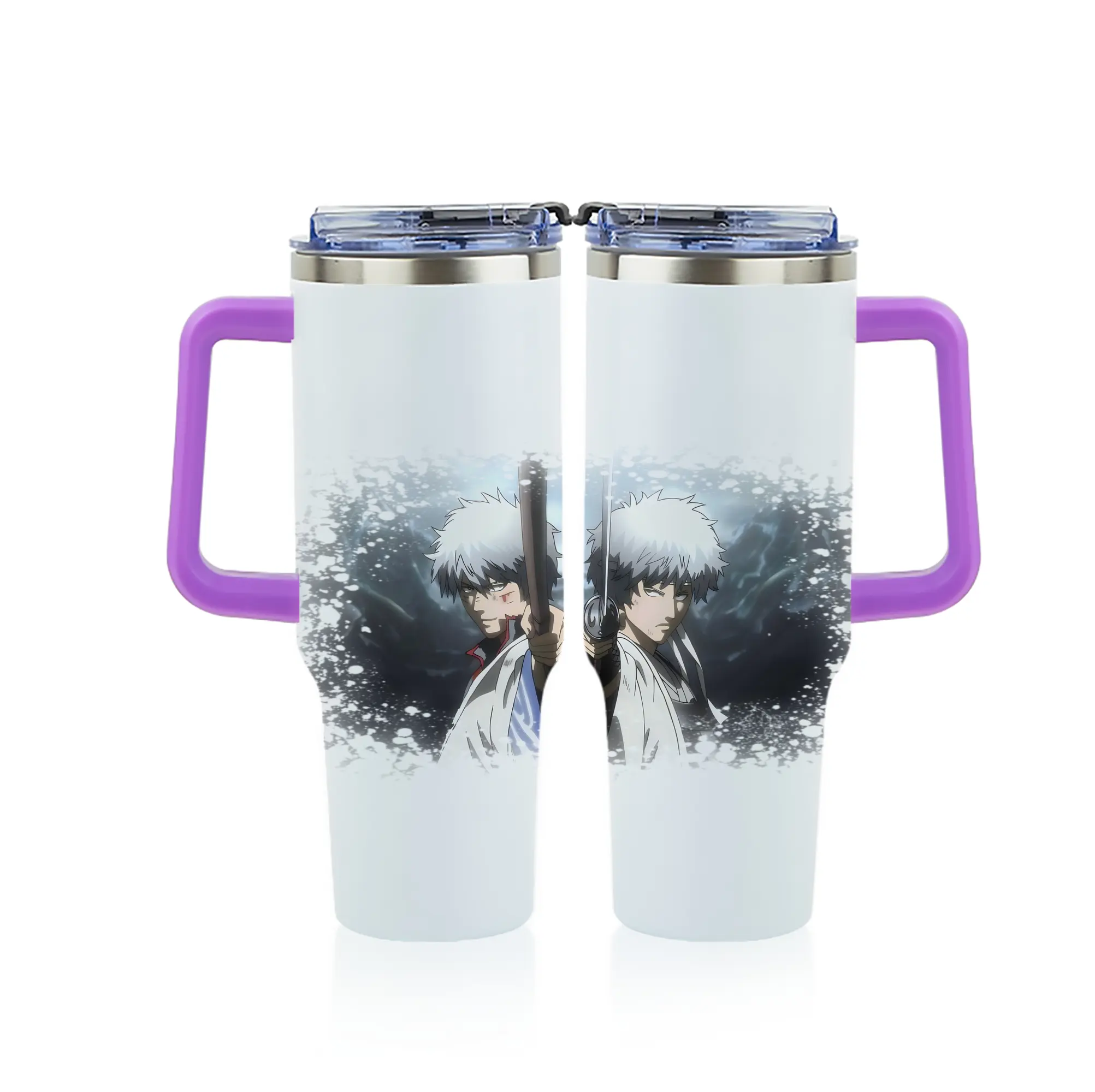 銀魂 グッズ 坂田 銀時 - 1200mL フルプリント車用タンブラー ・ 304ステンレス 内側 ・ 201ステンレス 外側 ・ 保温 保冷 ・ 通勤 ドライブ アウトドア用