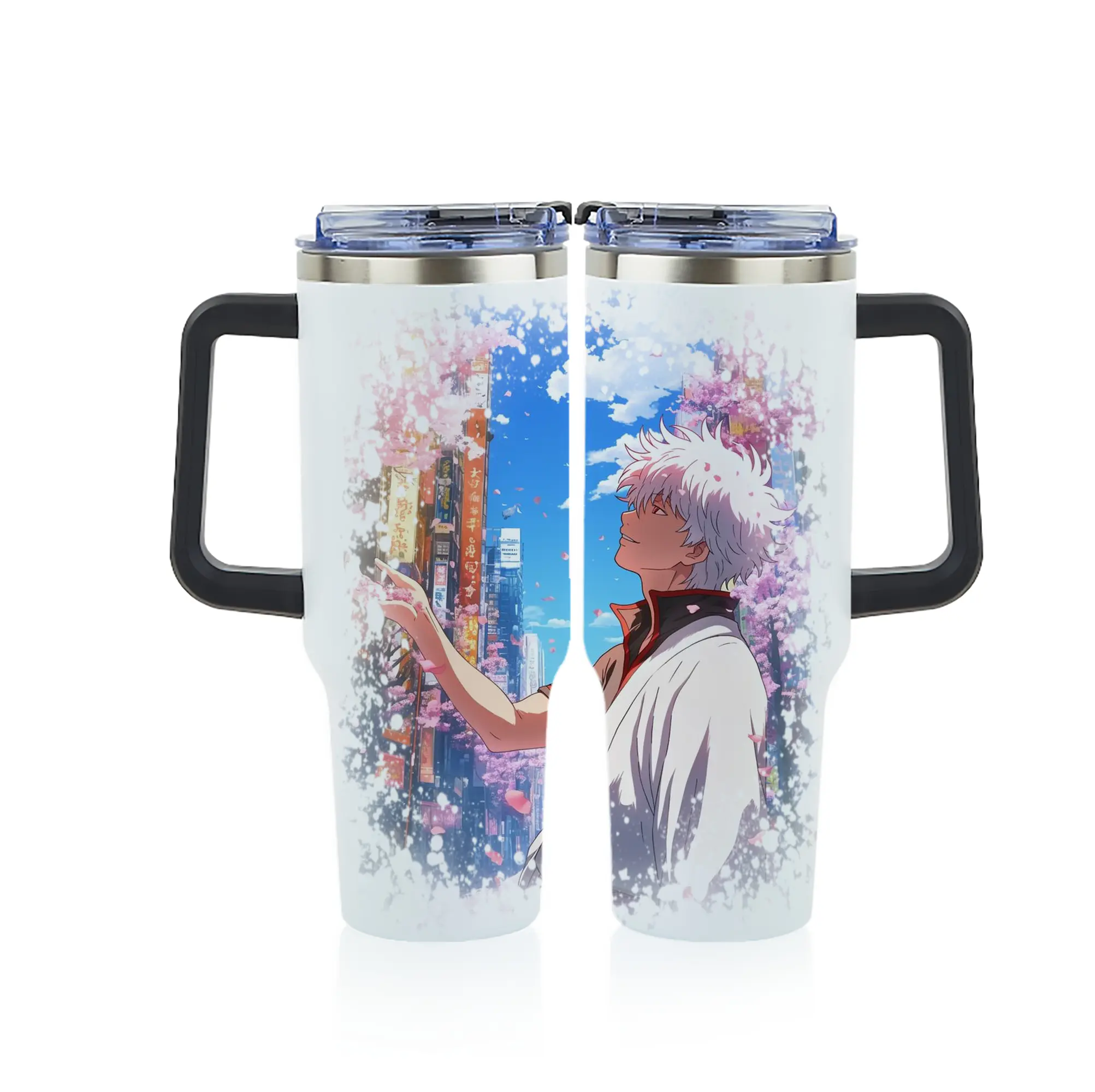 銀魂 グッズ 坂田 銀時 - 1200mL フルプリント車用タンブラー ・ 304ステンレス 内側 ・ 201ステンレス 外側 ・ 保温 保冷 ・ 通勤 ドライブ アウトドア用
