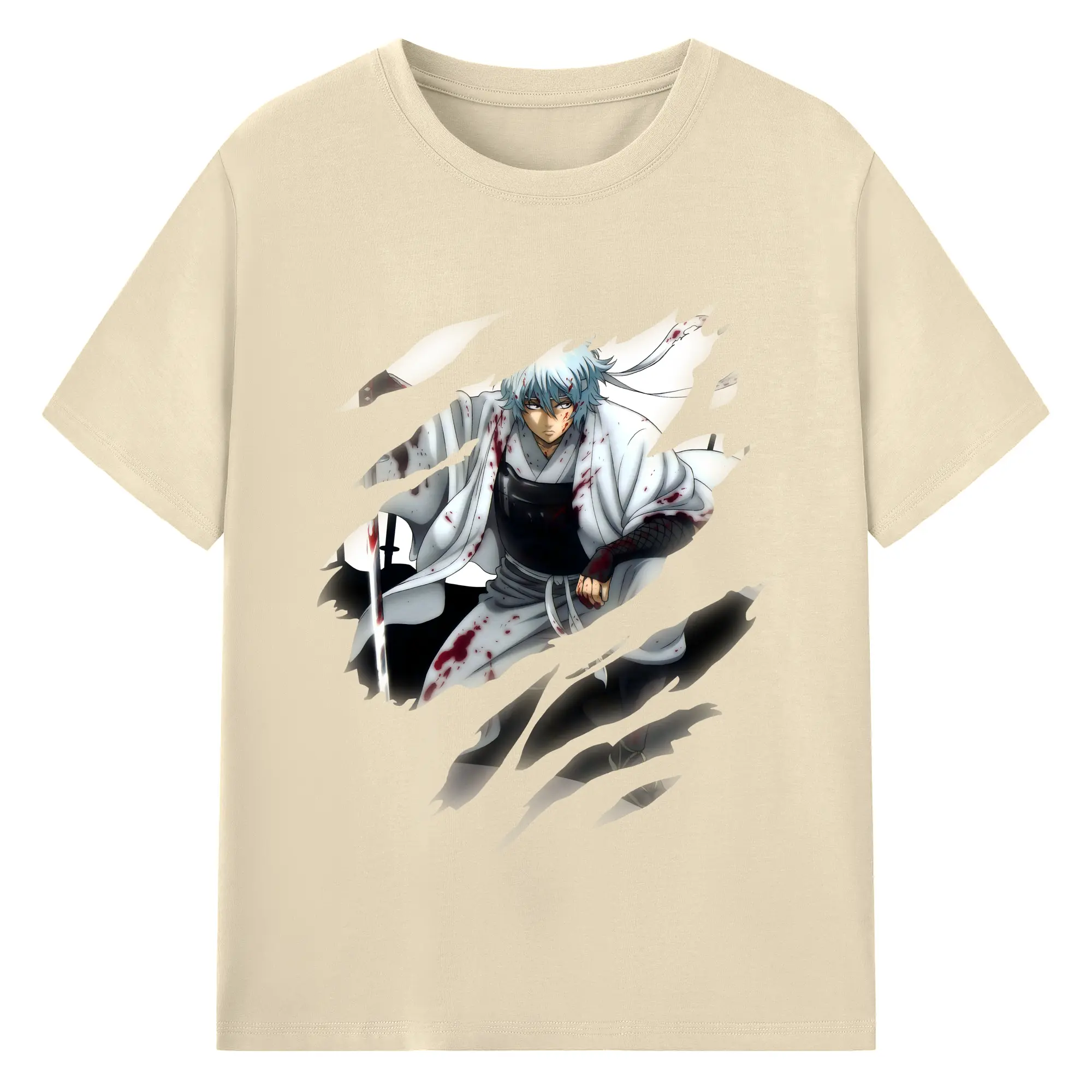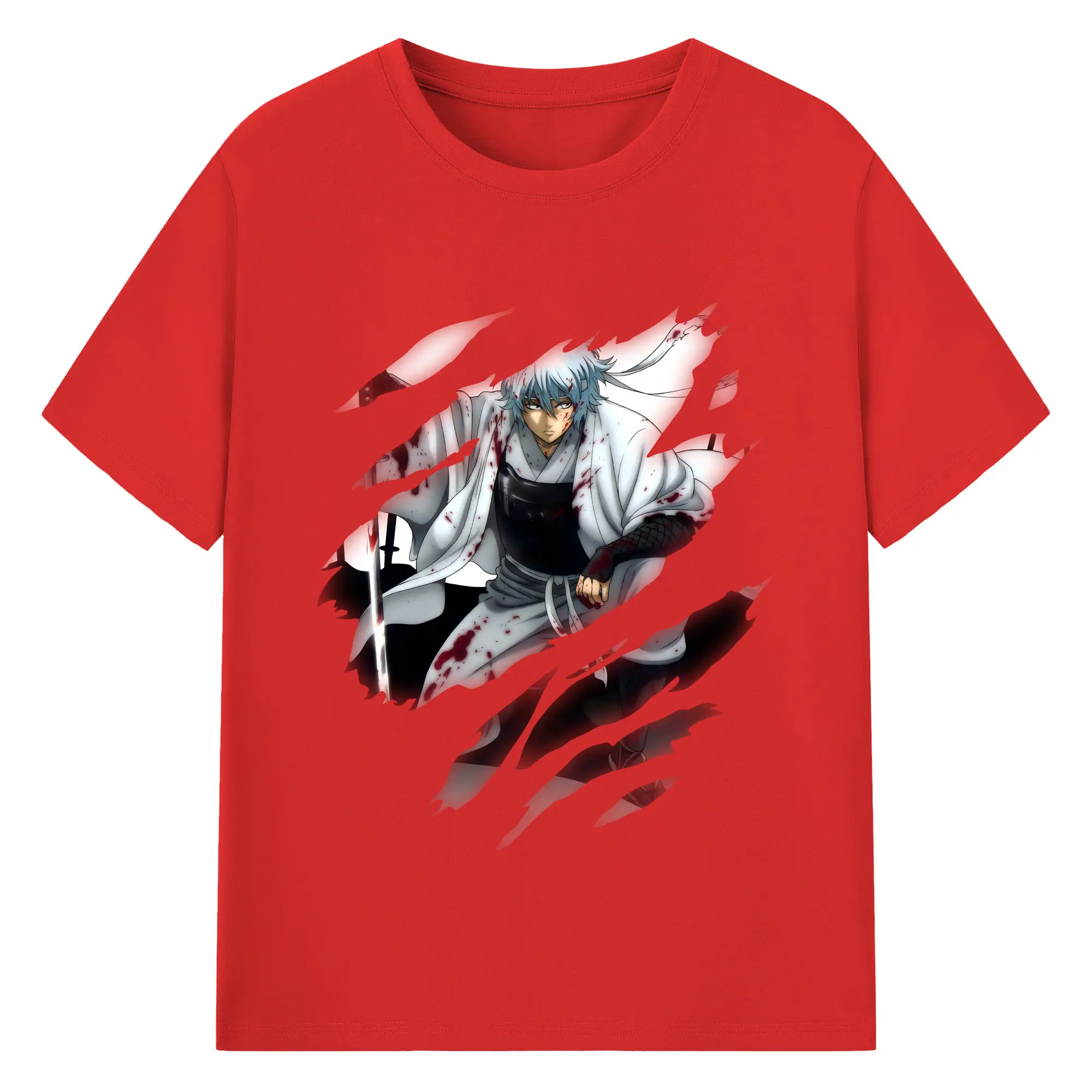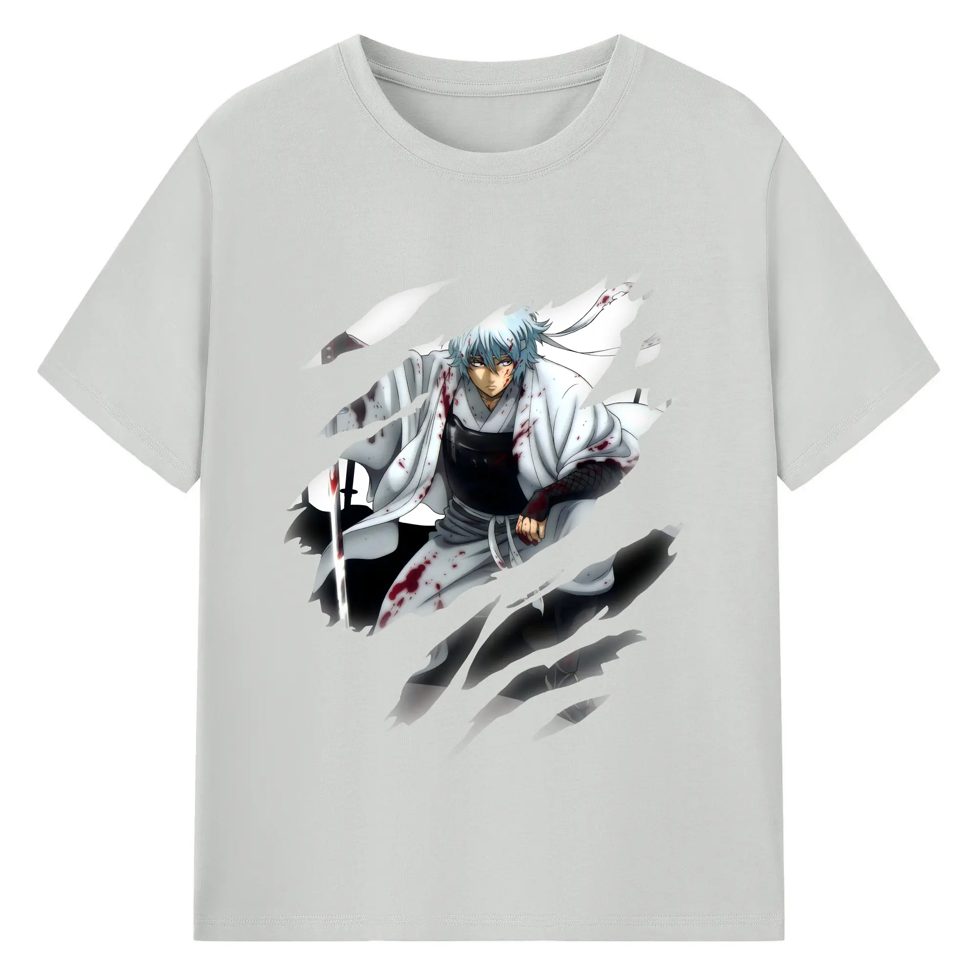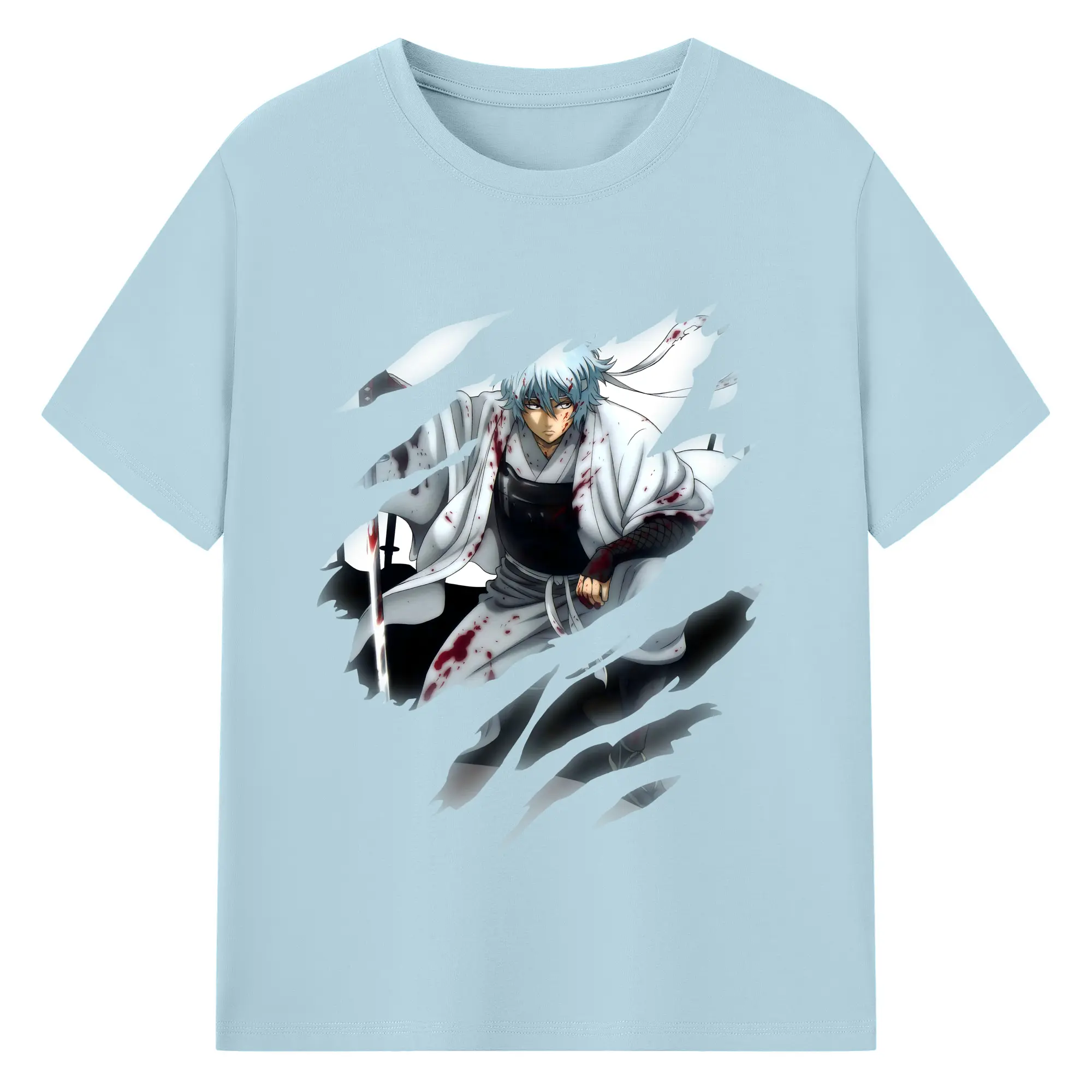 銀魂 グッズ 坂田 銀時 - 綿100% 半袖Tシャツ ・ バックプリント ・ 快適 通気性 ・ 日常使い 散歩 スポーツ用