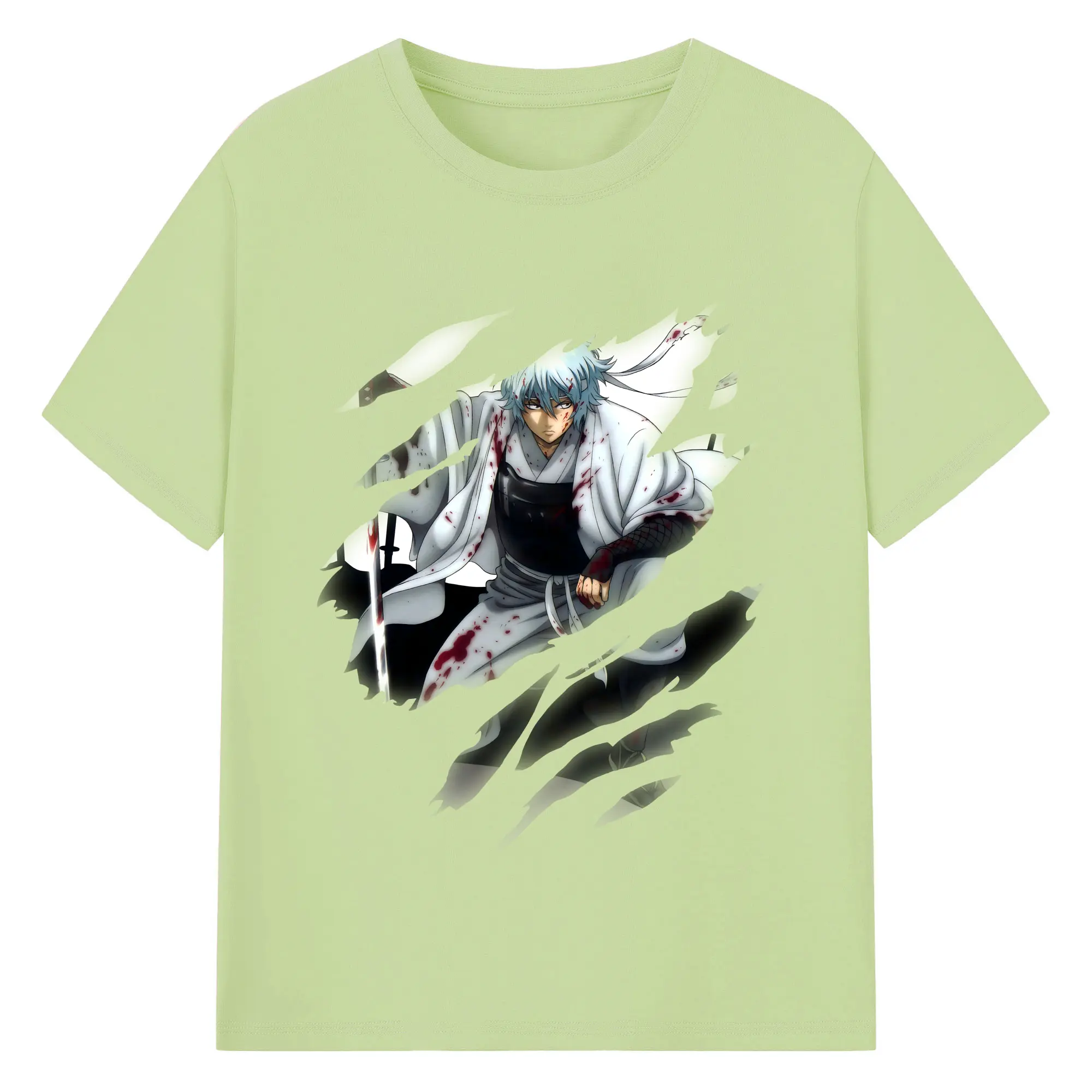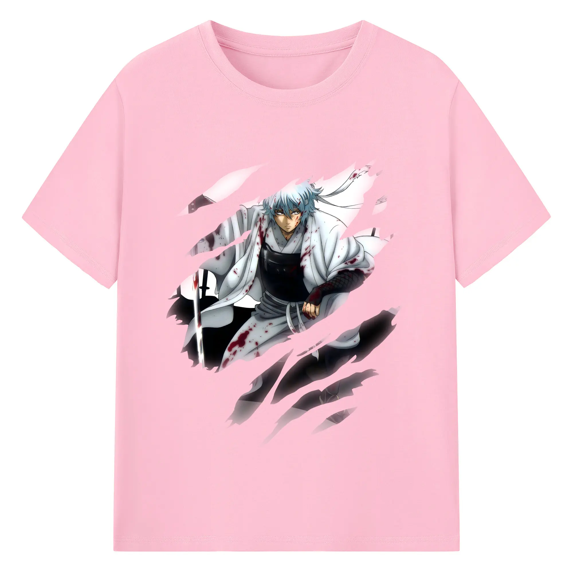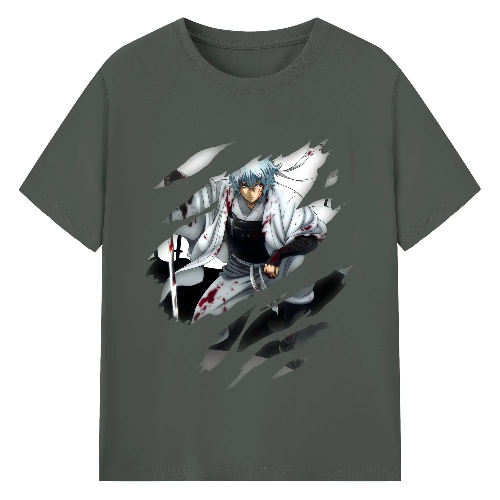 銀魂 グッズ 坂田 銀時 - 綿100% 半袖Tシャツ ・ バックプリント ・ 快適 通気性 ・ 日常使い 散歩 スポーツ用